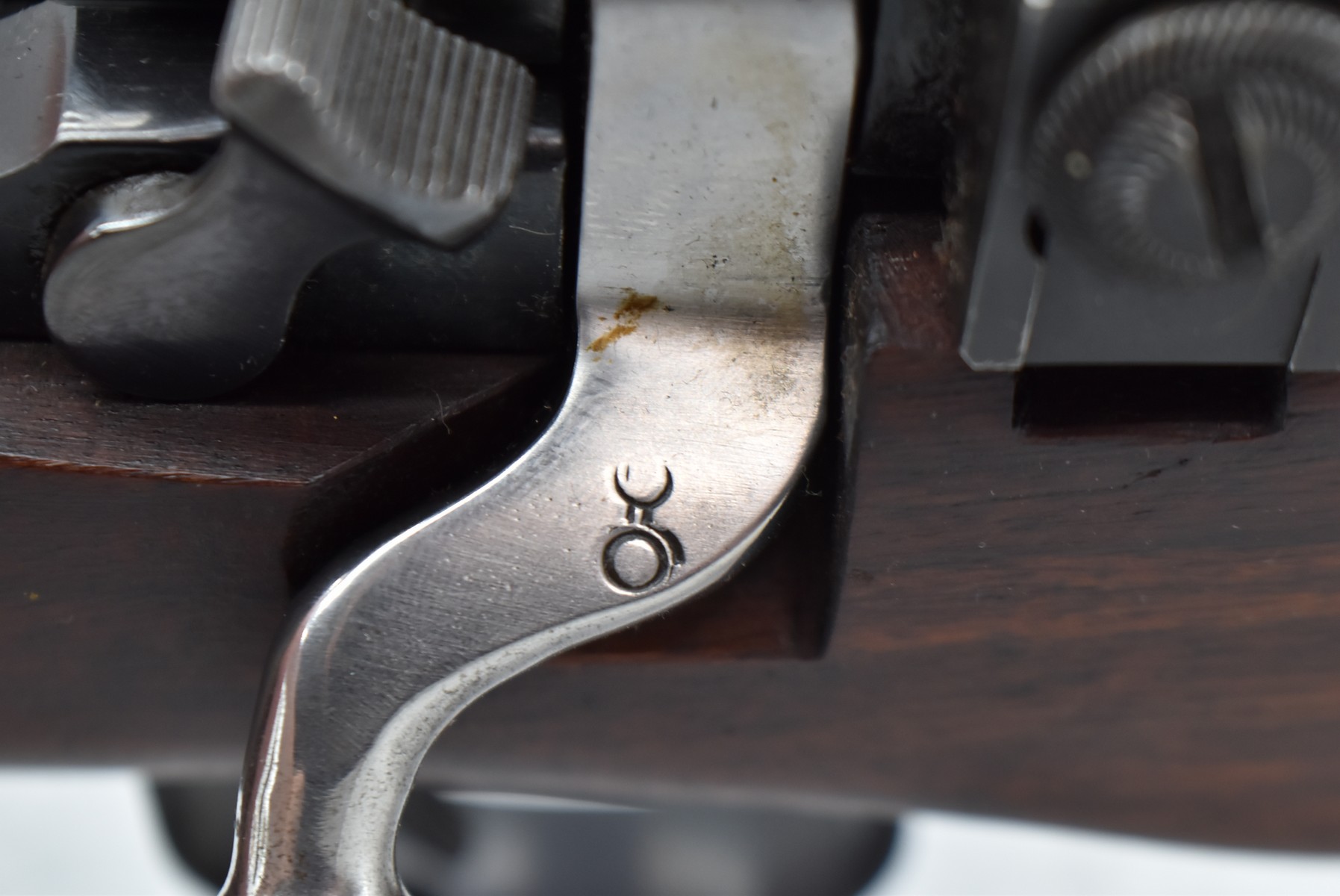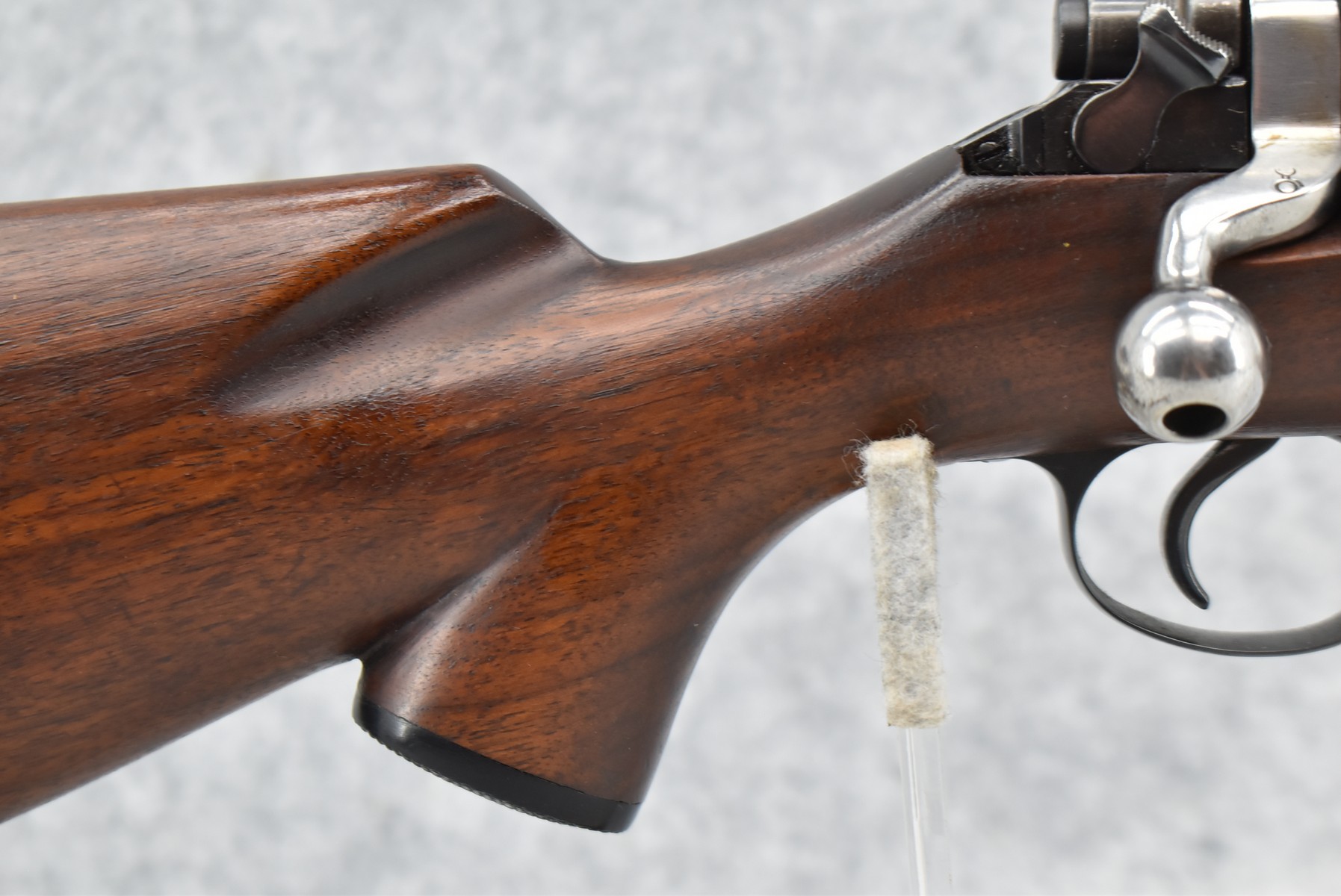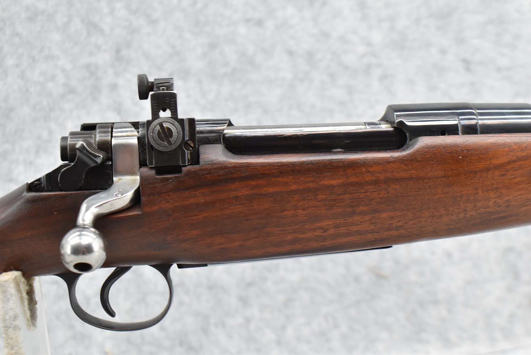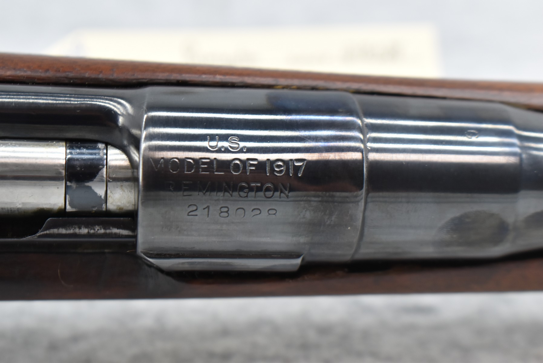 318R. Remington – Mod. 1917 – 30-06 Cal. Sporterized Bolt Action Rifle – w/26” Barrel w/Ramp Beaded Front & Adj. Rear Peep Sights – Re-Blued Finish – w/Custom Bishop Capped Pistol Grip Wood Stock w/Bishop Butt Plate