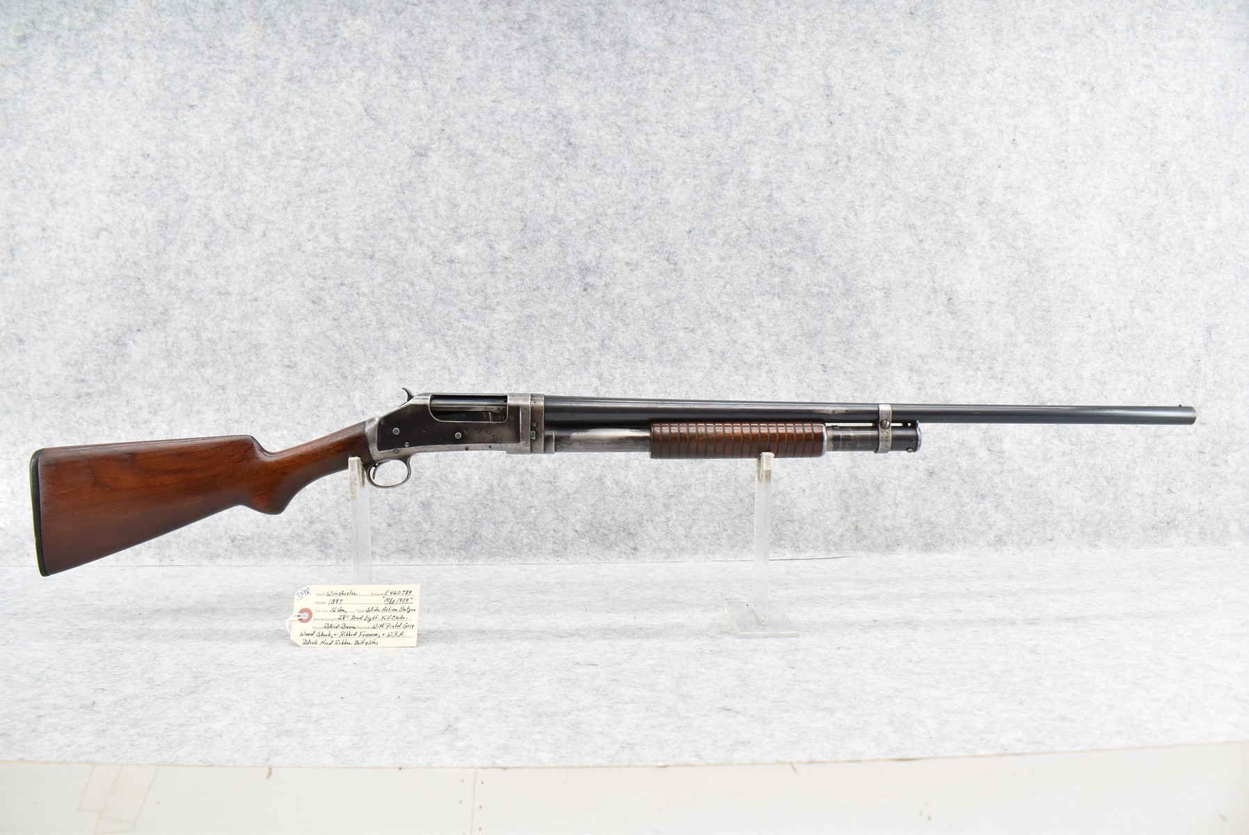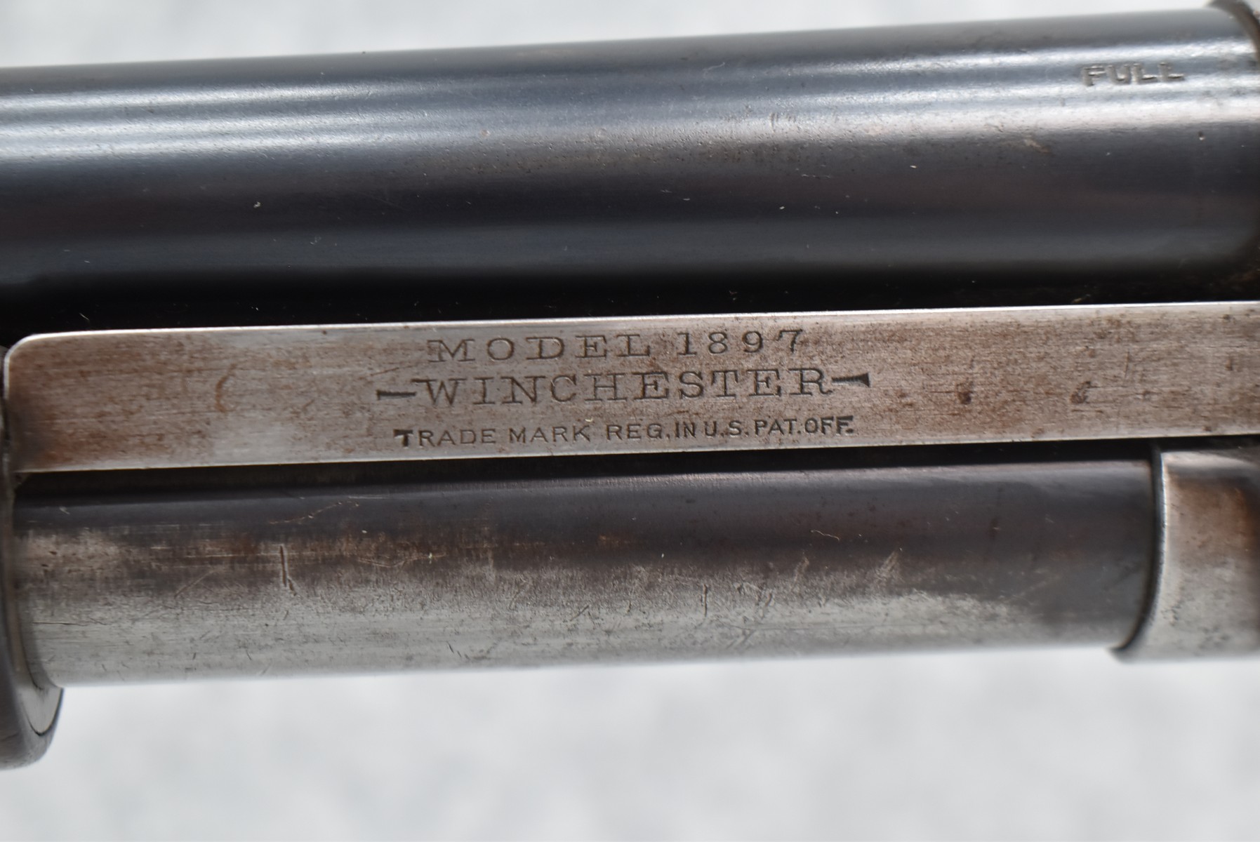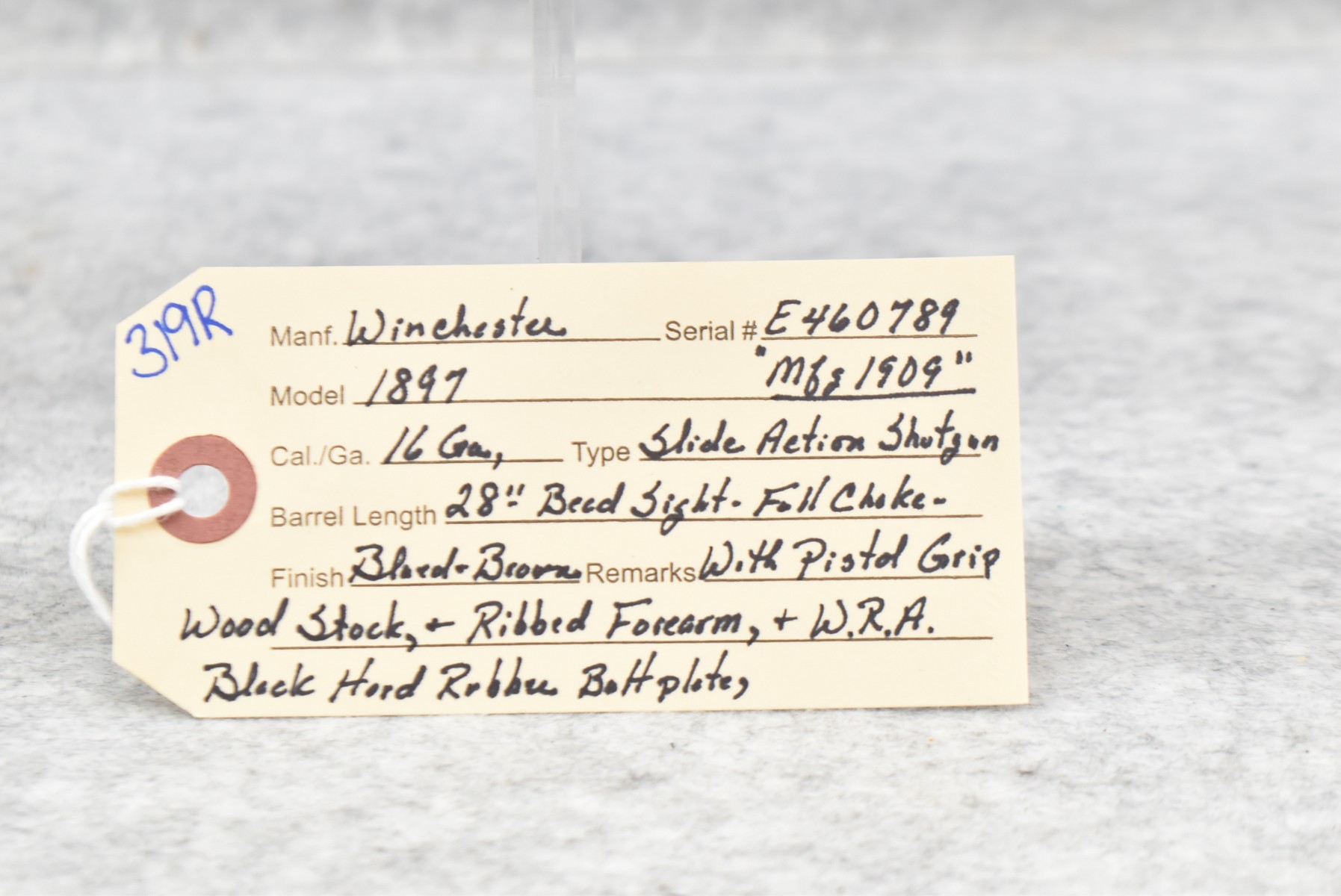 319R. Winchester – Mod. 1897 – 16ga. Pump Action Shotgun – w/28” Full Choke Barrel w/Bead Sight – Blued/Brown Finish – w/Pistol Grip Wood Stock & Ribbed Forearm w/Factory Hard Rubber Butt Plate – Mfg. 1909