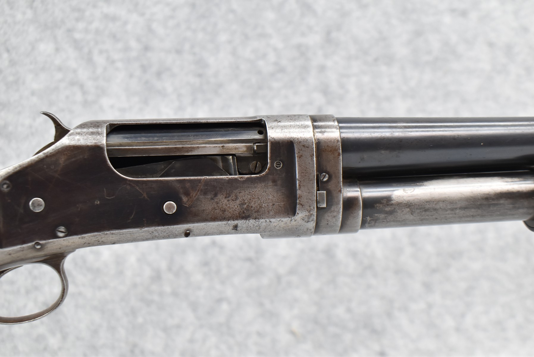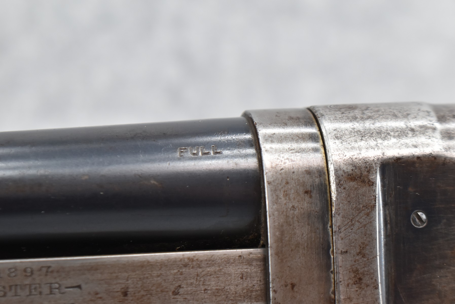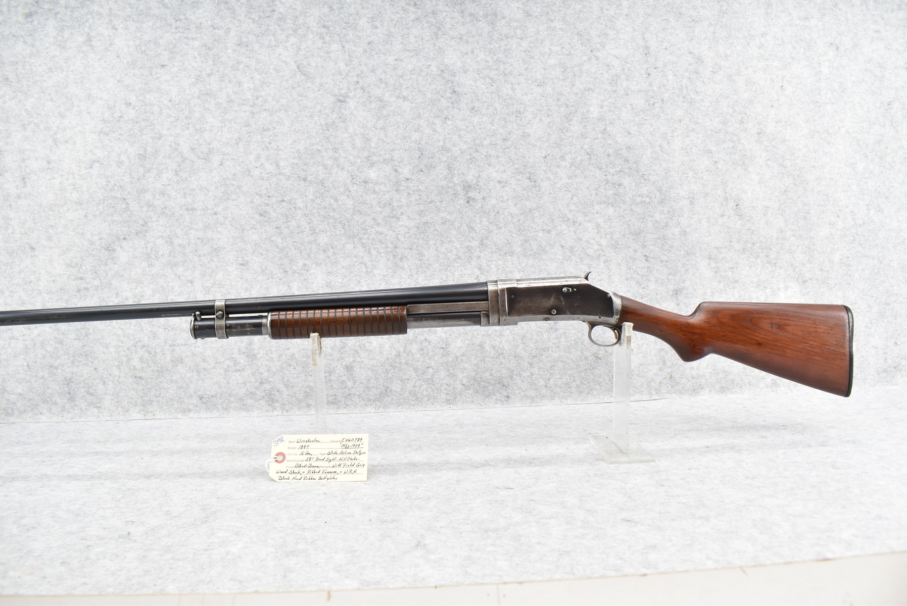 319R. Winchester – Mod. 1897 – 16ga. Pump Action Shotgun – w/28” Full Choke Barrel w/Bead Sight – Blued/Brown Finish – w/Pistol Grip Wood Stock & Ribbed Forearm w/Factory Hard Rubber Butt Plate – Mfg. 1909