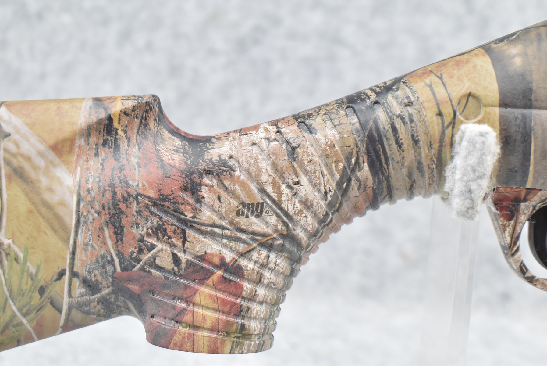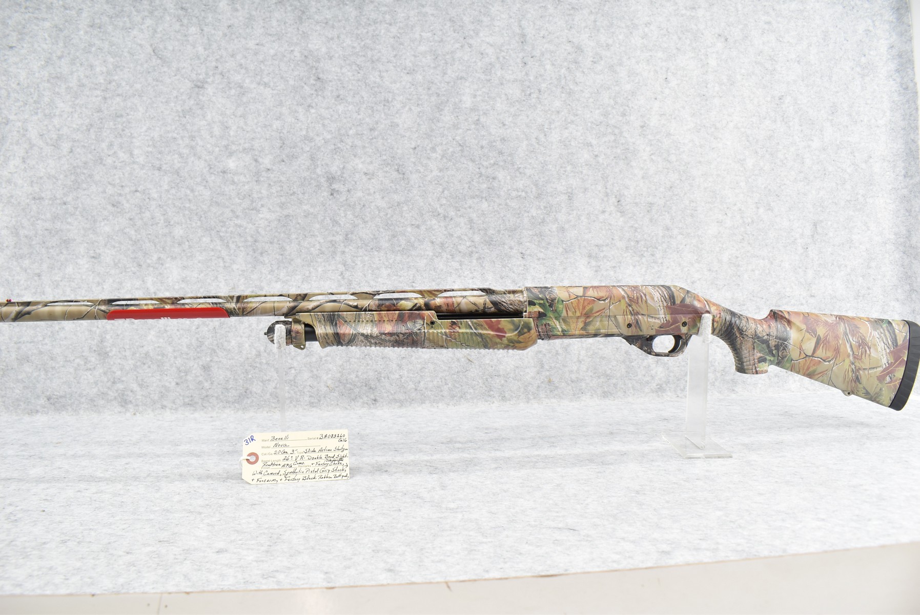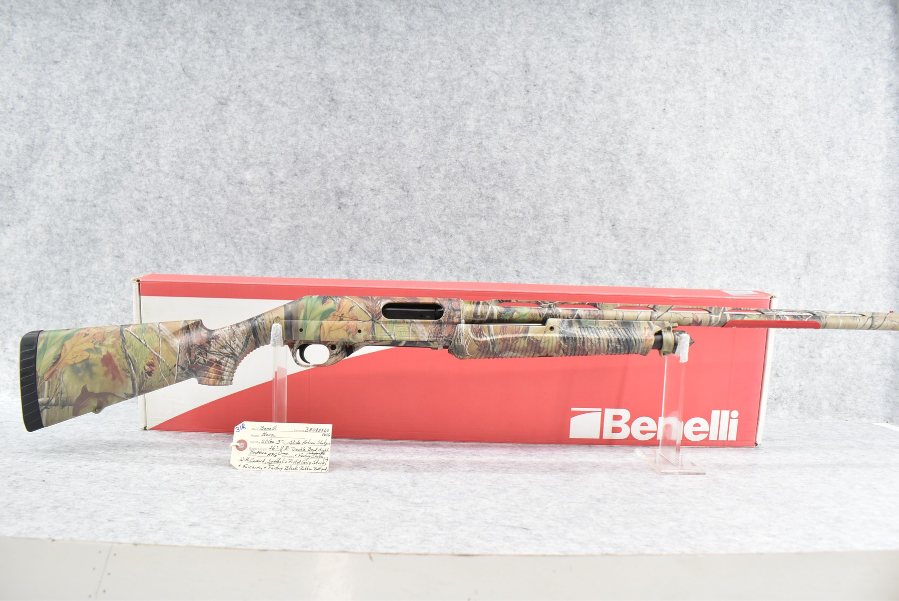 31R. Benelli – Mod. Nova – 20ga. 3” Pump Action Shotgun – w/26” Vent-Rib Barrel w/Double Bead Sight & Factory Interchangeable Choke – Realtree APG Full Camo Coverage – w/Camoed Synthetic Pistol Grip Stocks w/Factory Butt Pad – Appears Unfired w/Box, Manual & Chokes