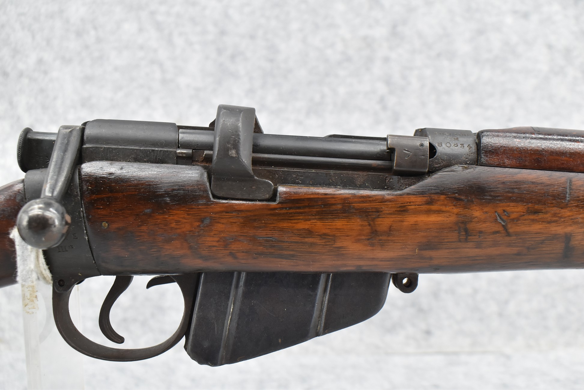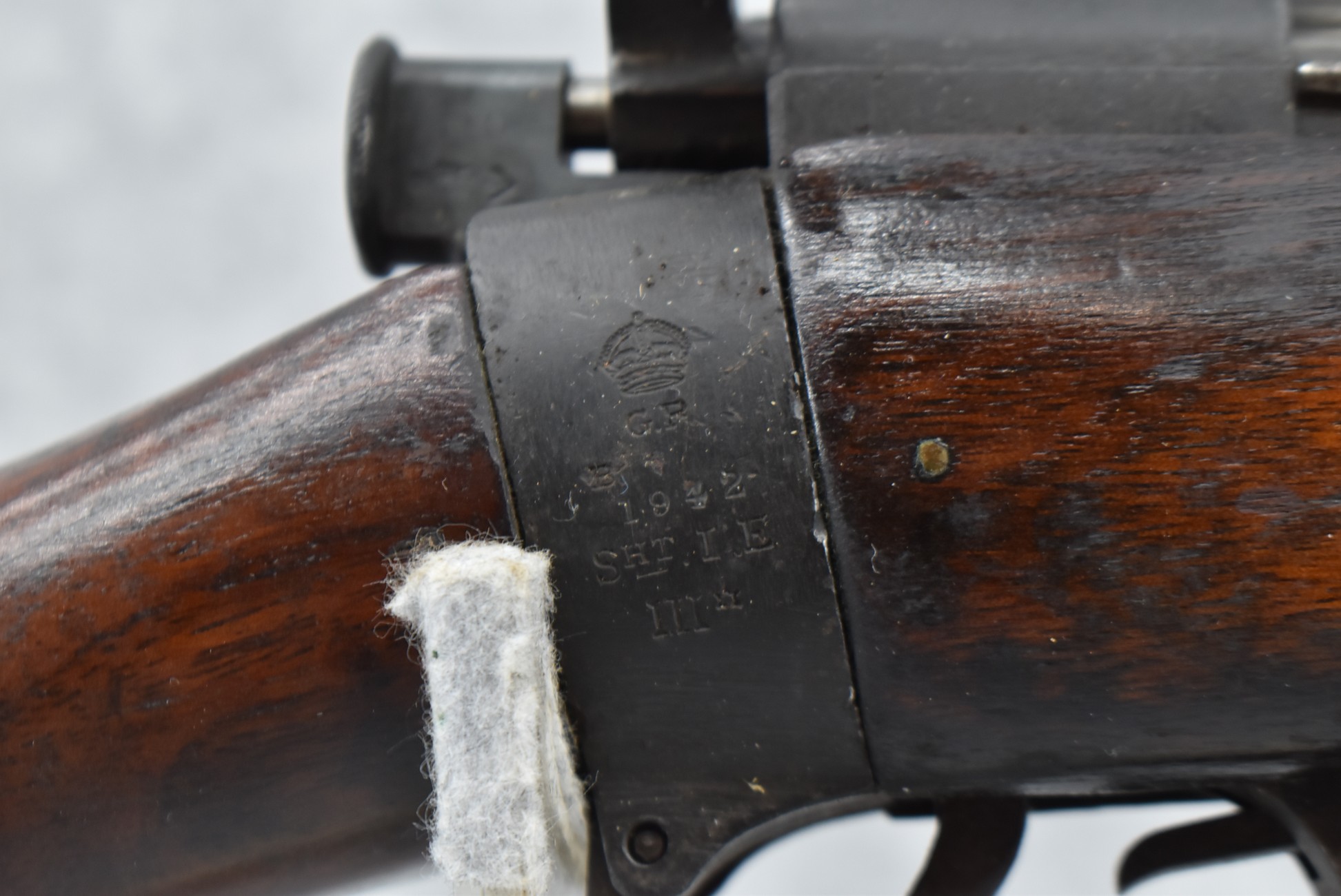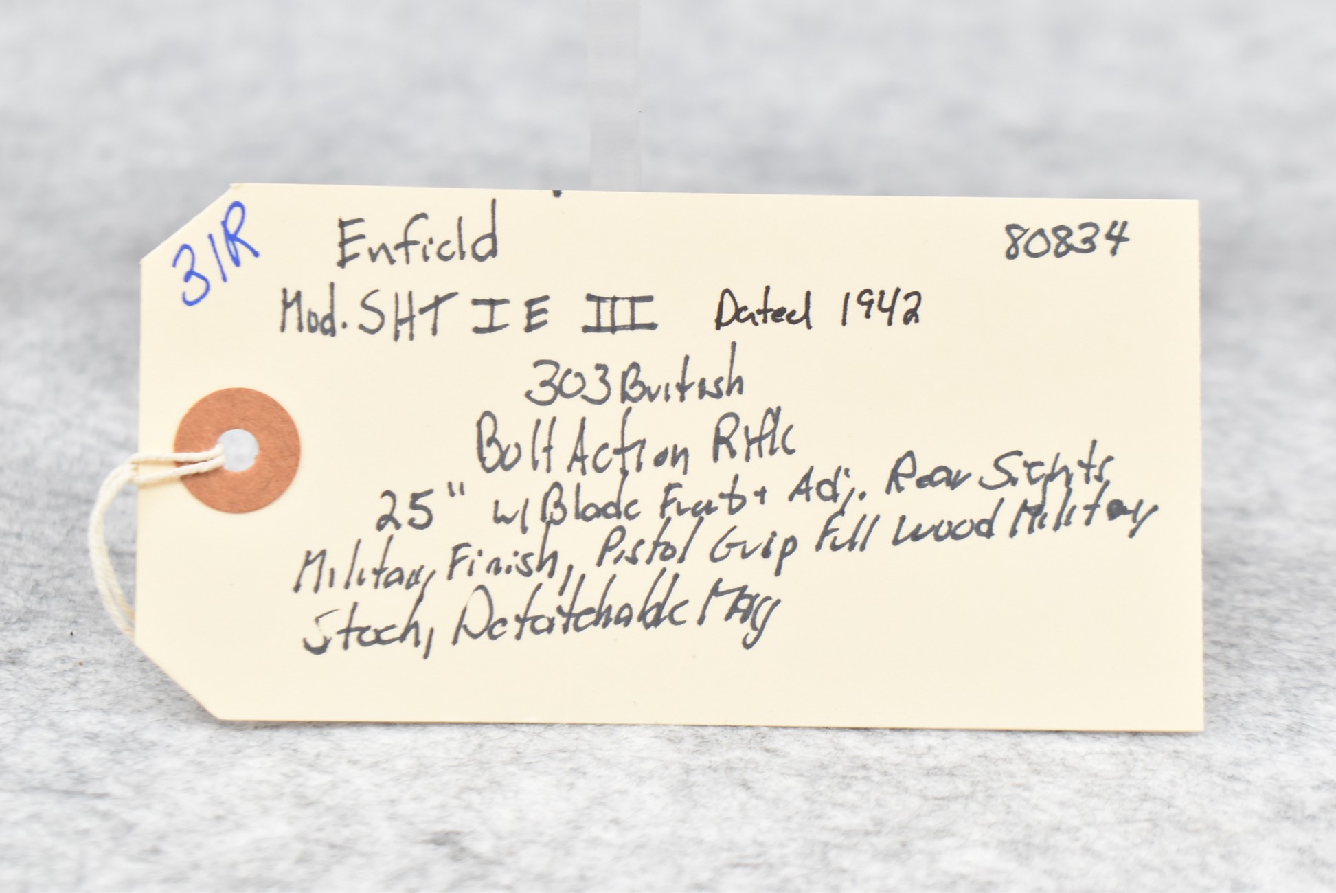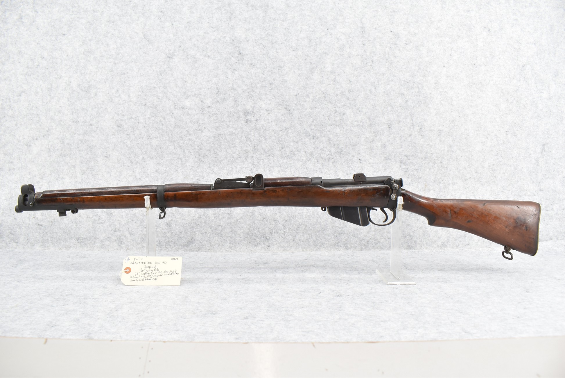 31R. Enfield – Mod. SHT IE III – 303 Brit. Cal. Bolt Action Rifle – w/25” Barrel w/Blade Front & Adj. Rear Sights – Military Finish – w/Pistol Grip Full Wood Military Stock – w/Detachable Mag – Dated 1942