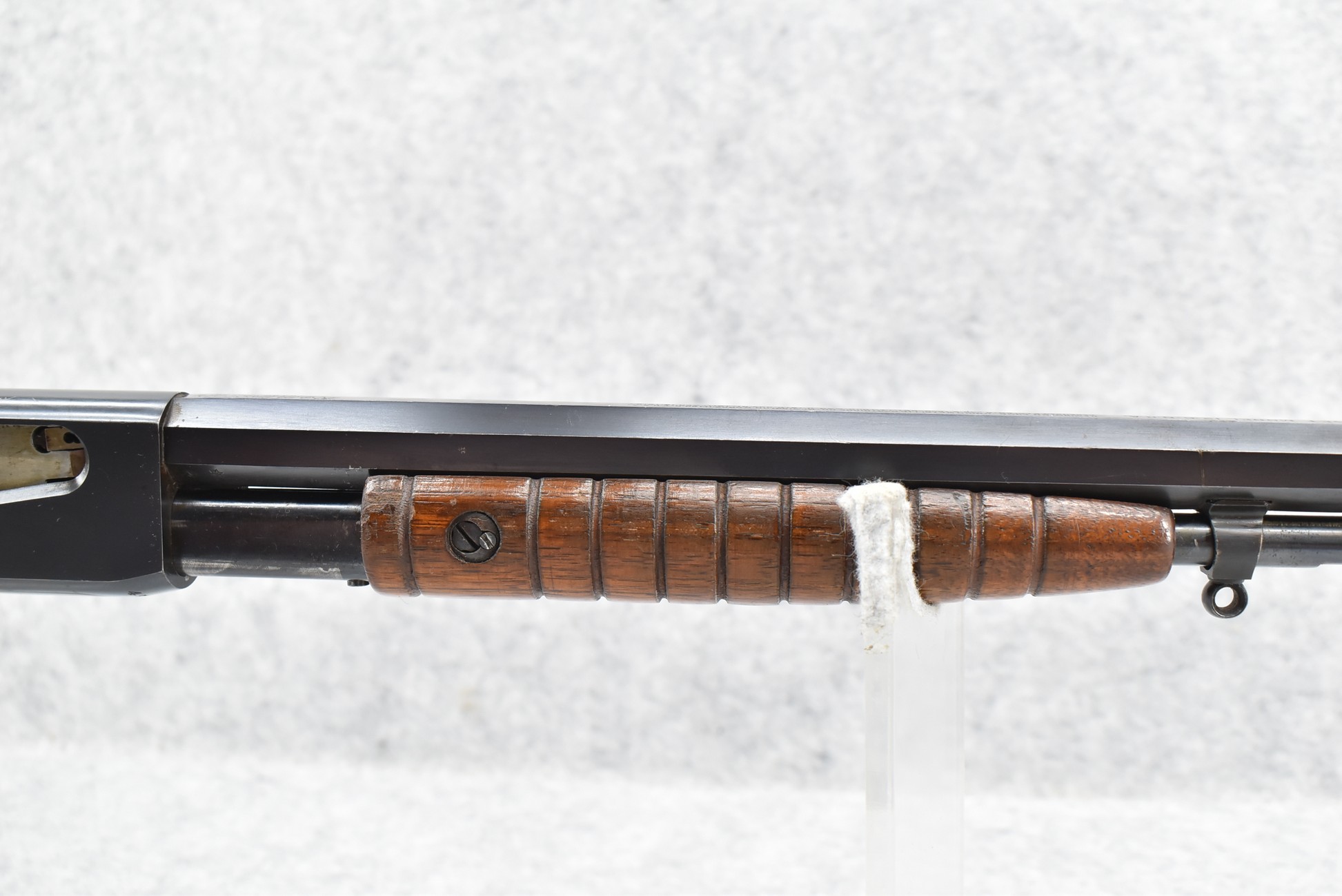 320R. Remington – Mod. 12-C N.R.A. Target – 22 Cal. Pump Action Rifle – w/24” Octagon Barrel w/Lyman Target Globe Front and Correct Lyman Adjustable Rear Tang Peep Sight – Blued Finish – w/Checkered Pistol Grip Wood Butt Stock and Ribbed Wood Forearm w/Factory Crescent Metal Butt Plate – w/Tubular Magazine – Rifle was Designed for N.R.A. Sponsored Small Bore Rifle Matches, Limited Manufacturing Began in 1917! – Excellent Example!