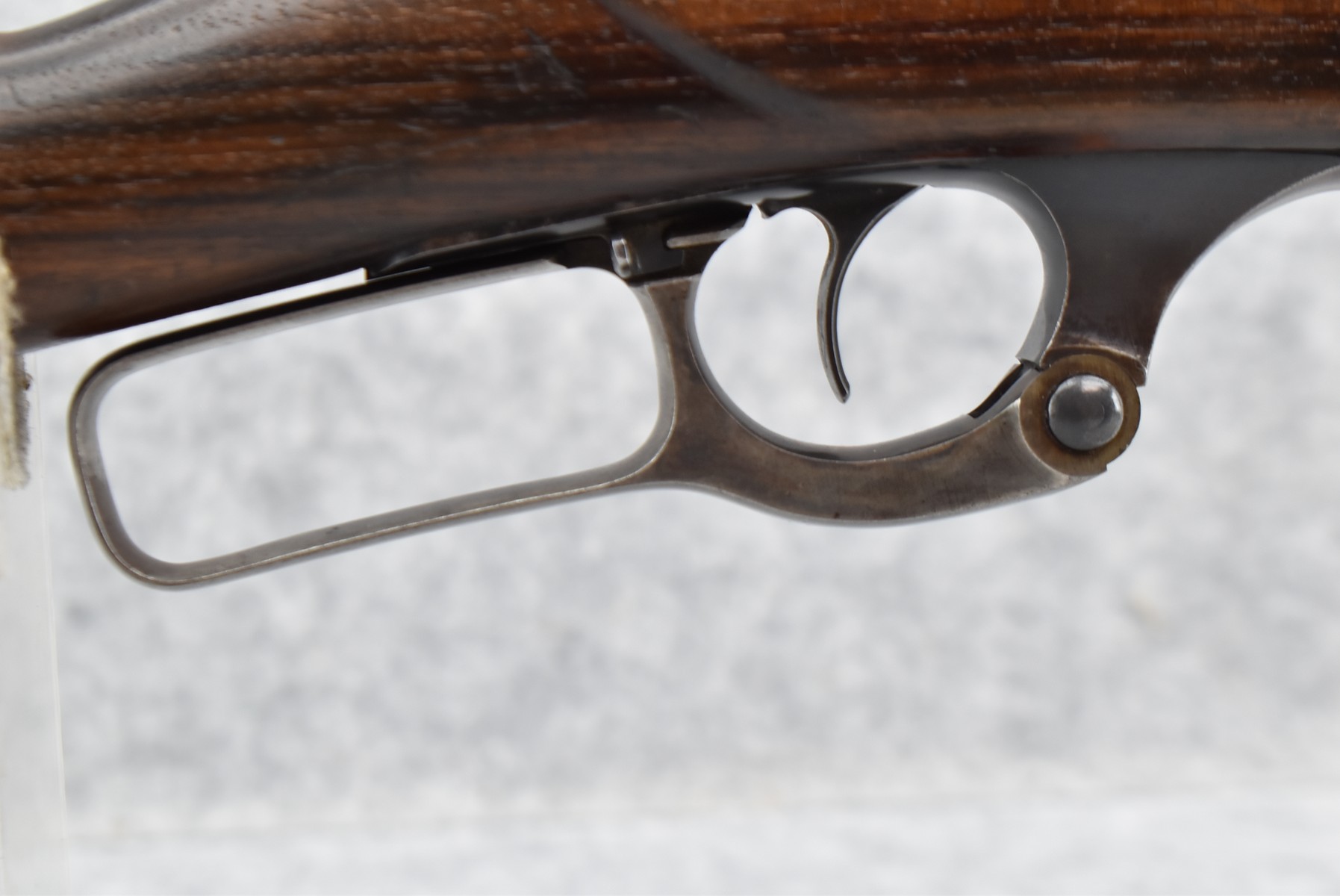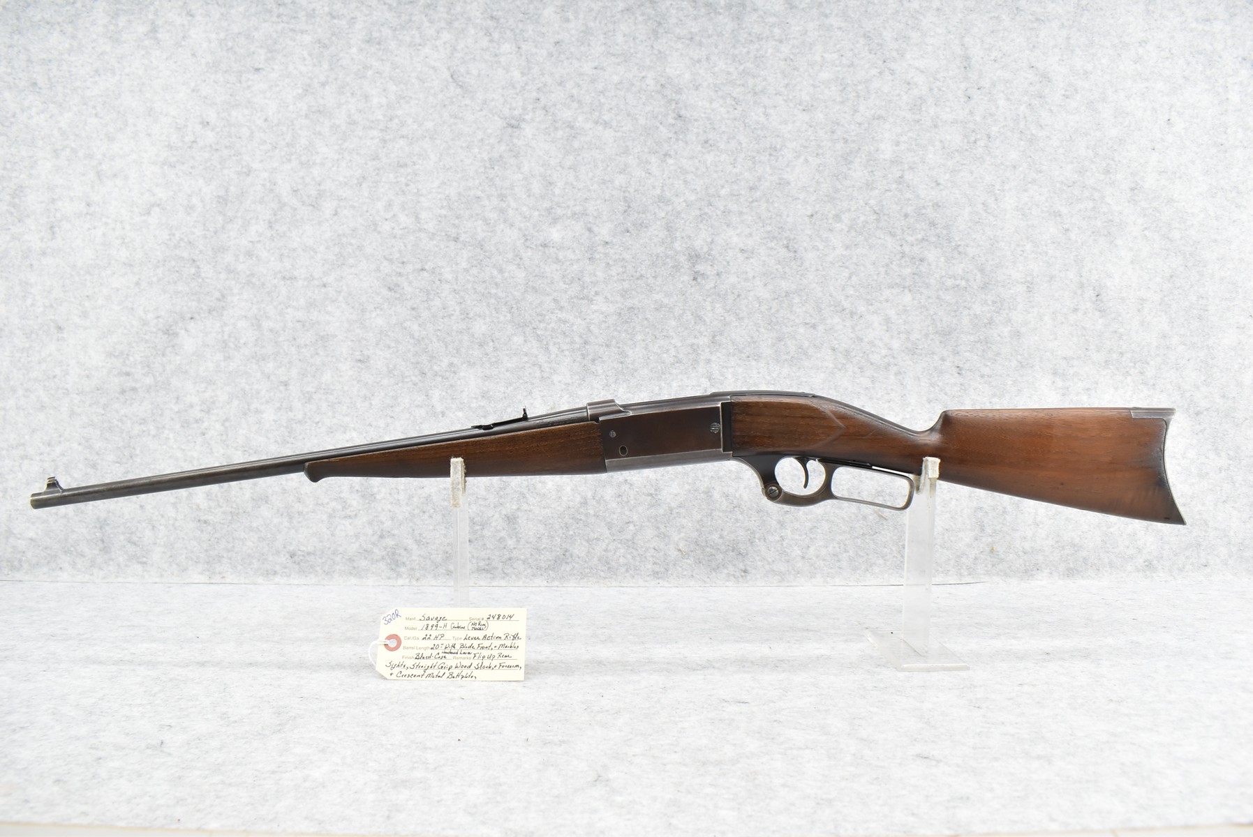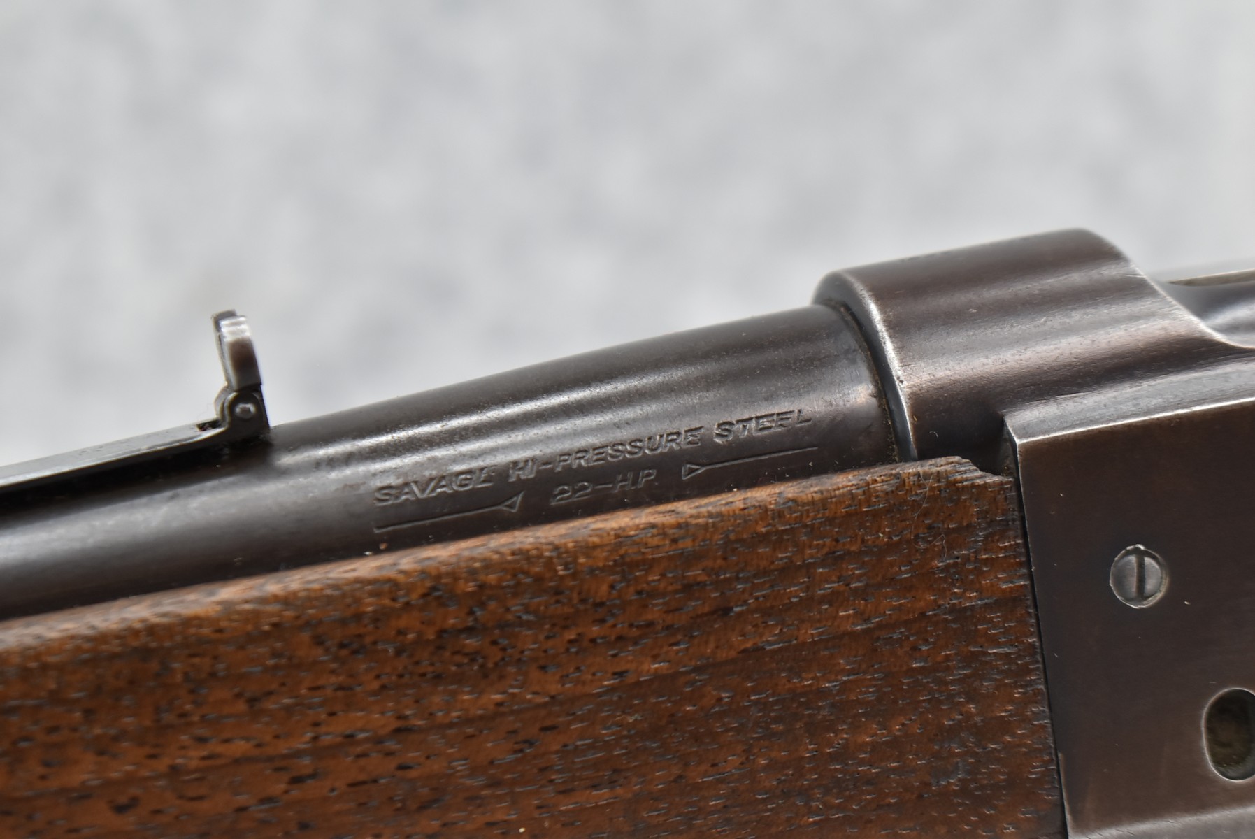 320R. Savage – Mod. 1899-H Carbine (No Ring Model) – 22HP Cal. Lever Action Rifle – w/20” Barrel w/Blade Front & Marbles Flip Up Rear Sights – Blued Finish w/Case Hardened Lever – w/Straight Grip Wood Stocks w/Crescent Metal Butt Plate