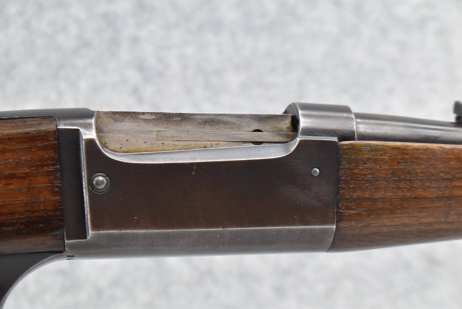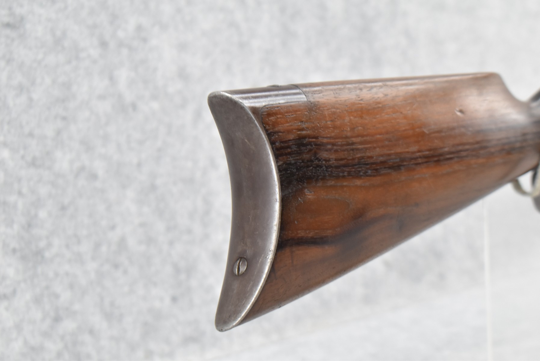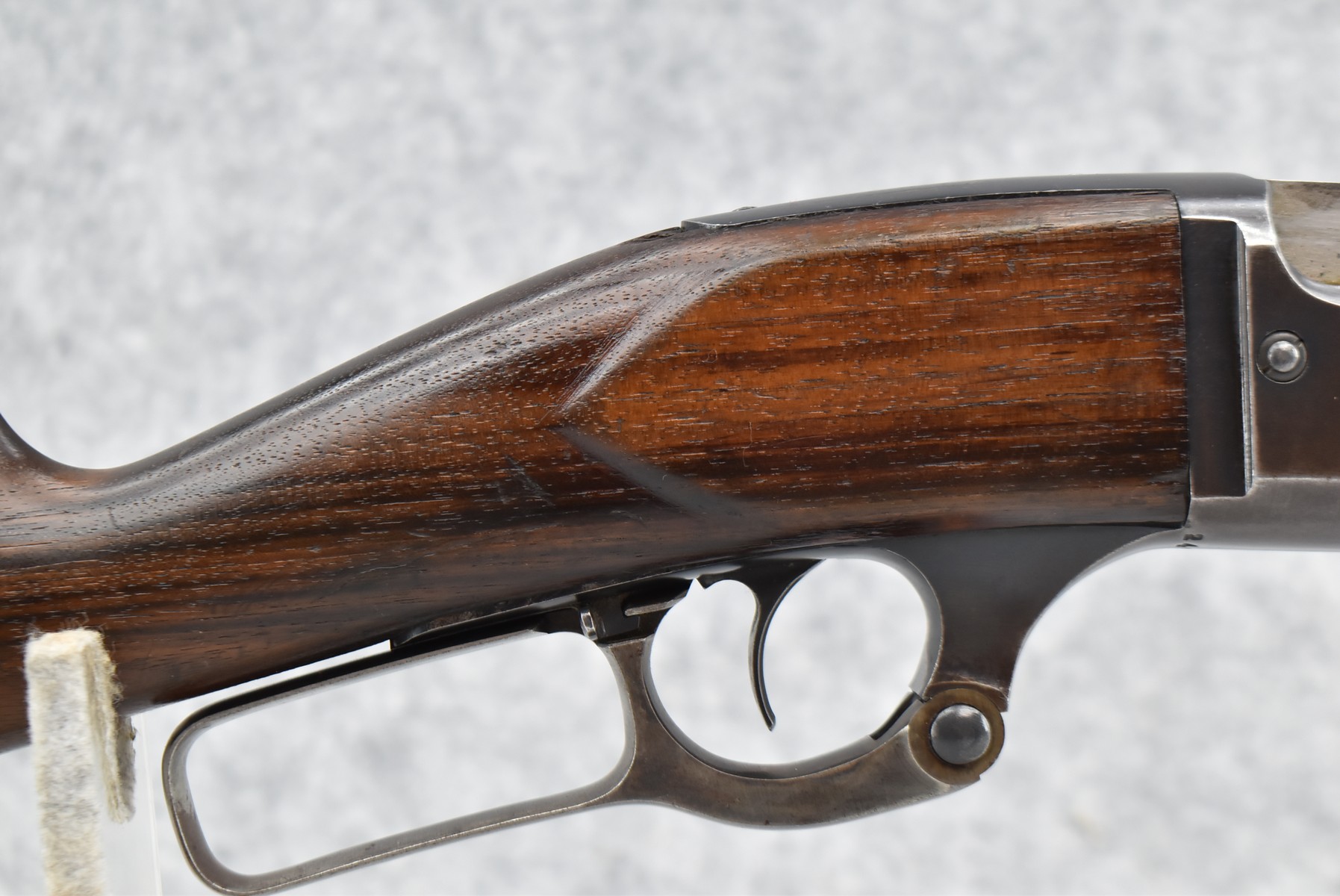 320R. Savage – Mod. 1899-H Carbine (No Ring Model) – 22HP Cal. Lever Action Rifle – w/20” Barrel w/Blade Front & Marbles Flip Up Rear Sights – Blued Finish w/Case Hardened Lever – w/Straight Grip Wood Stocks w/Crescent Metal Butt Plate