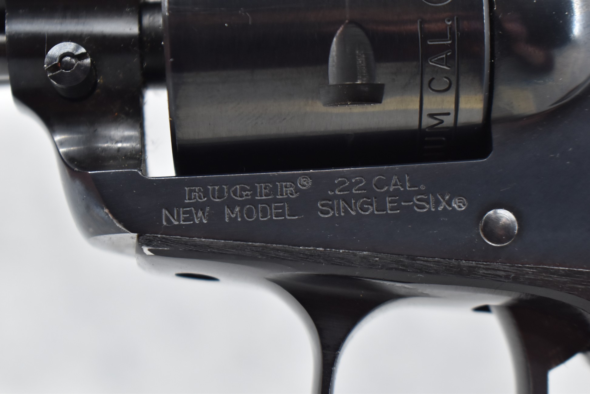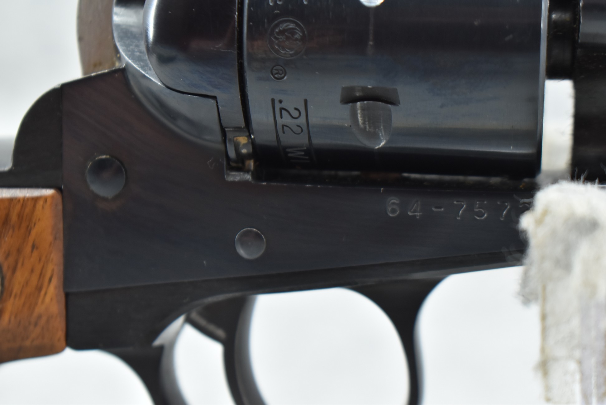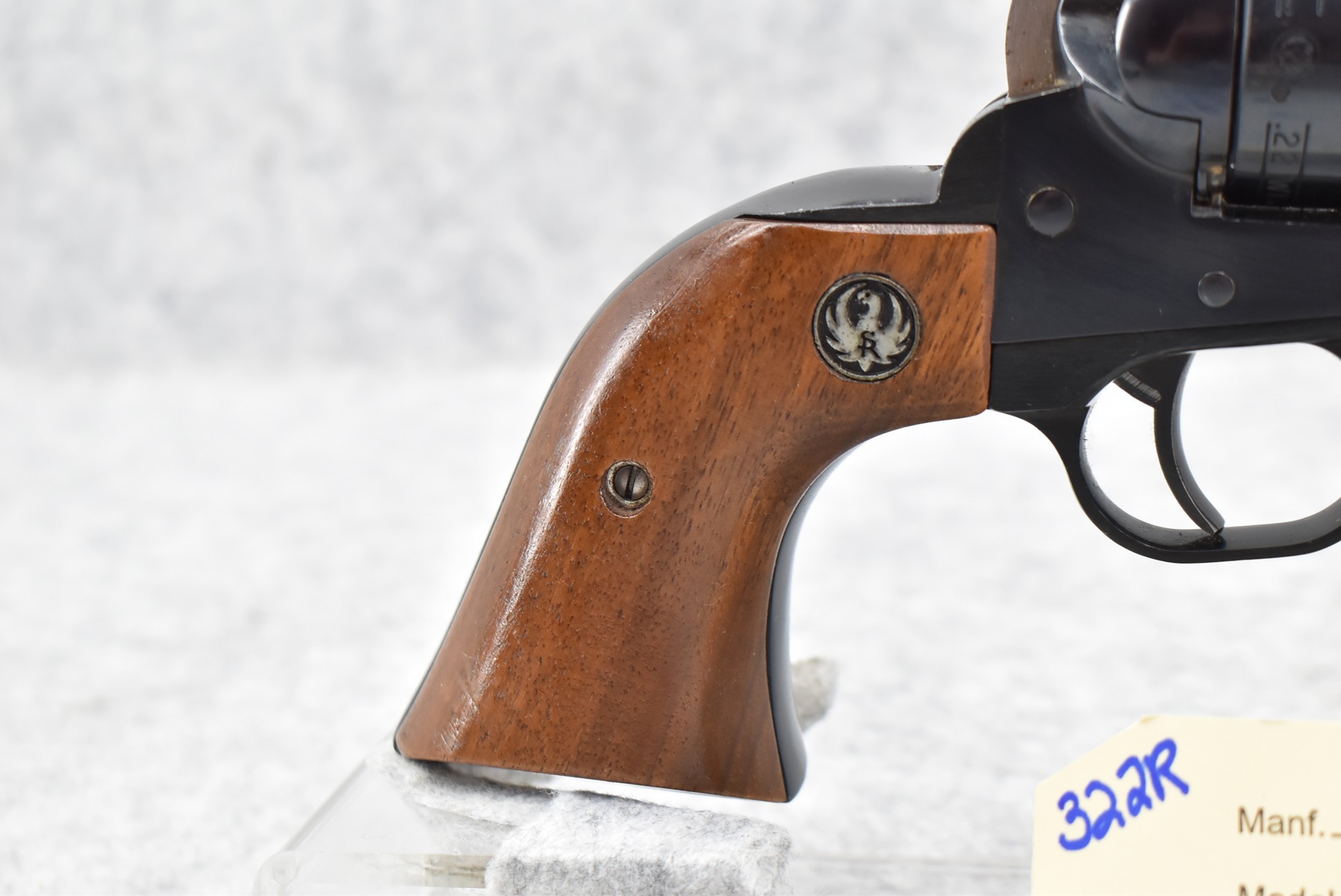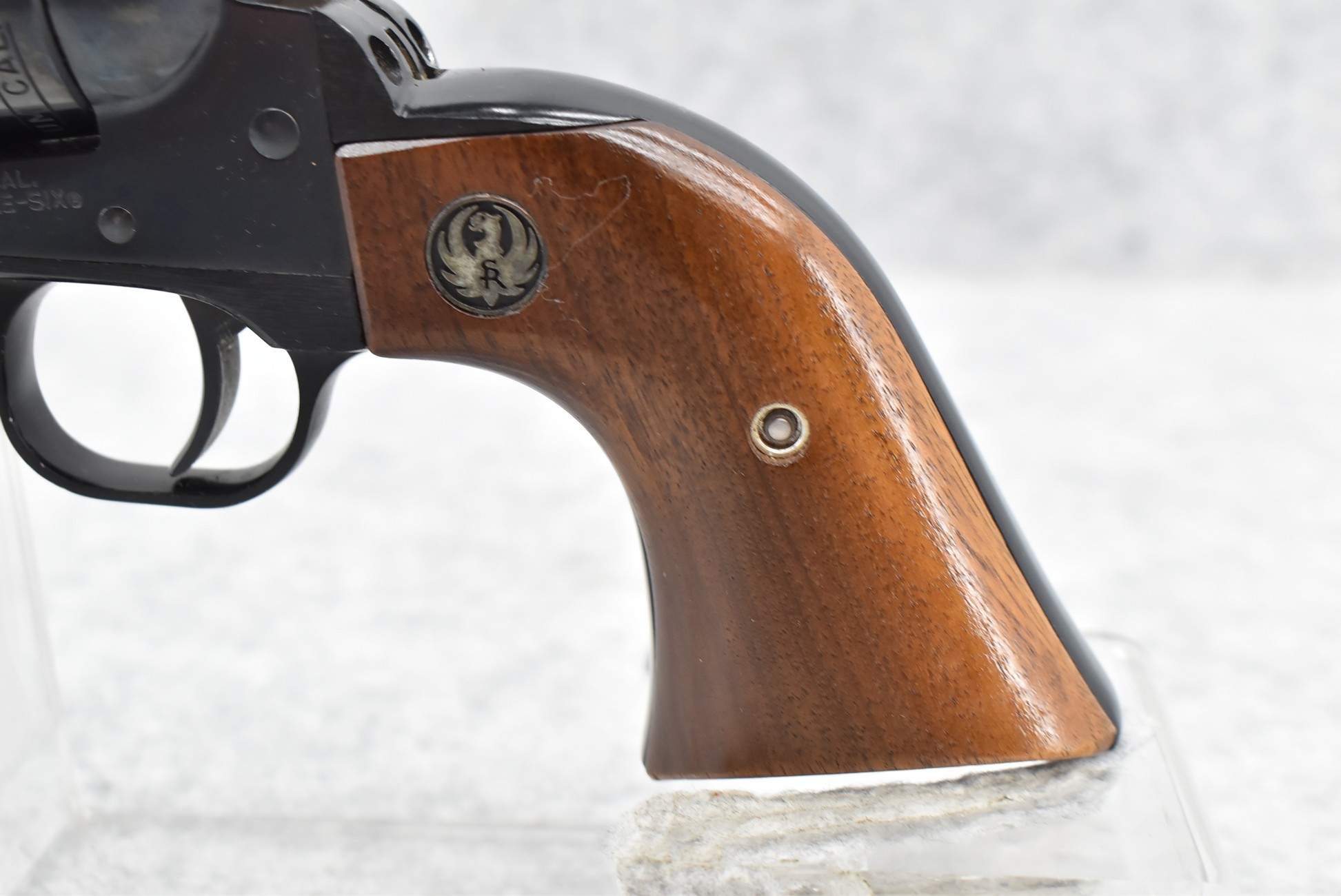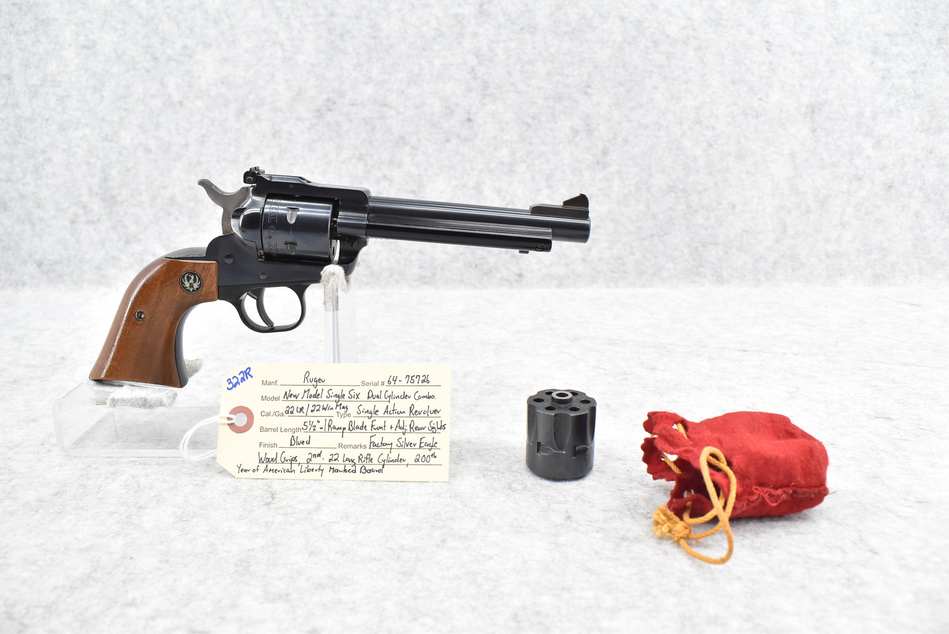 322R. Ruger – New Model Single Six Dual Cylinder Combo – 22LR/22 Win. Mag Cal. Single Action Revolver – w/5 ½” Barrel w/Ramp Blade Front & Adj. Rear Sights – Blued Finish – w/Factory Silver Eagle Wood Grips – w/2nd 22 Long Rifle Cal. Cylinder – Barrel Marked “200th Year of American Liberty”
