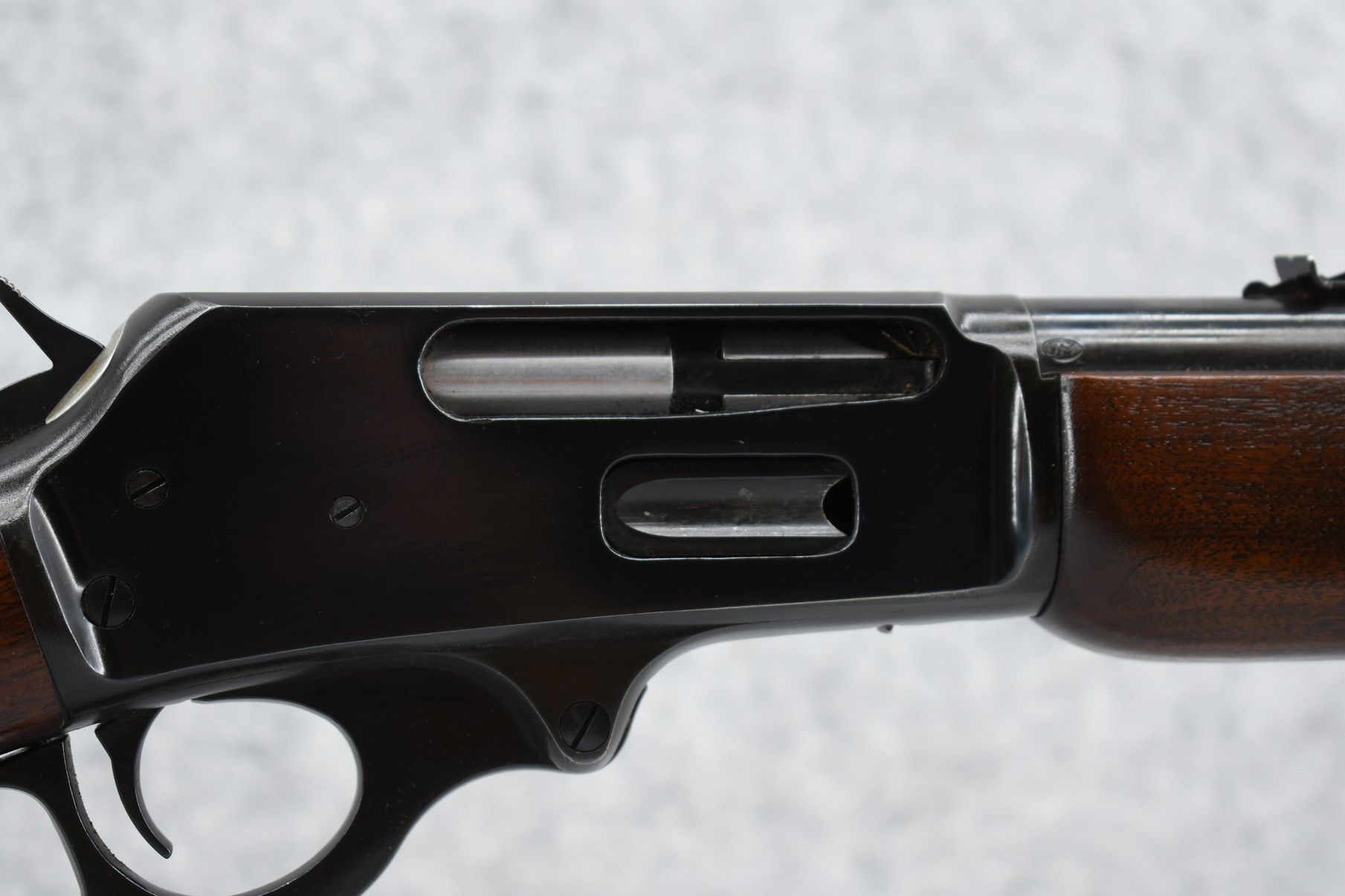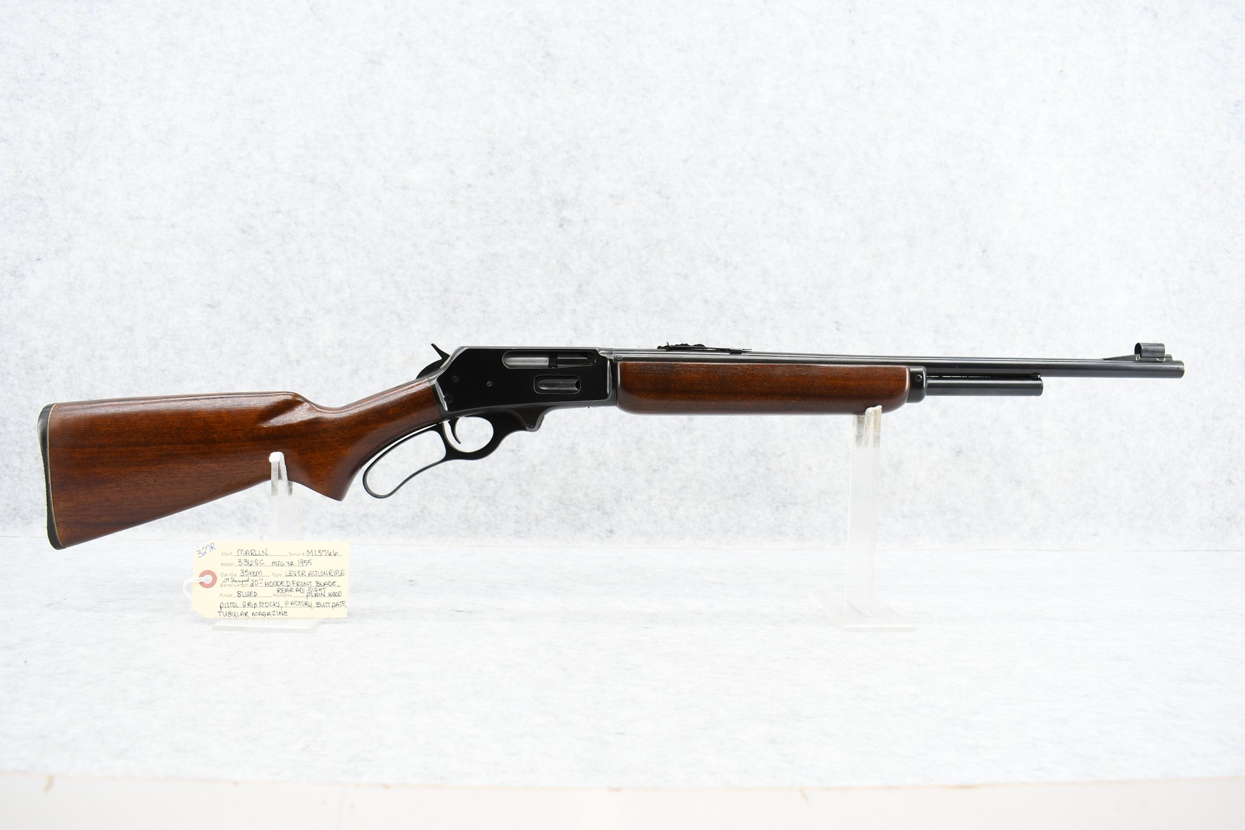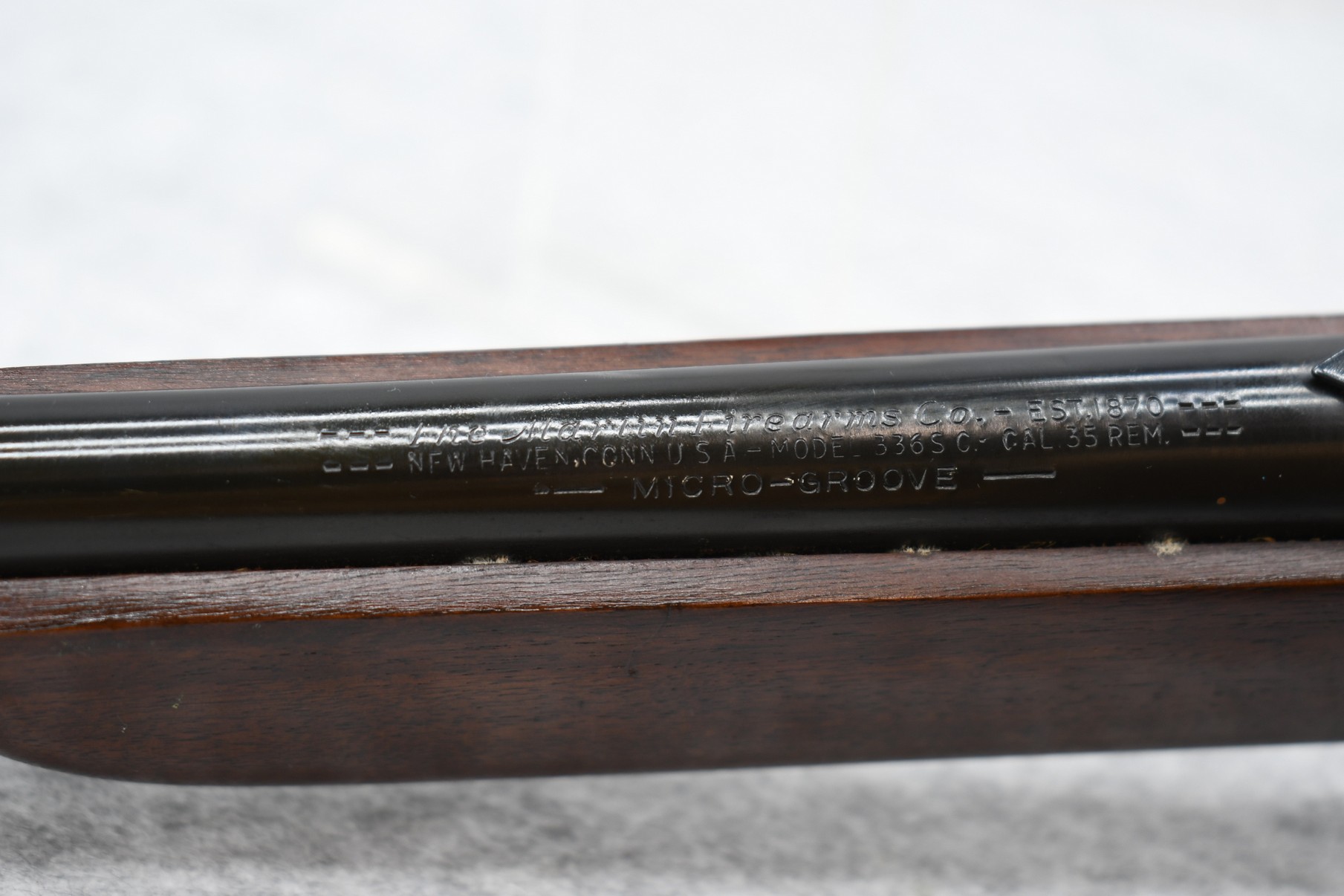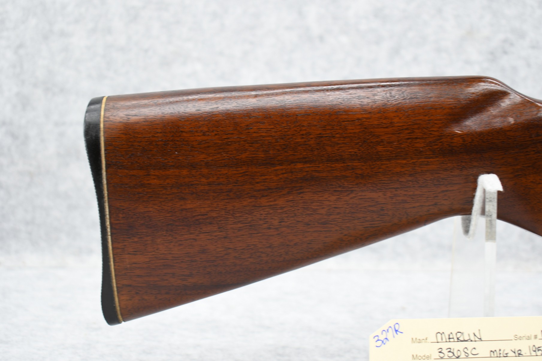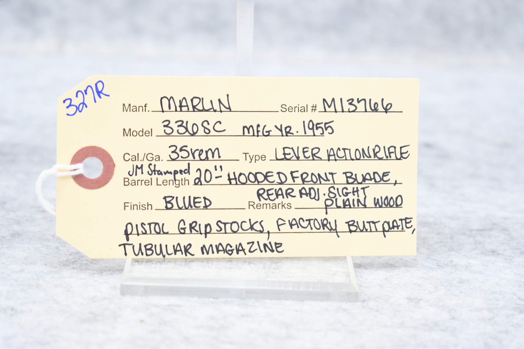 327R. Marlin – Mod. 336SC – 35 Rem. Cal. Lever Action Rifle – w/20” JM Stamped Barrel w/Hooded Front Blade & Rear Adj. Sights w/Tubular Magazine – Blued Finish – w/Plain Wood Pistol Grip Stocks w/Factory Butt Plate – Mfg. 1955