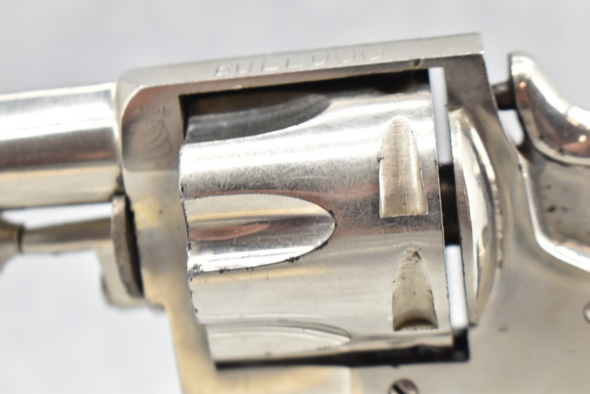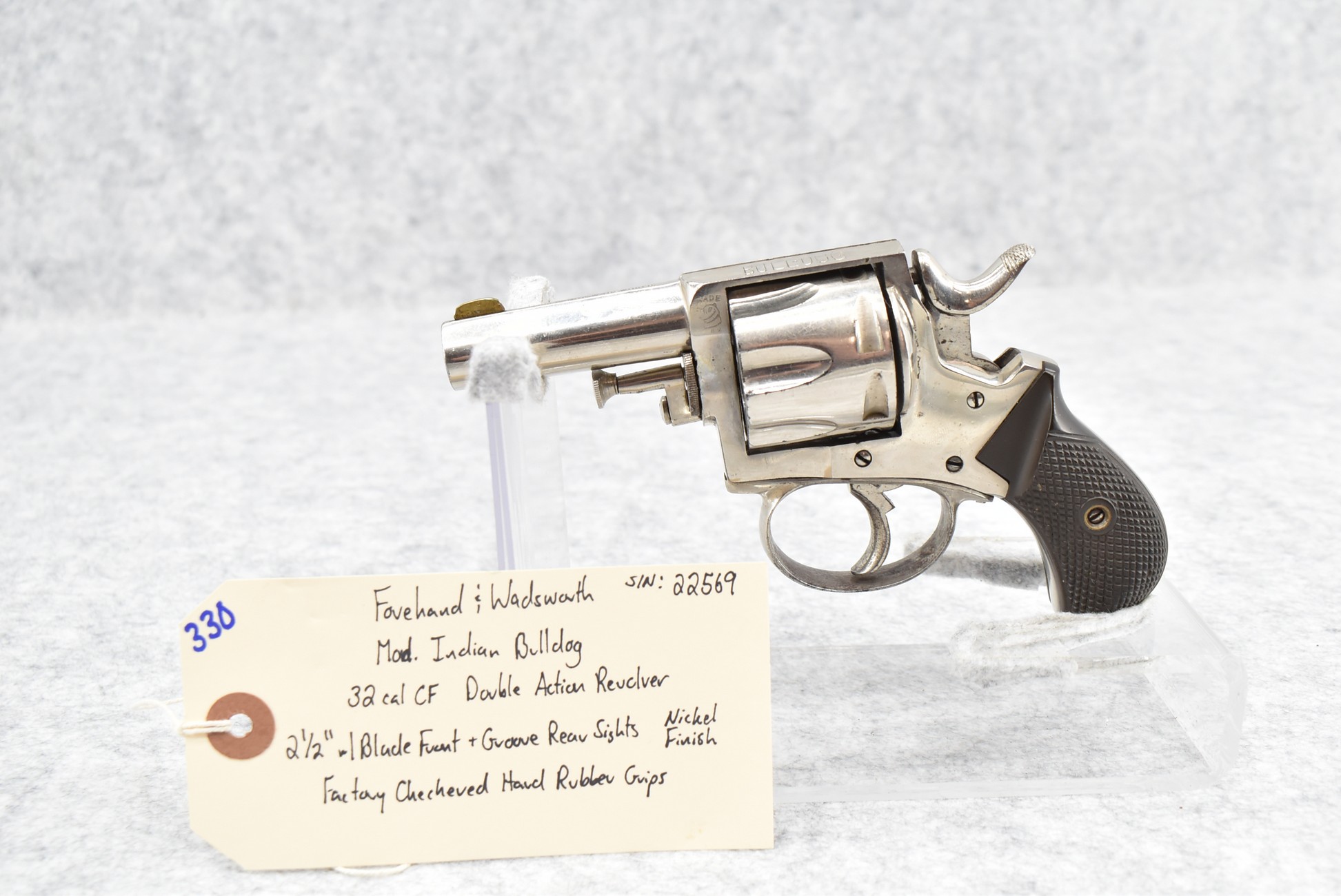 330. Forehand & Wadsworth – Mod. Indian Bulldog – 32 Cal. CF Double Action Revolver – w/2 ½” Barrel w/Blade Front & Groove Rear Sights – Nickel Finish – w/Factory Checkered Hard Rubber Grips