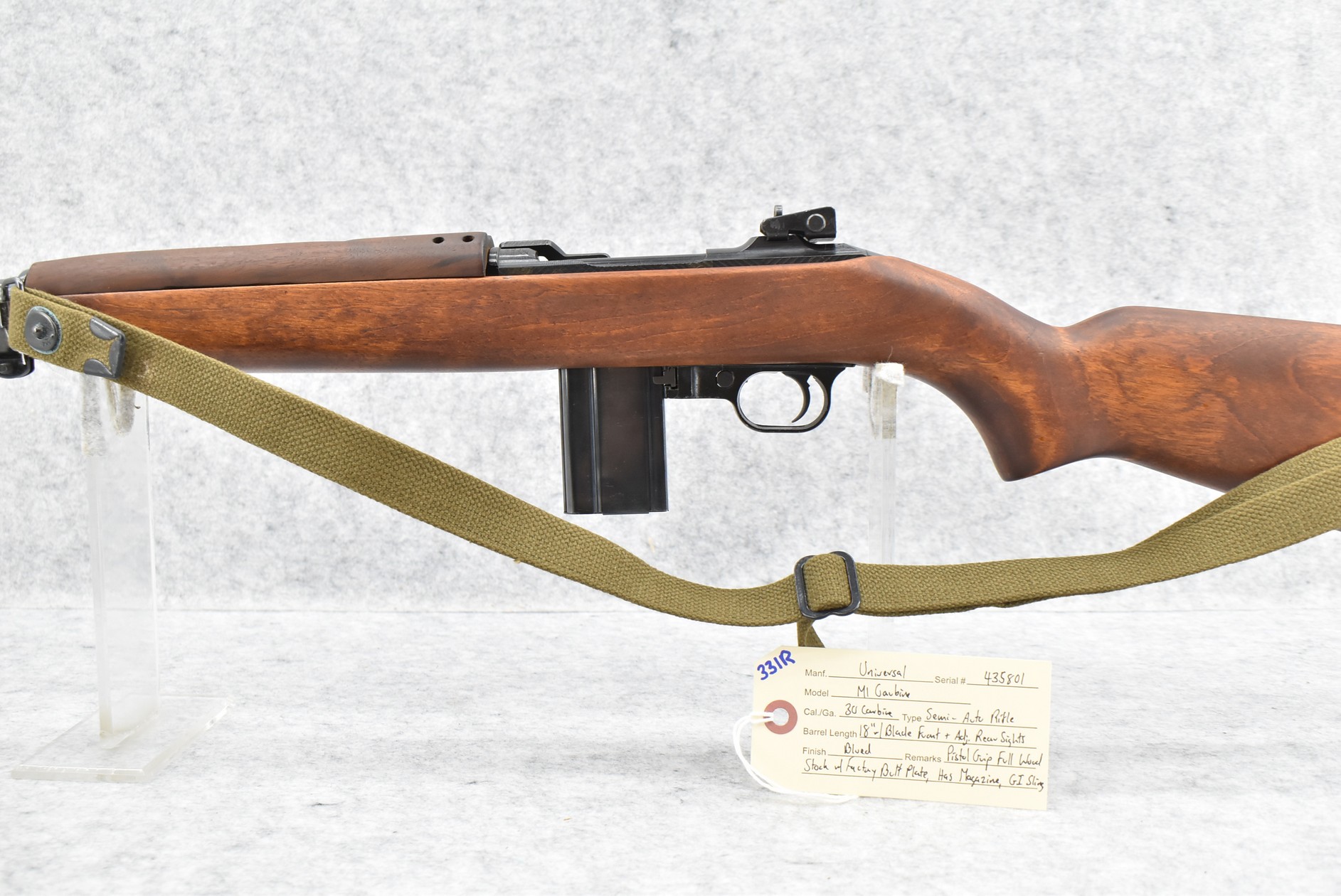 331R. Universal – Mod. M1 Carbine – 30 Carbine Cal. Semi-Auto Rifle – w/18” Barrel w/Blade Front & Adj. Rear Sights – Blued Finish – w/Pistol Grip Full Wood Stock w/Factory Butt Plate – w/Magazine – w/GI Sling
