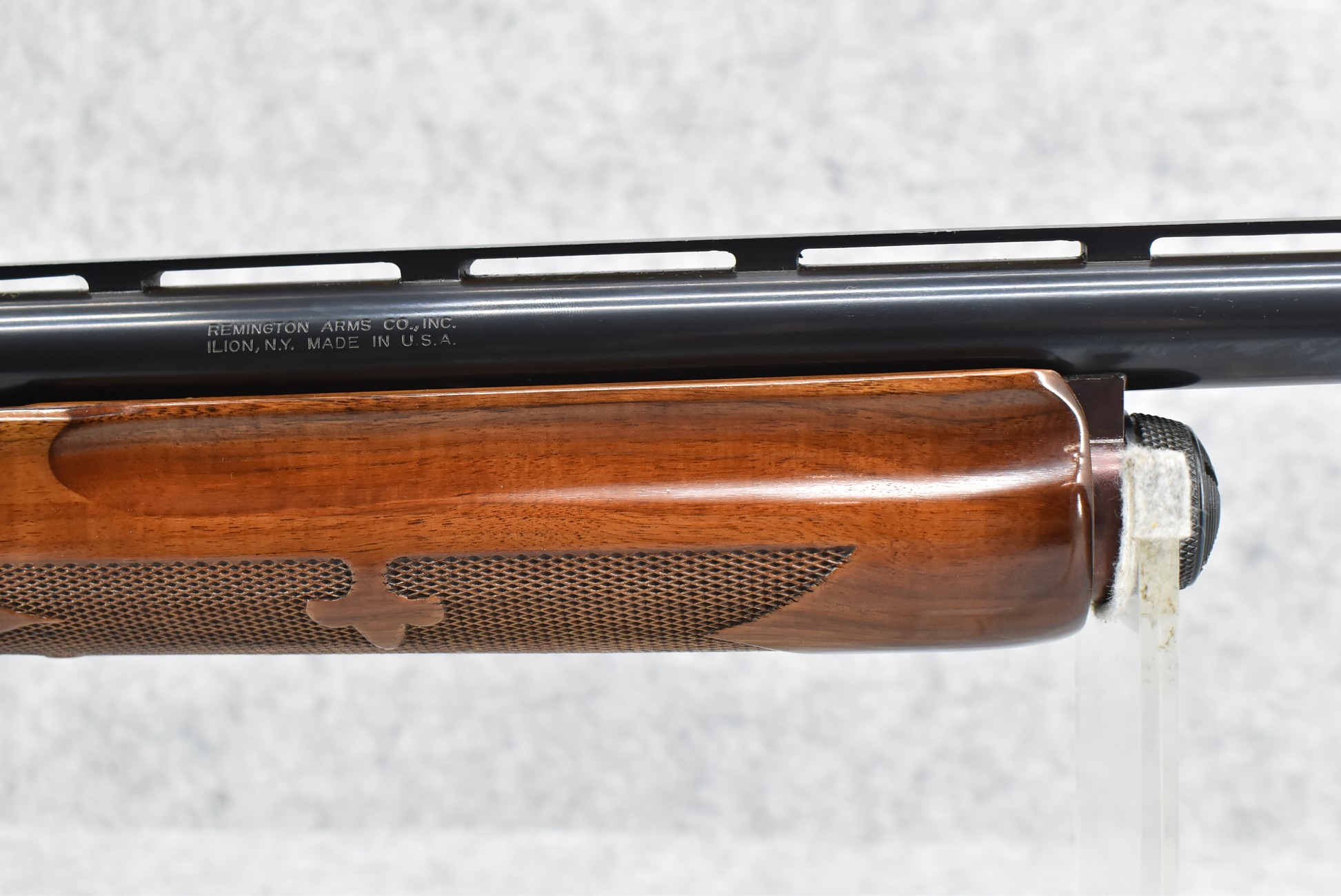 333R. Remington – Mod. 870 Wingmaster – 12ga. Pump Action Shotgun – w/25 ½” Mod. Choke, Vent-Rib Barrel w/Bead Sight – Blued Finish – w/Deluxe Checkered Capped Pistol Grip Wood Stocks w/Factory Butt Pad – w/Factory Owner’s Manual