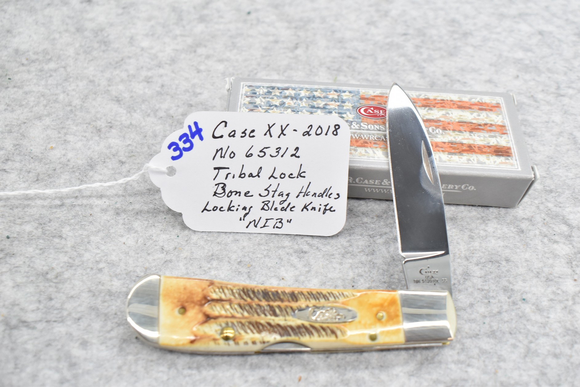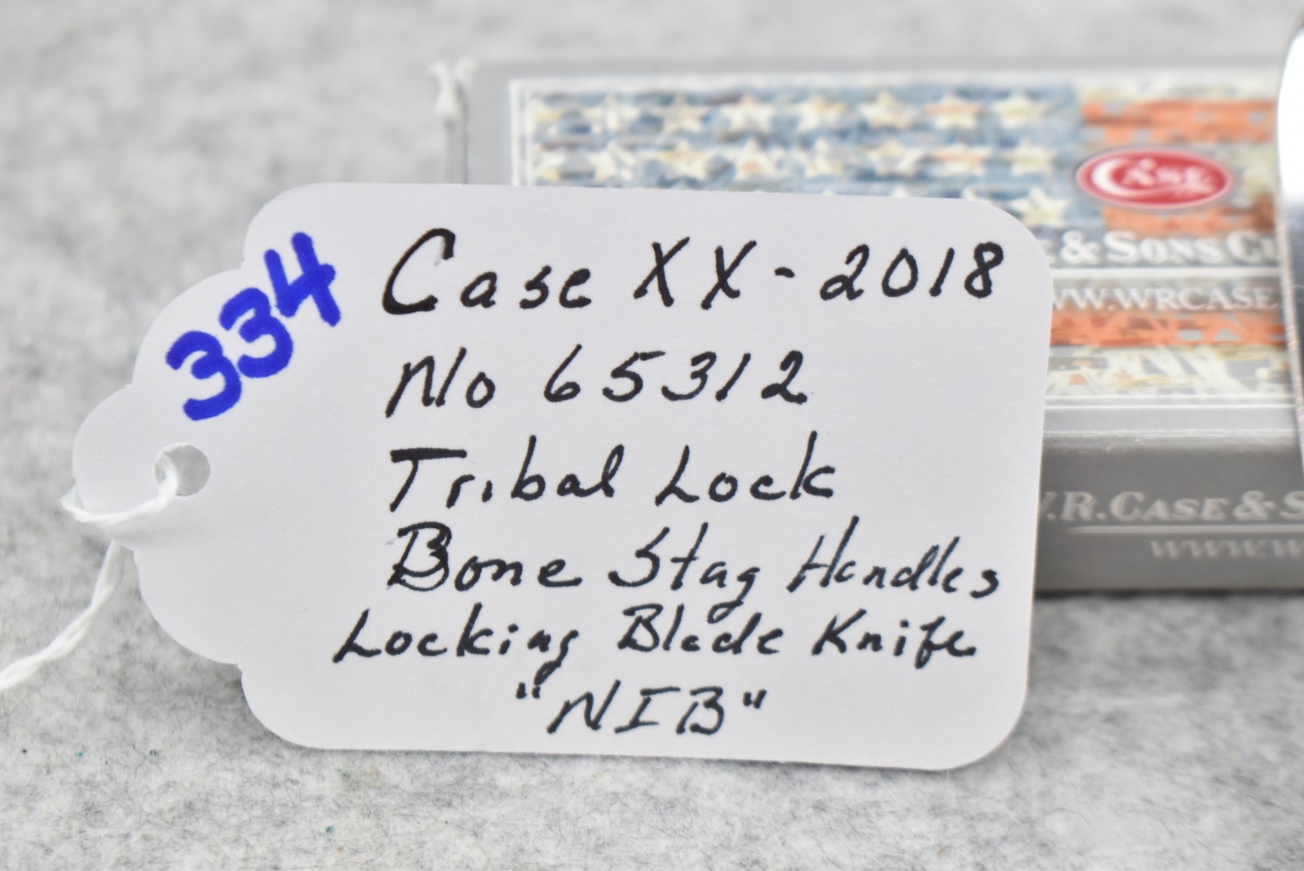 334. Case XX – 2018 #65312 Tribal Lock Bone Stag Handle Locking Blade Knife – NIB