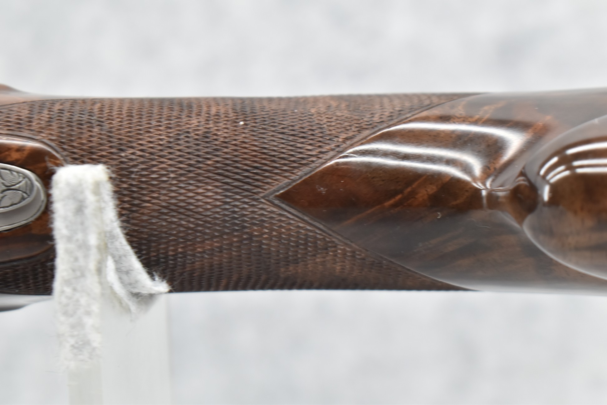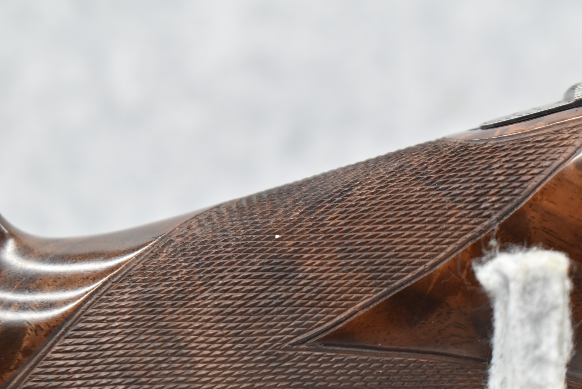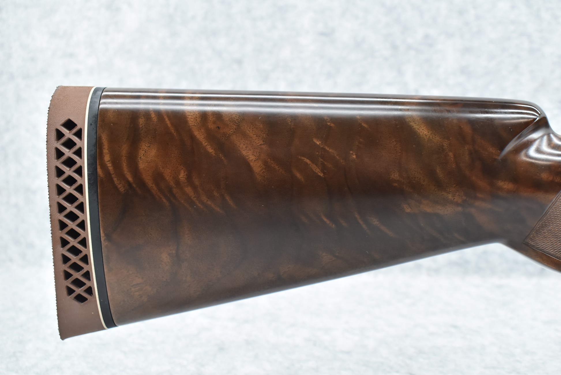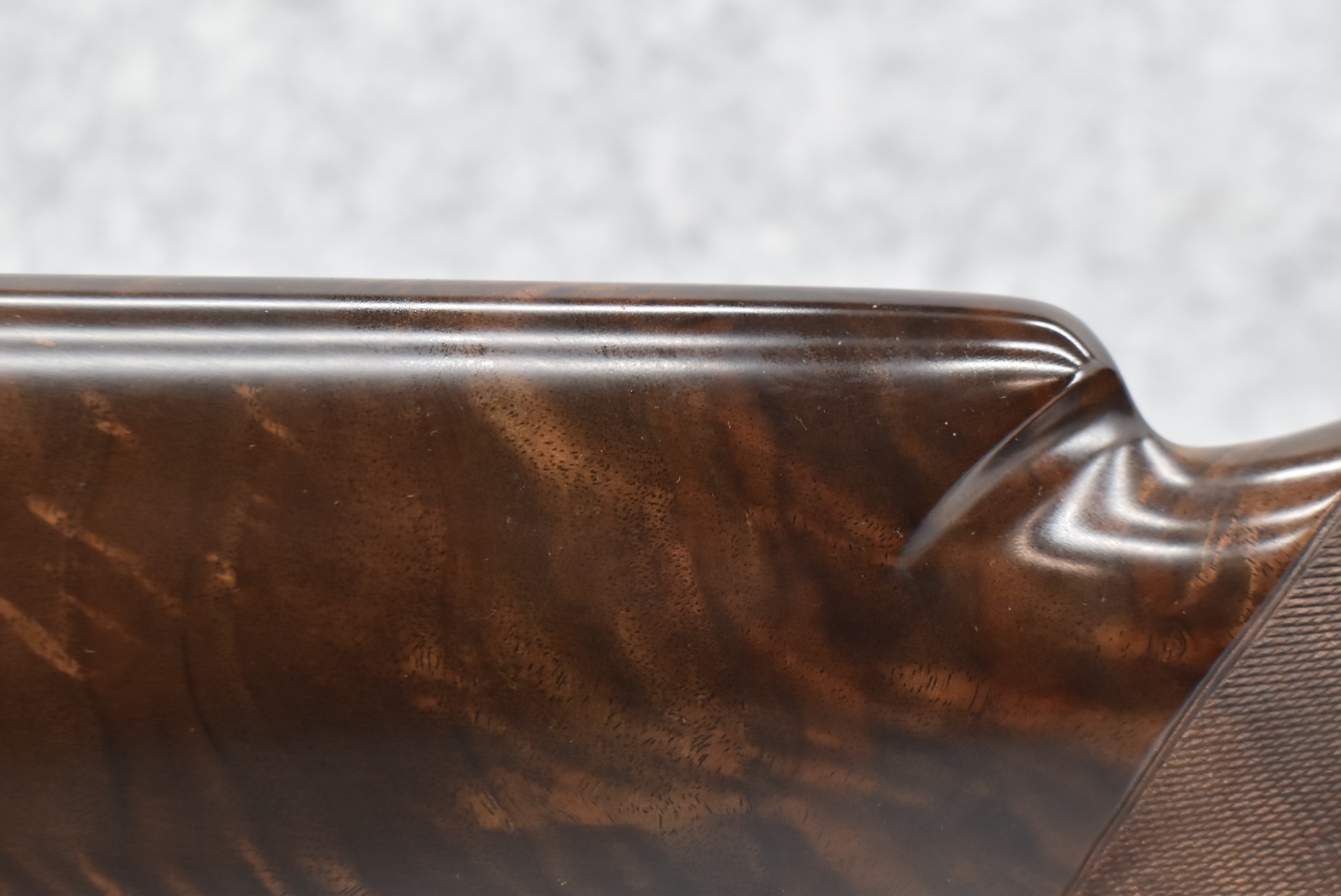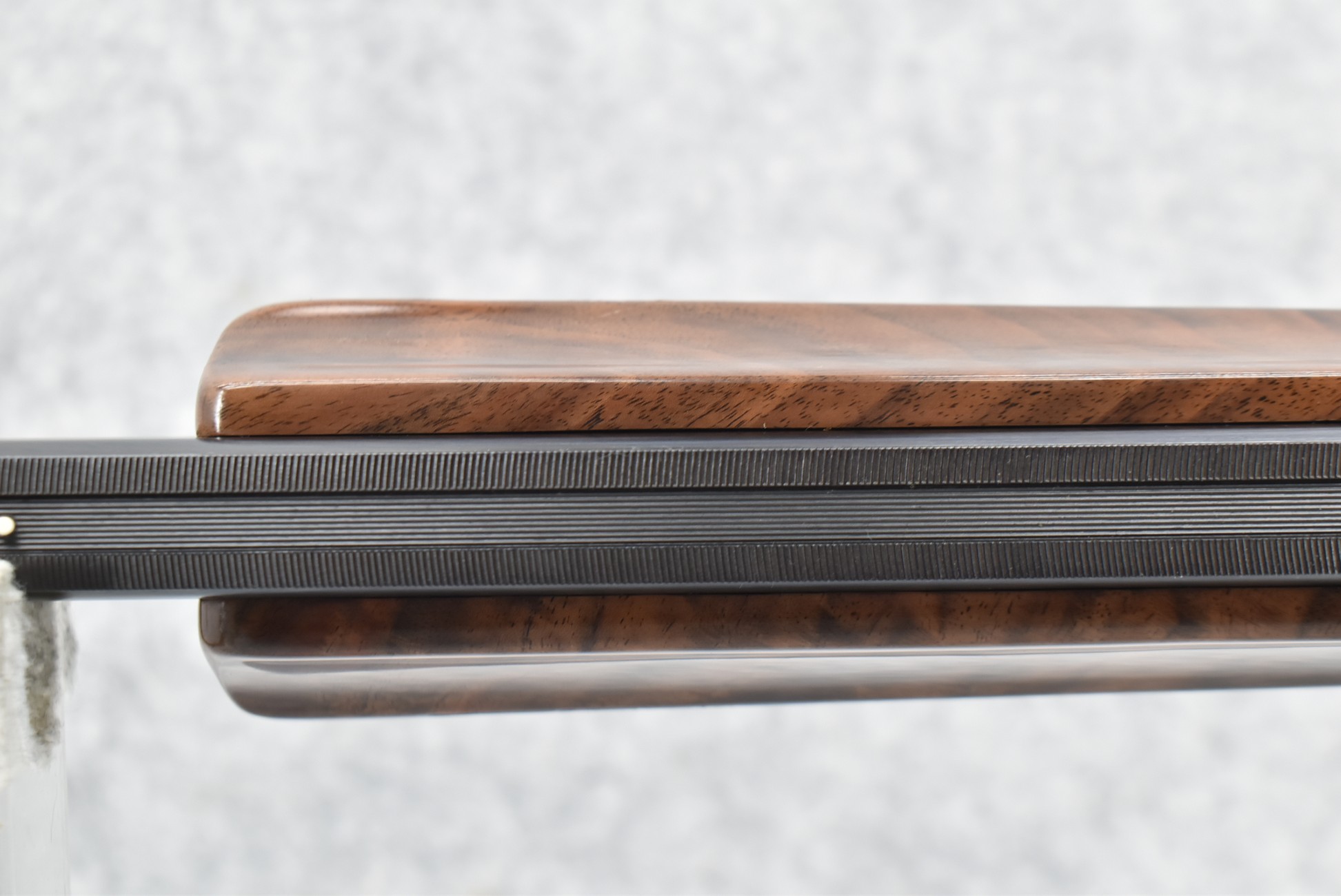 335R. Excellent! R. Dewil Signed & Engraved Belgian Browning 12ga. 2 ¾” Superposed Diana Grade Broadway Trap Over-Under Shotgun – Serial Number 6398569 – Gun is Fitted w/32” Blued Steel Barrels w/Broadway Tap Wide Vent-Rib & Dual Bead Sights – Barrels Are Choked Full on the Top & Improved Modified on the Bottom – Barrels Retain Virtually All Their Blued Finish – The Receiver on This Gun is a Coin Silver Finish Which Has Been Masterfully Engraved by Browning Master Engraver Rene Dewil. The Right Side of the Receiver is Done with a Flushing Waterfowl Scene Bordered w/Floral Pattern Scroll, The Left Side Mimics the Same Floral Scroll Broder but Around a Flushing Pheasant Scene. Bottom of the Receiver & Trigger Guard Are Engraved w/Quail & Rabbits Bordered by a Floral Scroll Pattern. DeWil’s Signed Both Sides of the Receiver at the Bottom of Each Scene! – Gun is Stocked with a Highly Figured Checkered Pistol Grip Wood Butt Stock w/Factory Browning Recoil Pad & Matching Highly Figured Checkered Wood Forearm – This Gun Started Out as a “Salt Wood” Gun but Was Promptly Sent Back by the Owner to Browning to Have the Necessary Warranty Work Performed! Accompanying This Fine Gun is the Original Purchase Receipt of This Gun for $850 & The Receipt Dated June 26, 1970! The Original Browning Superposed Guarantee Warranty Card & All the Original Correspondence from When the Gun Was Sent Back to Browning for the Warranty of the Salt Wood Issue! Overall, an Excellent Example of a Diana Grade Superposed!