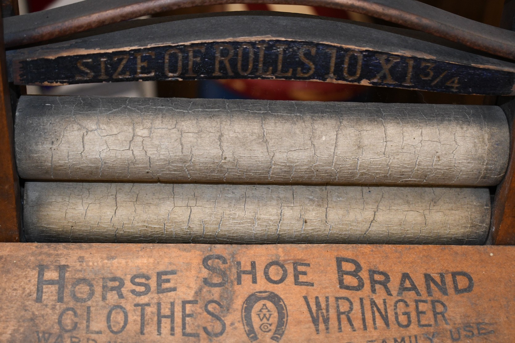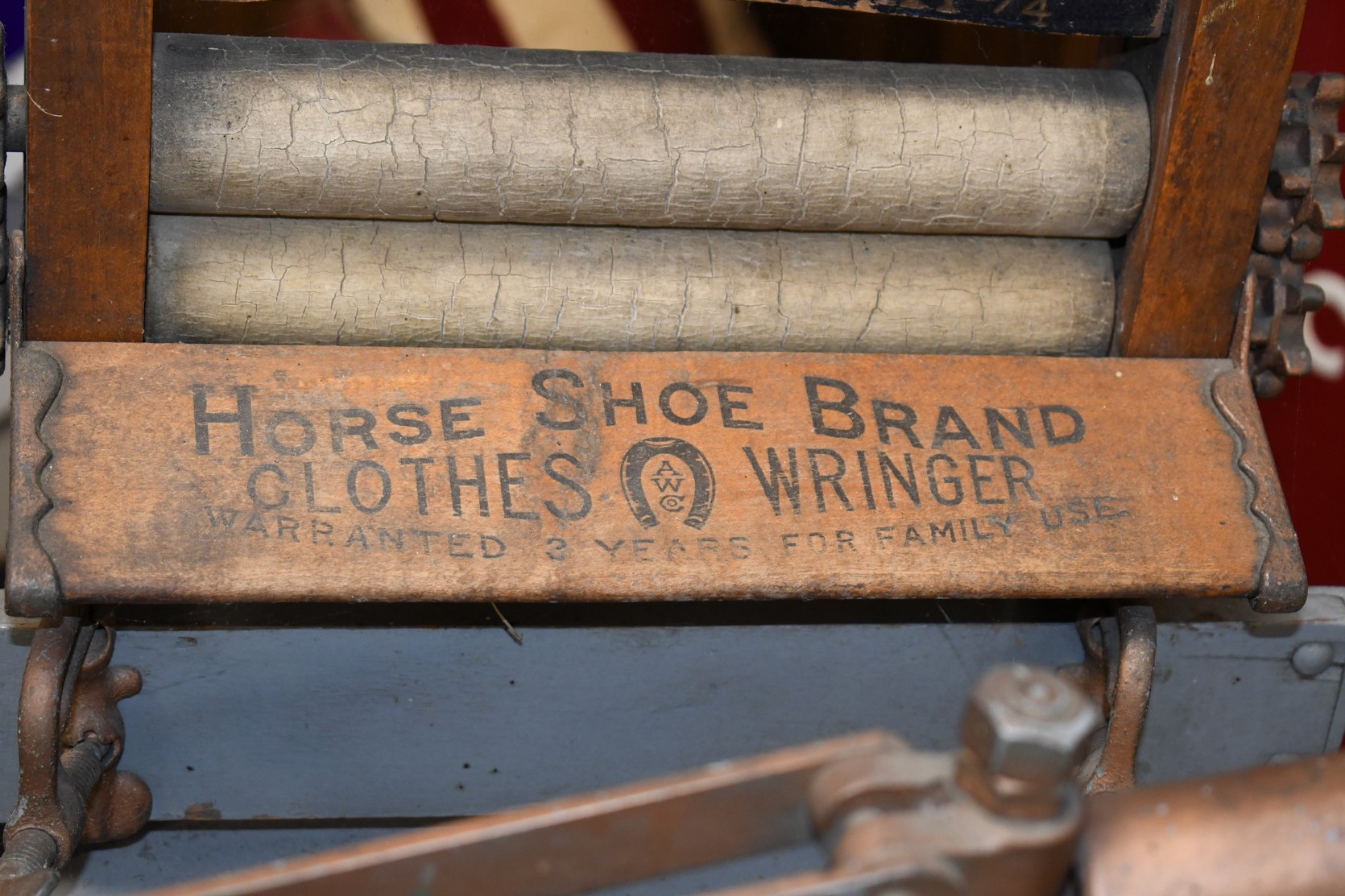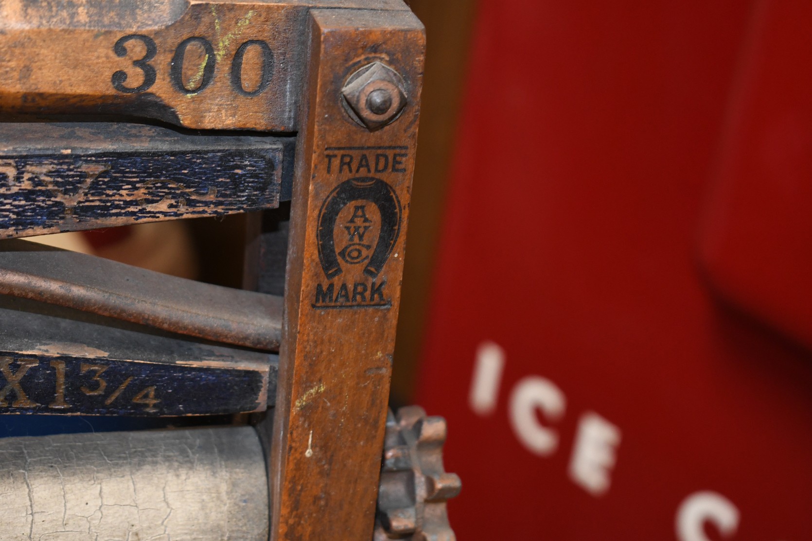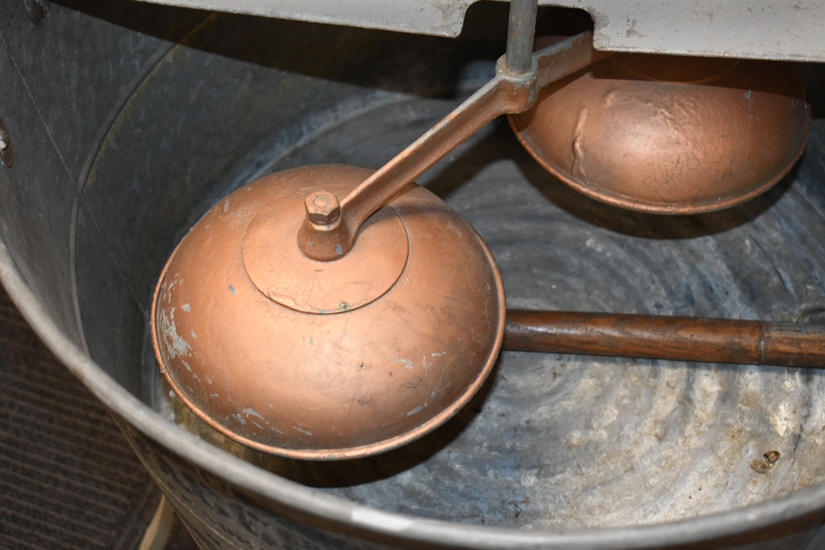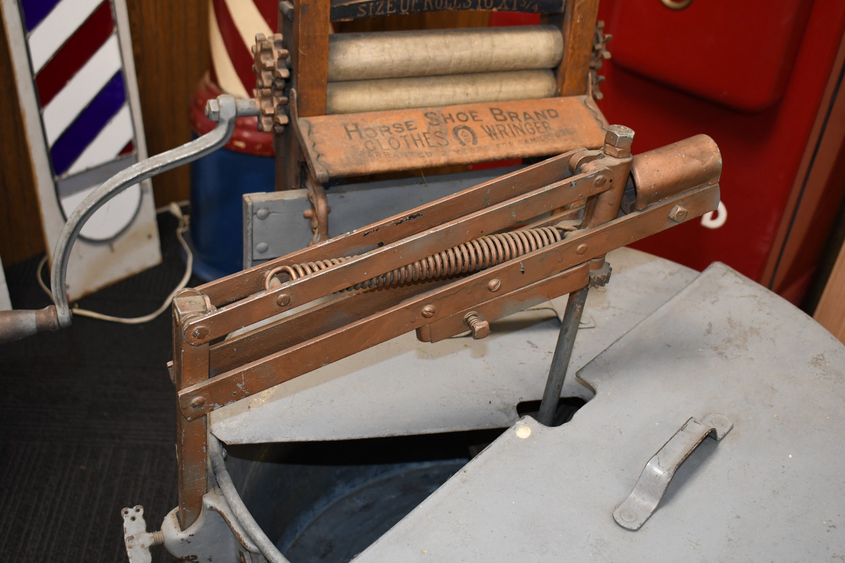 336. Vintage Vaccup Galvanized Hand-Agitated Washing Machine w/Horseshoe Brand Novelty Wooden Wringer – The Burlingame Manufacturing Co. Syracuse NY – Size 300 – Will Not Ship, Pickup Only or You Must Arrange Your Own Shipping!