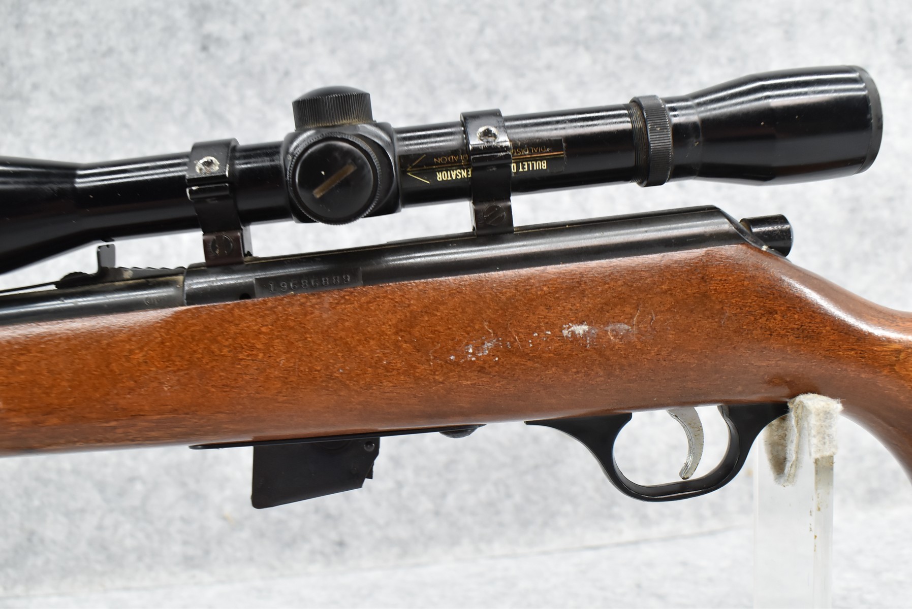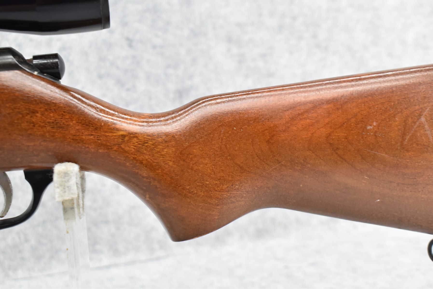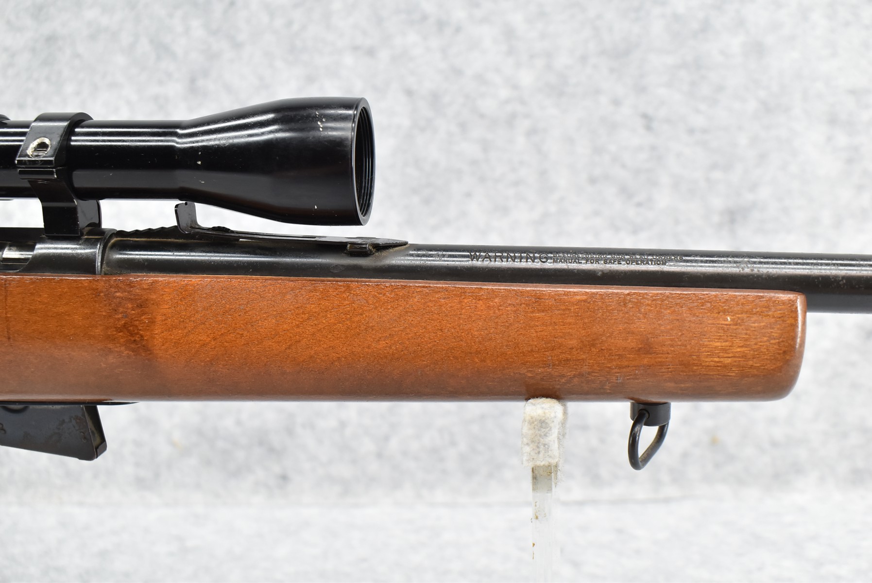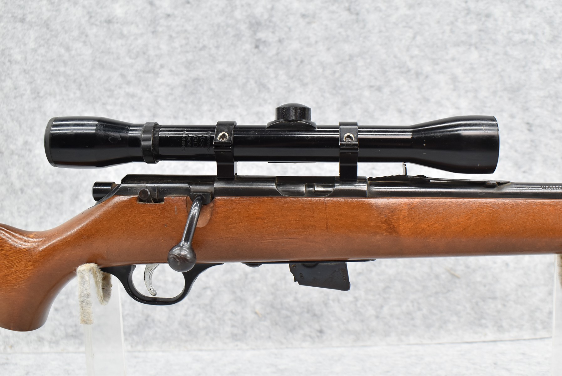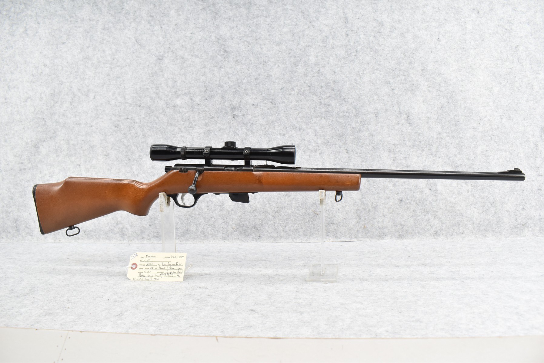337R. Marlin – Mod. 25 – 22LR Cal. Bolt Action Rifle – w/22” Barrel w/Front & Rear Sights – Blued Finish – w/Smooth Wood Pistol Grip Stock w/Factory Butt Plate – w/5Rd Mag – w/Bushnell 4x Banner Scope