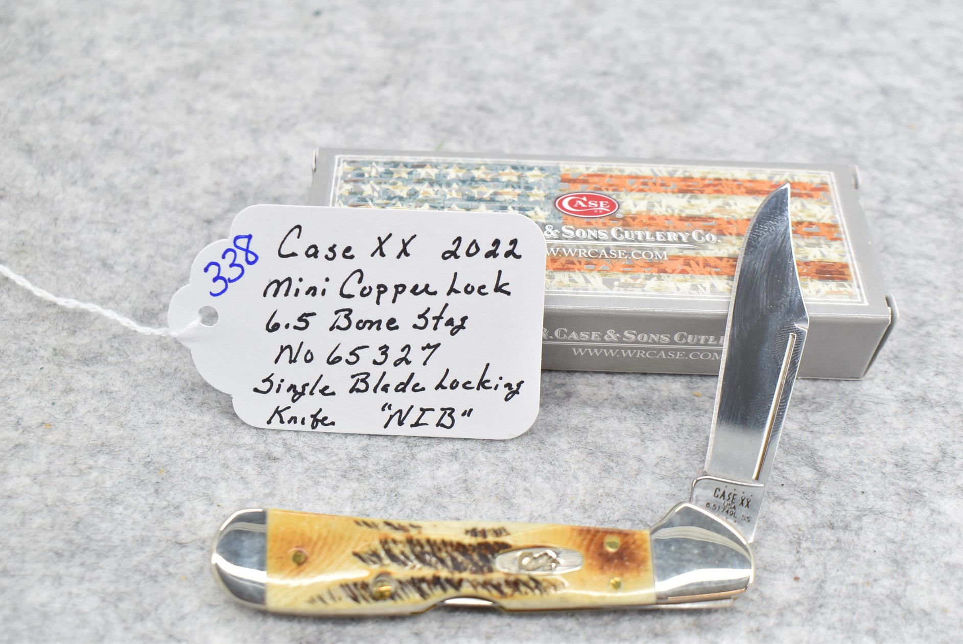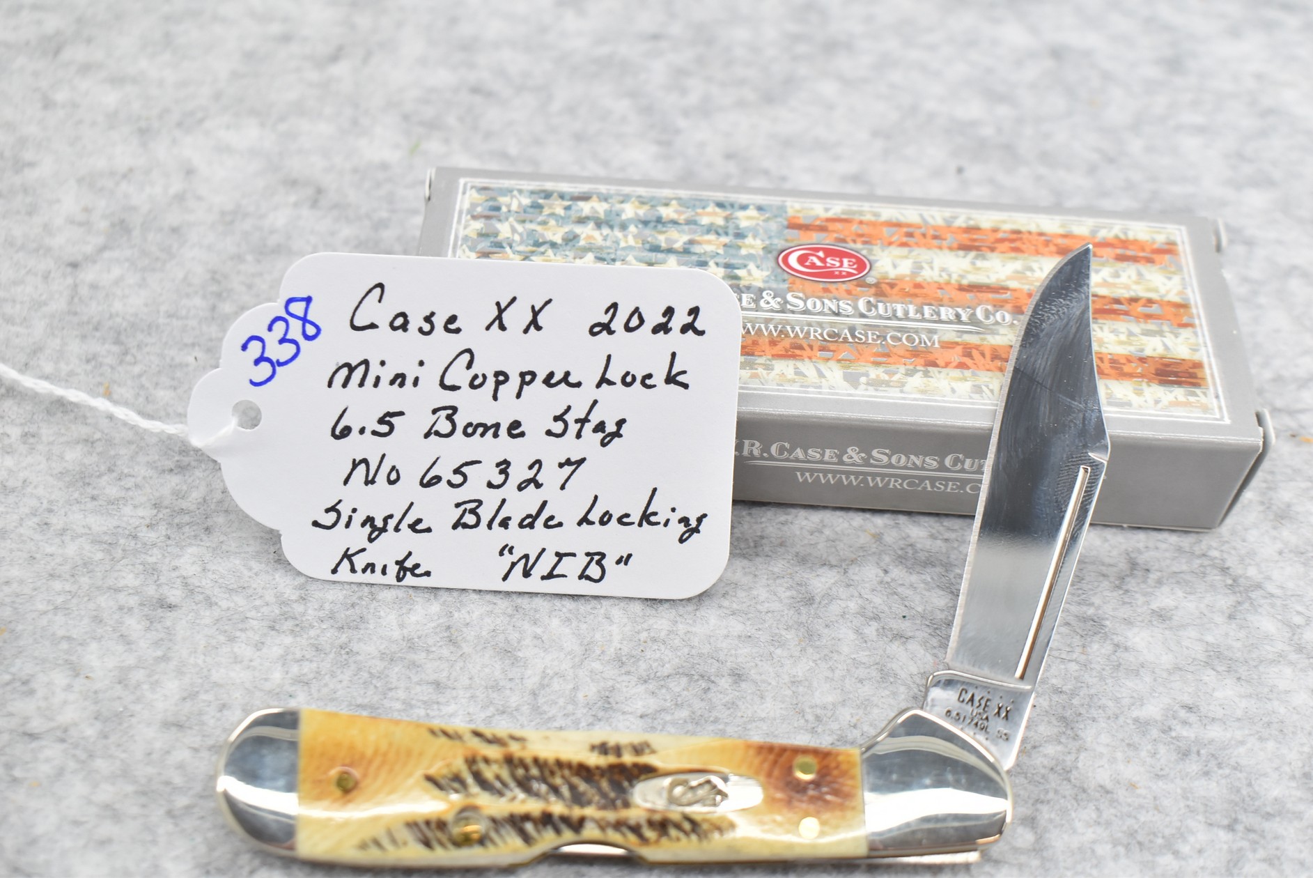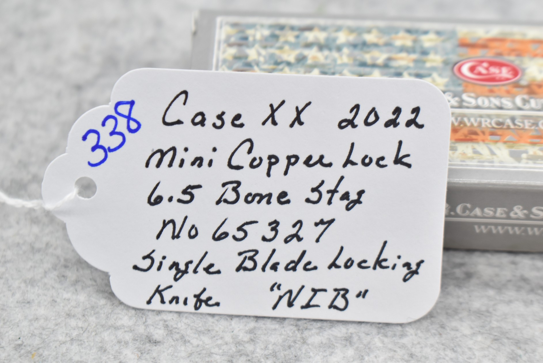 338. Case XX – 2022 #65327 Mini Copper Lock 6.5 Bone Stag Single Blade Locking Knife – NIB