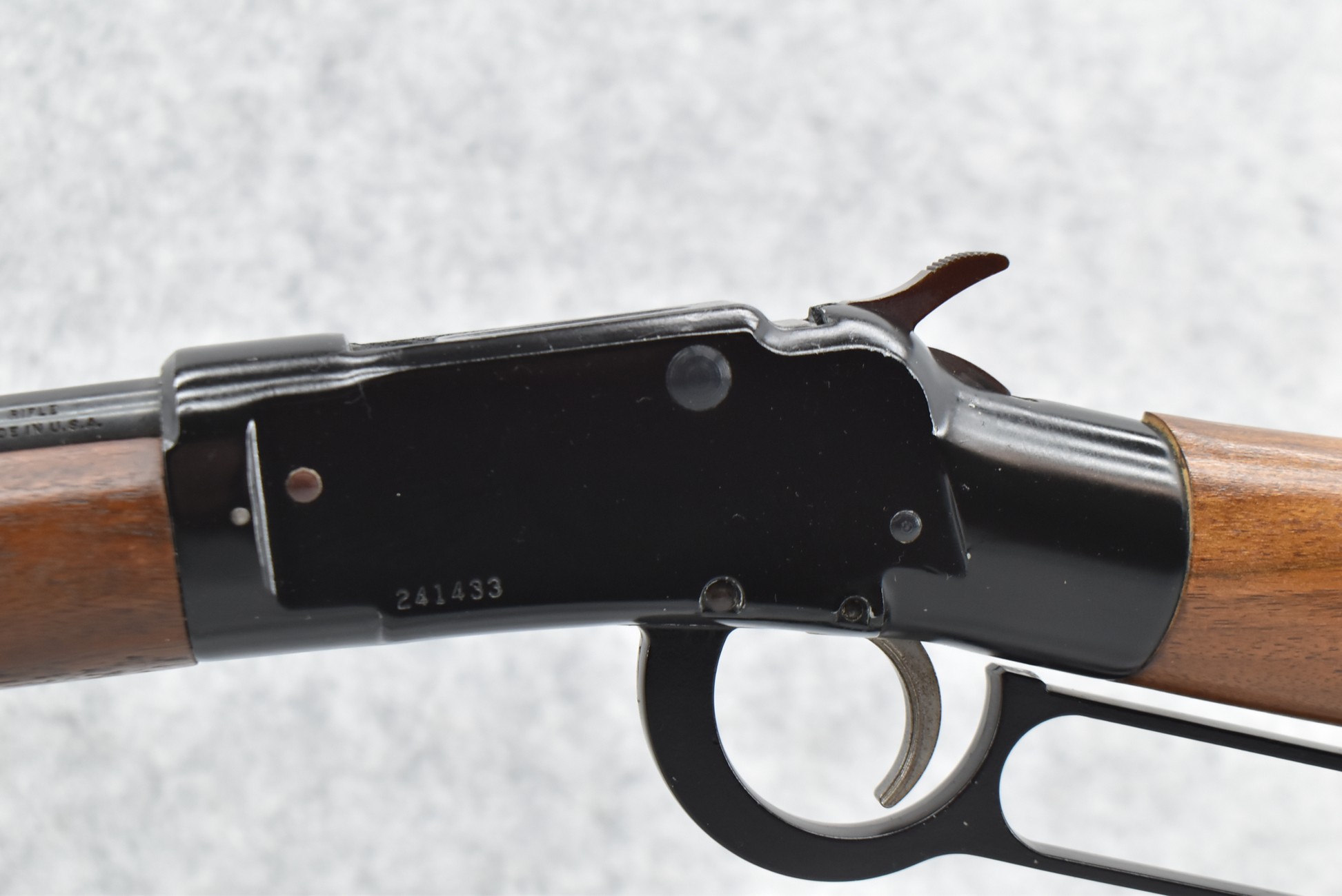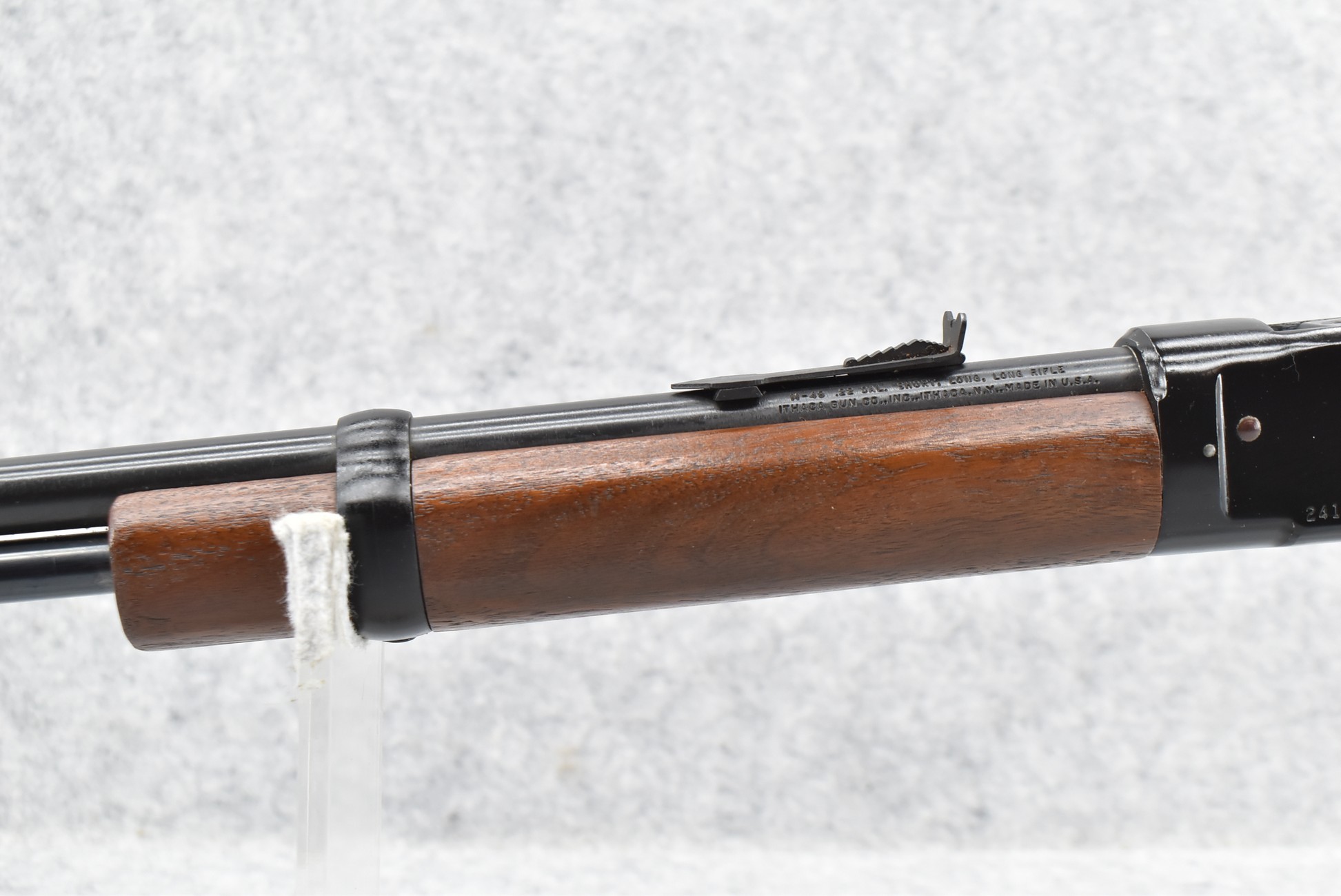 338R. Ithaca – Mod. 49 – 22 Cal. Lever Action Rifle – w/18” Barrel w/Blade Front & Adj. Rear Notch Sights w/Full Length Tubular Magazine – Blued Finish – w/Straight Grip Wood Stocks w/Factory Butt Plate – As New!