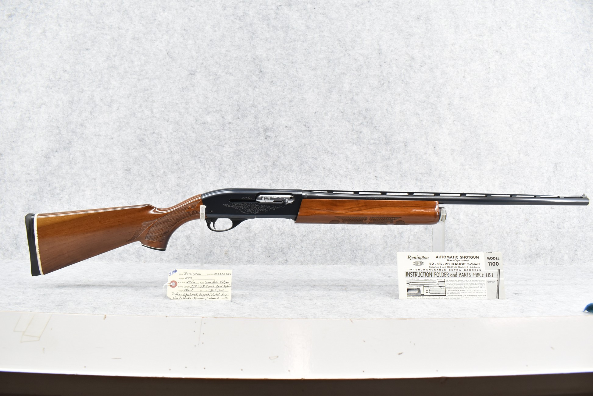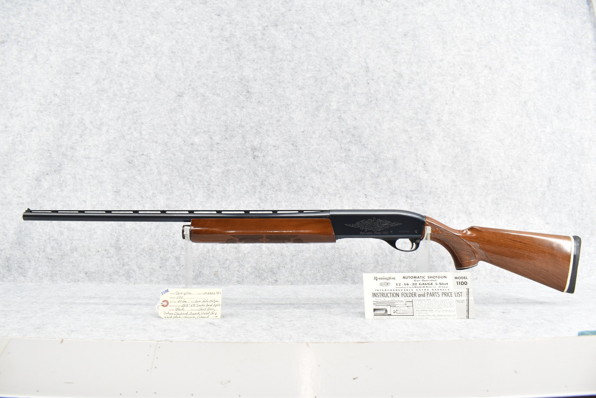 338R. Remington – Mod. 1100 – 20ga. Semi-Auto Shotgun – w/25 ½” Skeet Choked, Vent-Rib Barrel w/Double Bead Sights – Blued Finish – w/Enhanced Receiver on Both Sides – w/Deluxe Checkered Pistol Grip Wood Stocks w/Kick-EEZ Butt Pad – w/Factory Manual