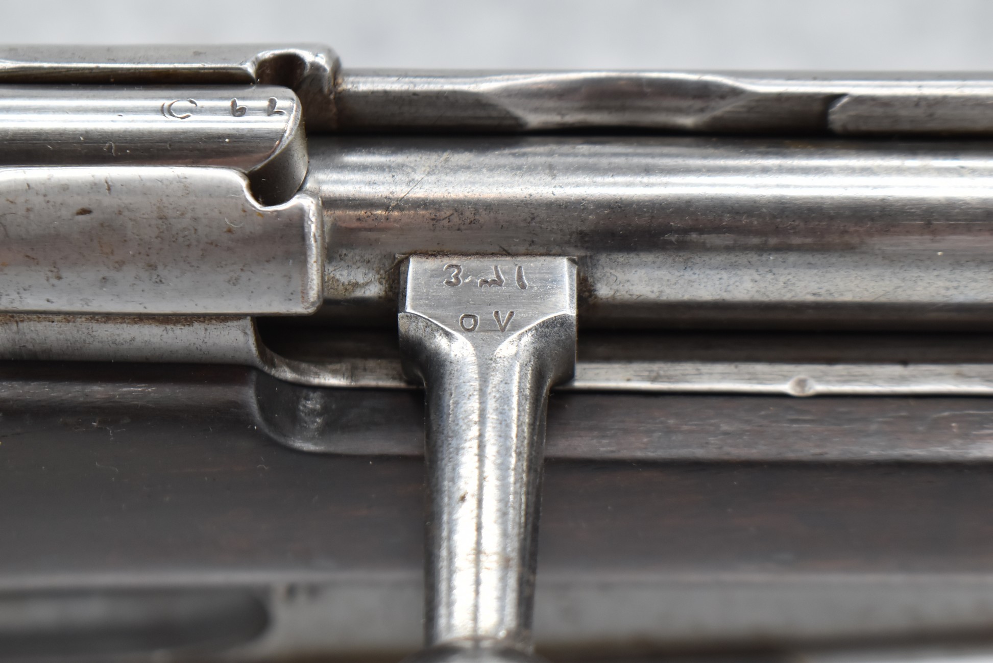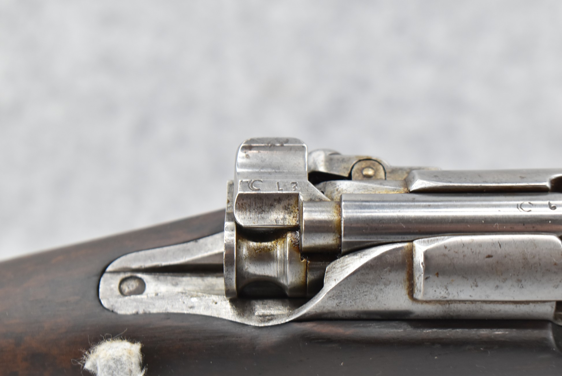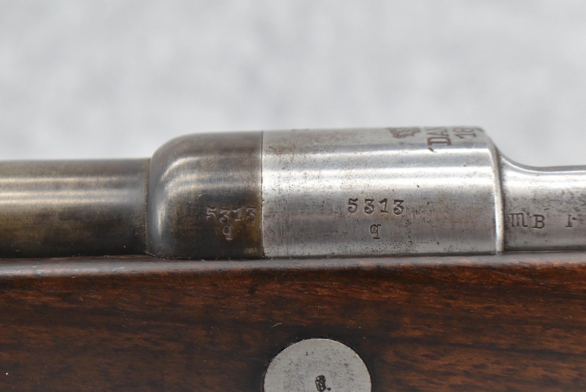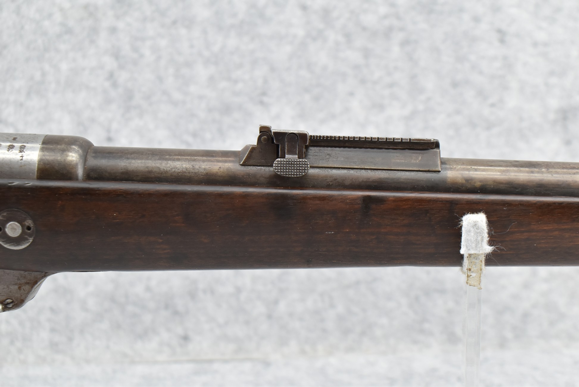 34. Danzig – Mod. Gew 88 – Dated 1890 – 8mm Cal. Bolt Action Military Rifle – w/29” Barrel w/Blade Front & Adj. Rear Ladder Sights – Gray Finish – w/Straight Grip Full Wood Stock w/Metal Butt Plate – Missing Cleaning Rod
