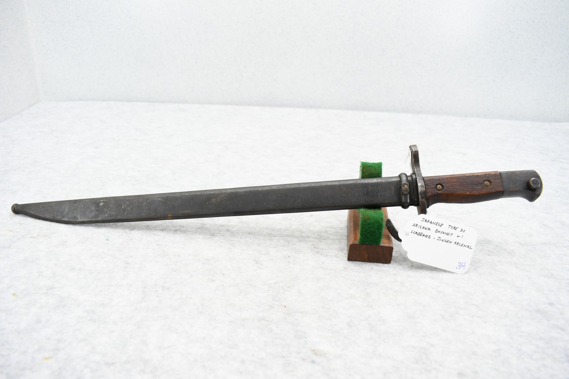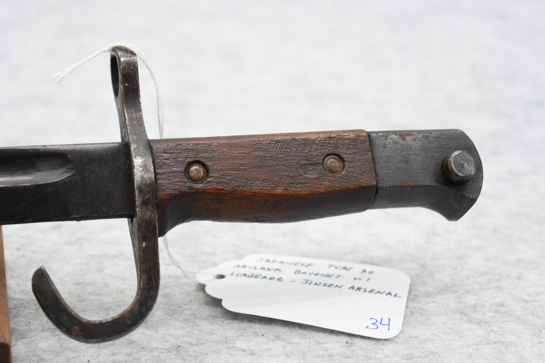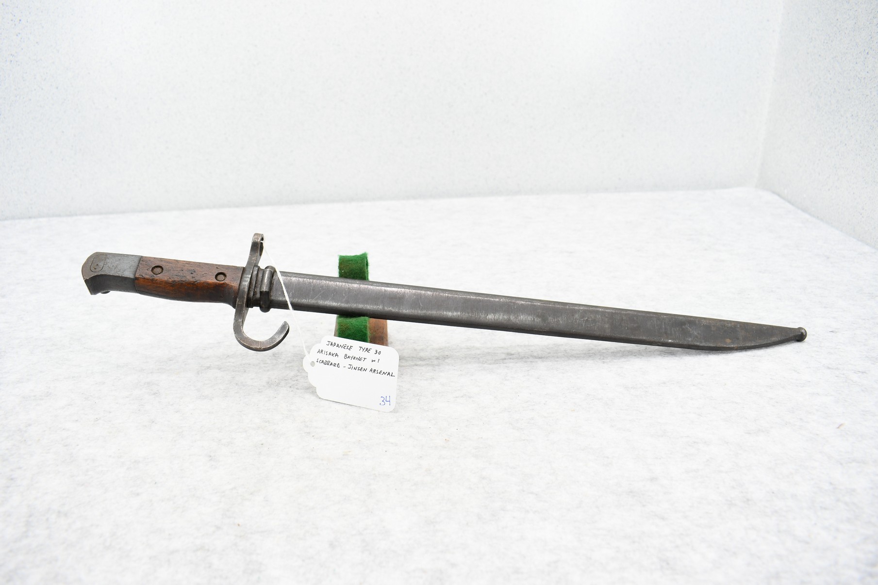 34. Early War Japanese Type 30 Arisaka Bayonet w/Scabbard – Jinsen Arsenal w/Hook Quillon