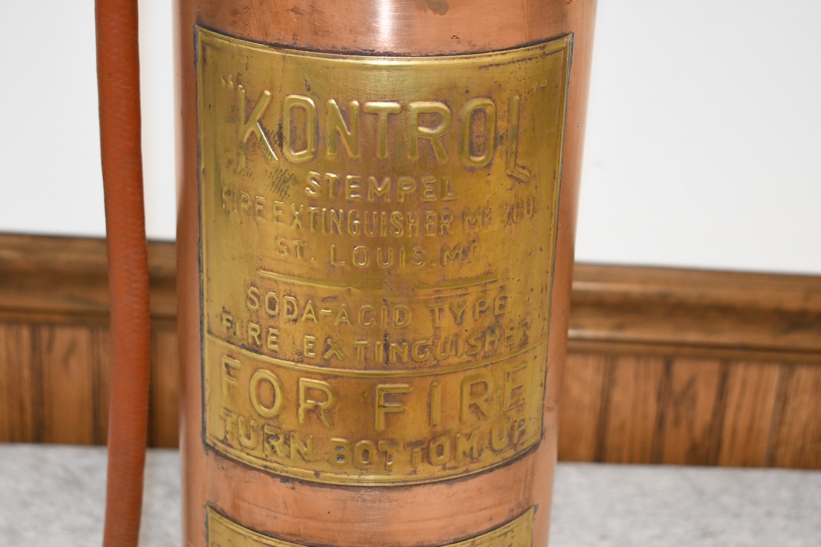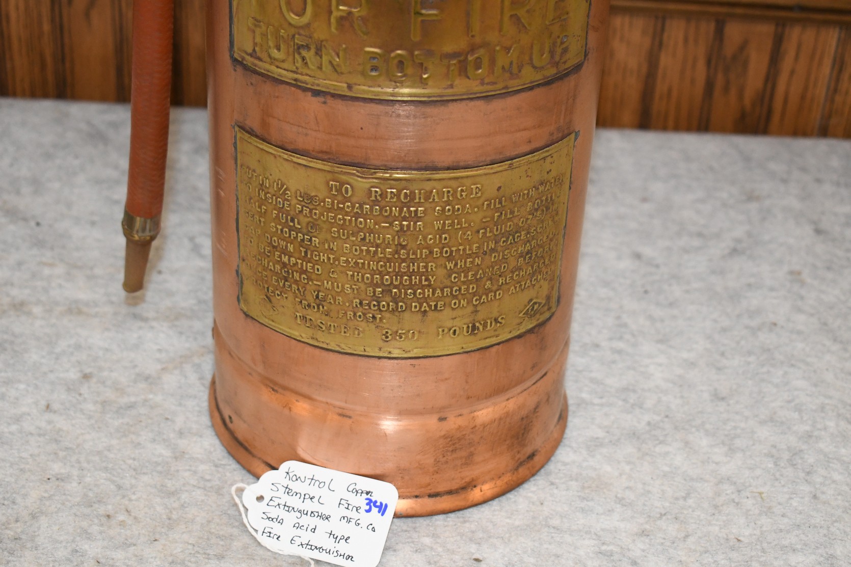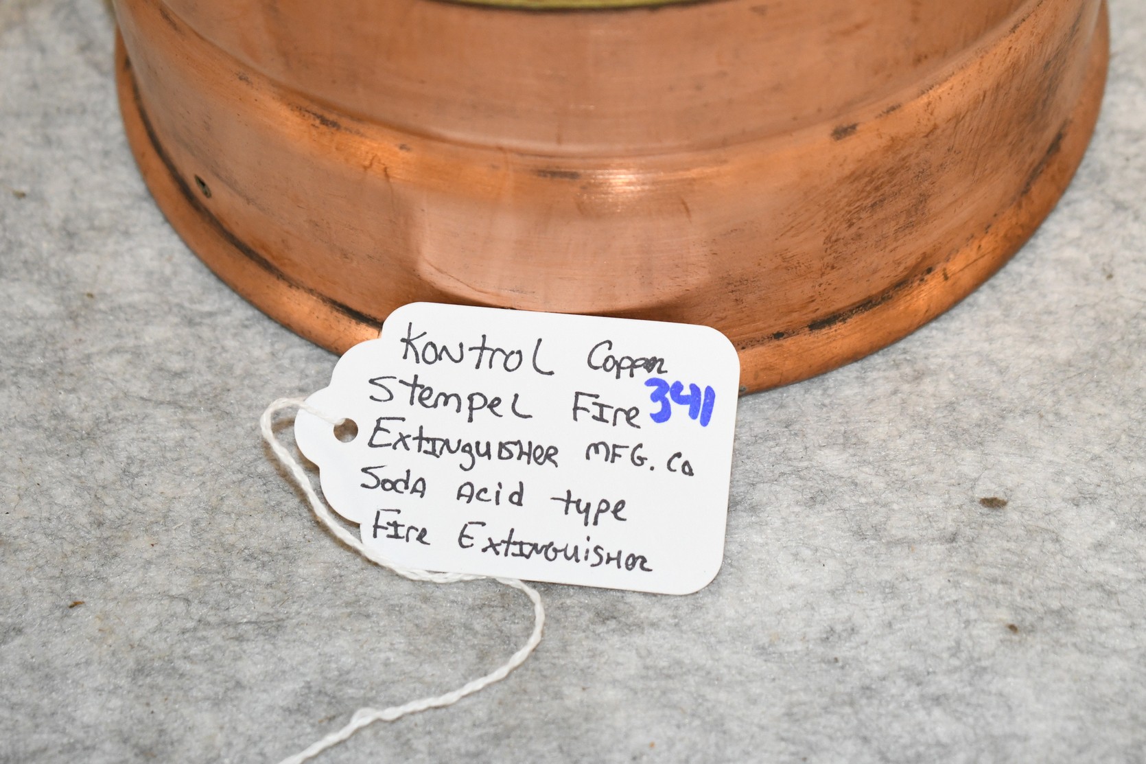 341.   Kontrol Stempel Fire Extinguisher Manufacturing Co. Copper Soda Acid Type Fire Extinguisher