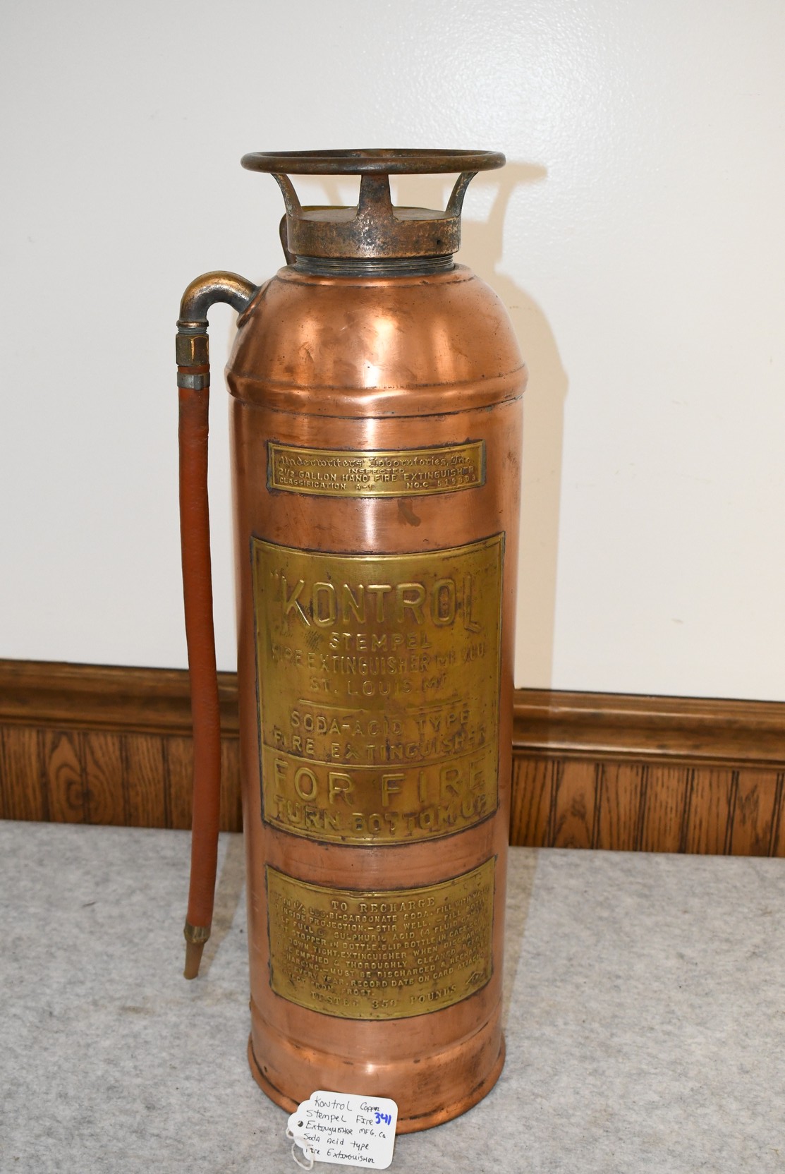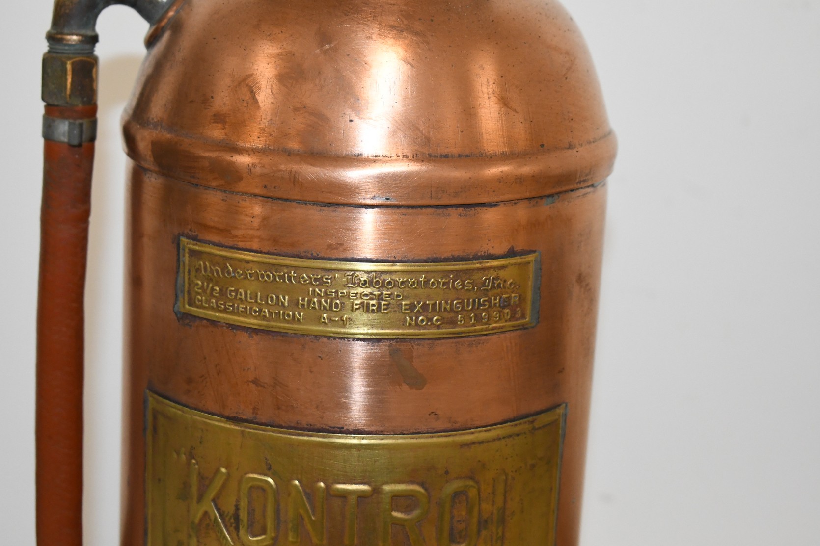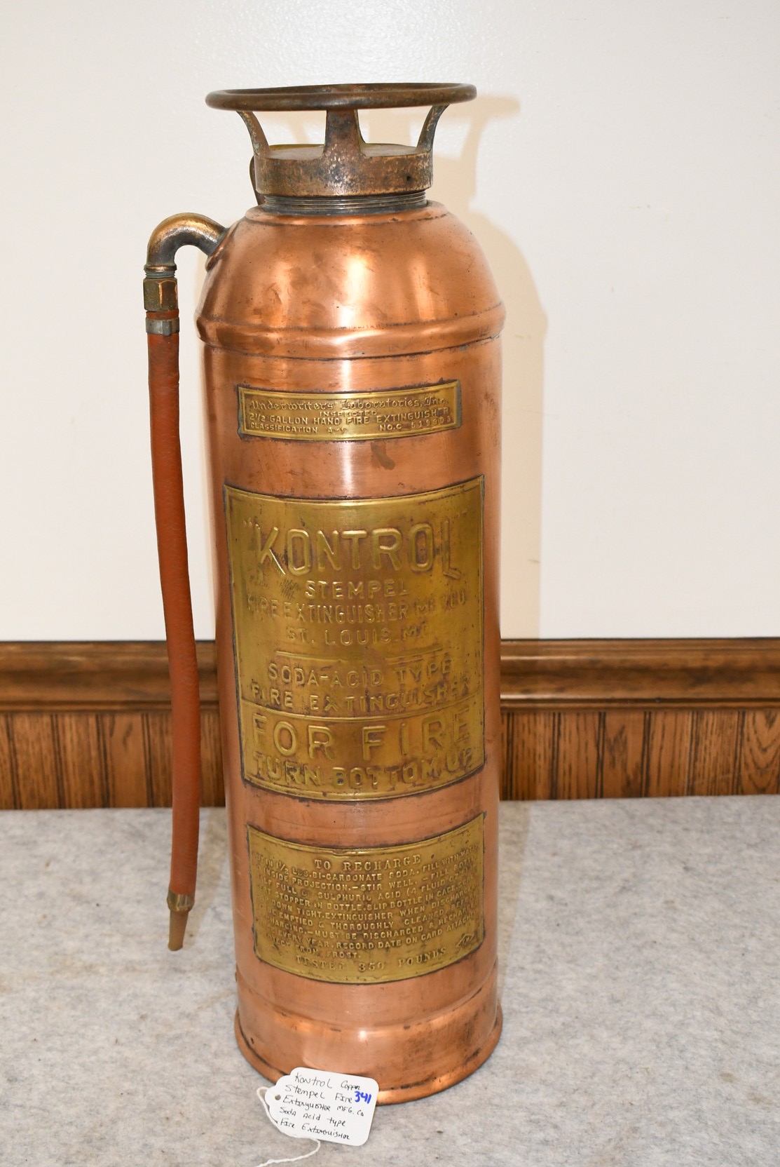 341.   Kontrol Stempel Fire Extinguisher Manufacturing Co. Copper Soda Acid Type Fire Extinguisher