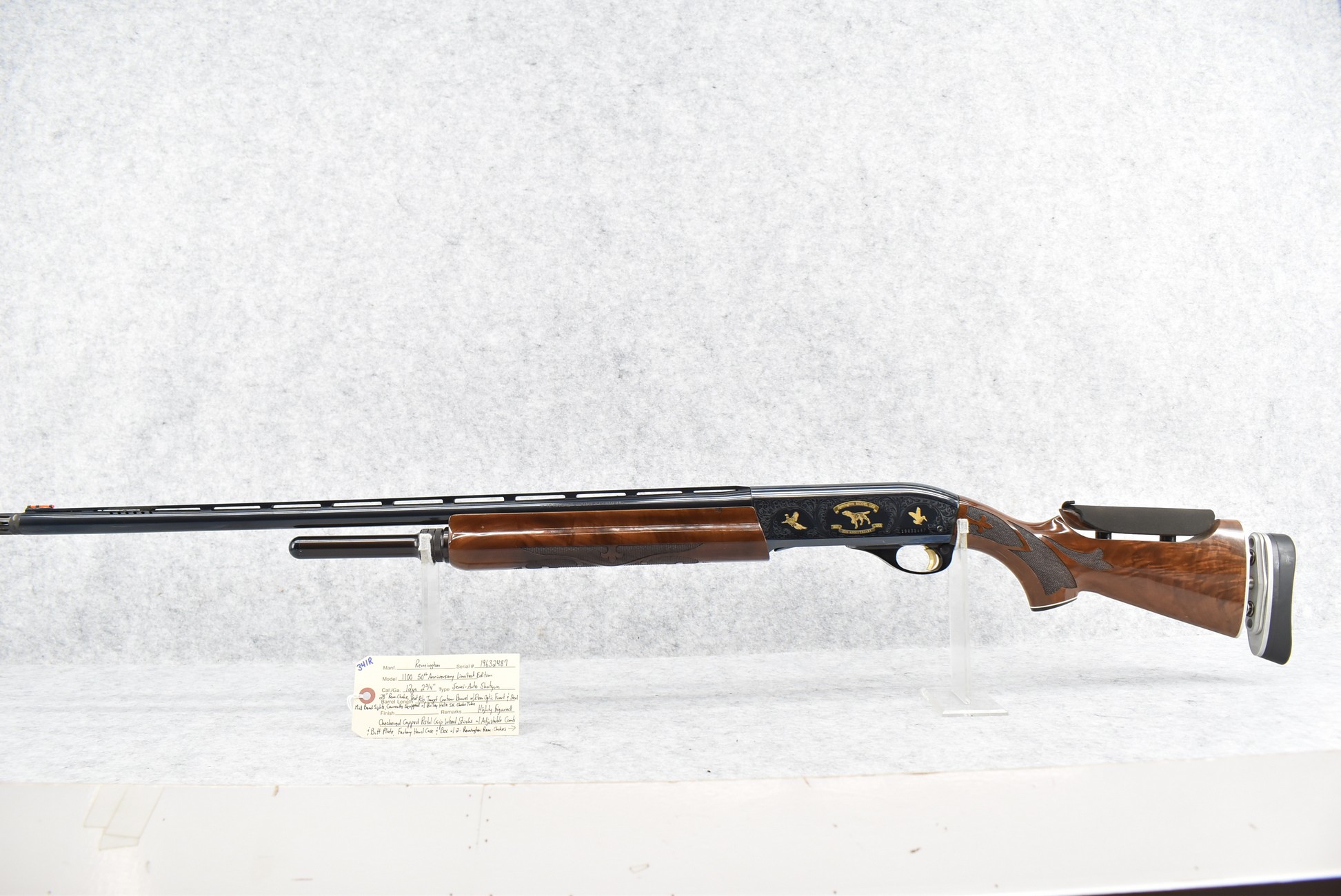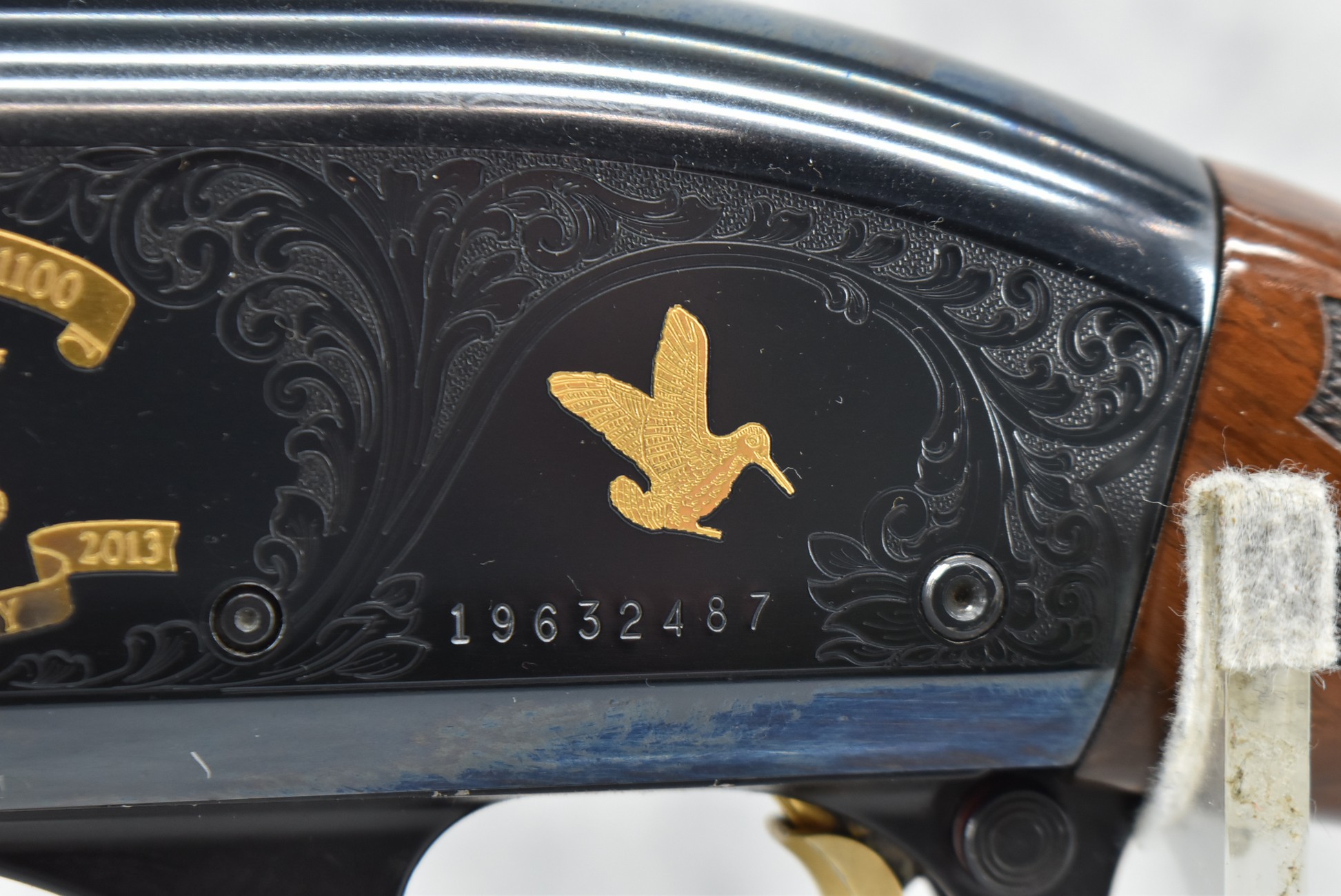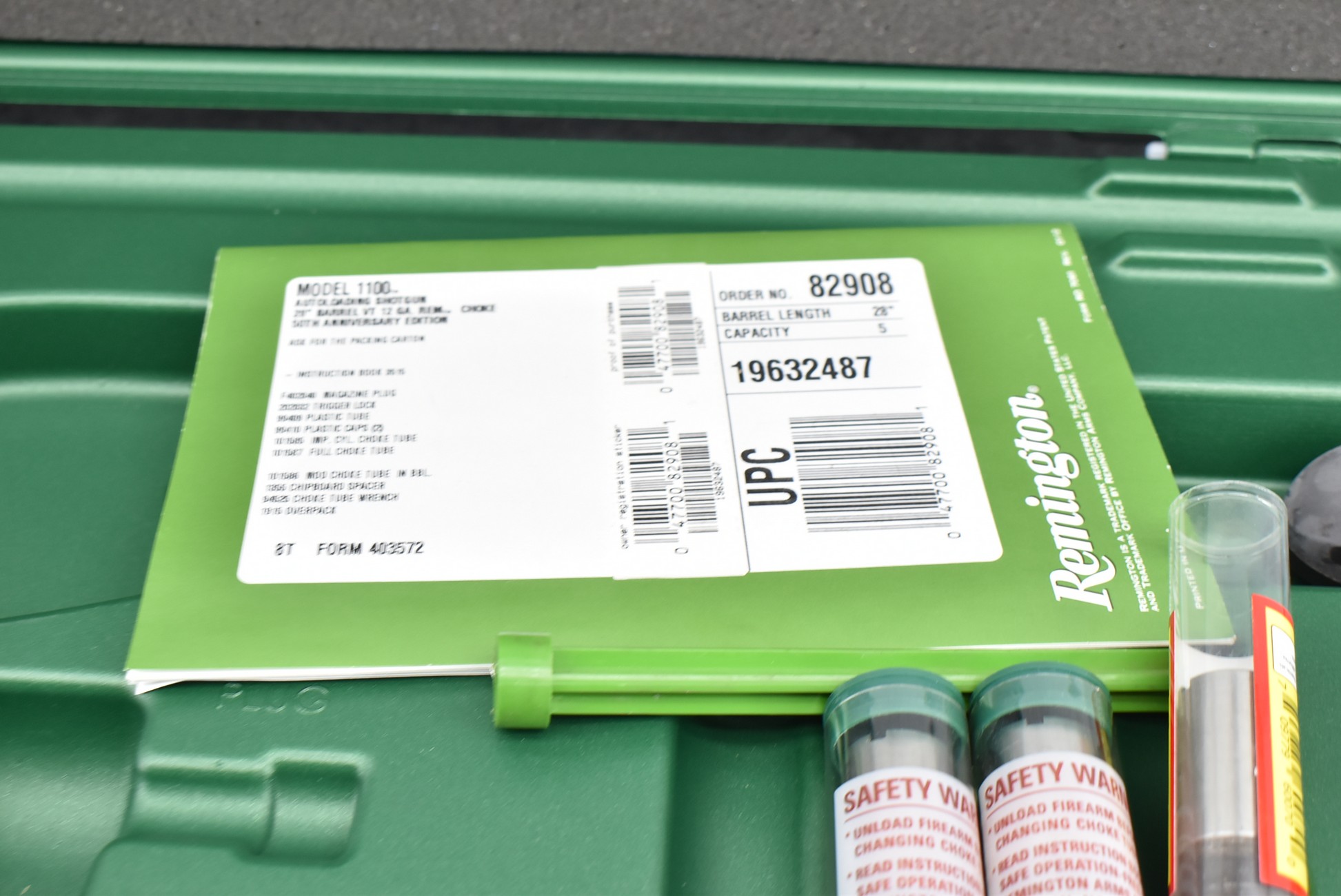 341R. Remington – Mod. 1100 – 50th Anniversary Limited Edition – 12ga. 2 ¾” Semi-Auto Shotgun – w/28” Rem. Choke, Vent-Rib, Target Contour Barrel w/Fiber Optic Front & Steel Mid Bead Sights, Currently Equipped w/Briley Helix SK Choke Tube – Highly Figured w/Checkered Capped Pistol Grip Wood Stocks w/Adj. Comb & Butt Pad – w/Factory Hard Case, Sleeve Box, 2 Remington Rem-Chokes (Full & Mod.) & Manual – Limited Mfg. 2013 Only!