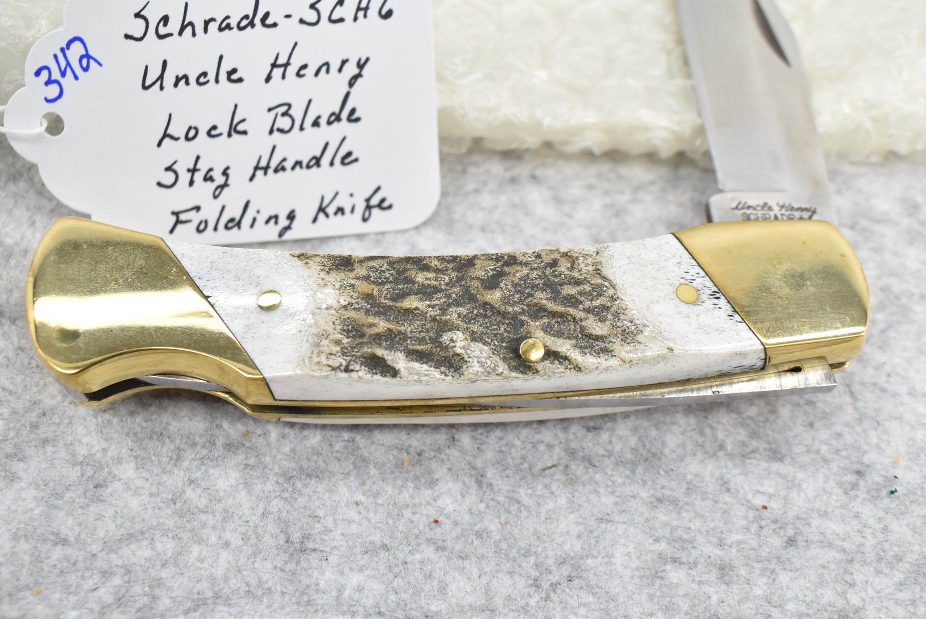342. Schrade – #SCH6 Uncle Henry Lock Blade Stag Handle Folding Knife