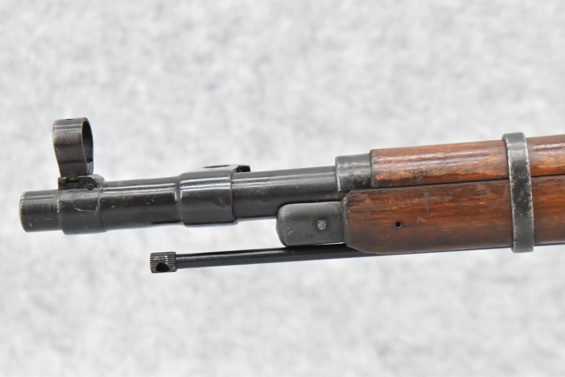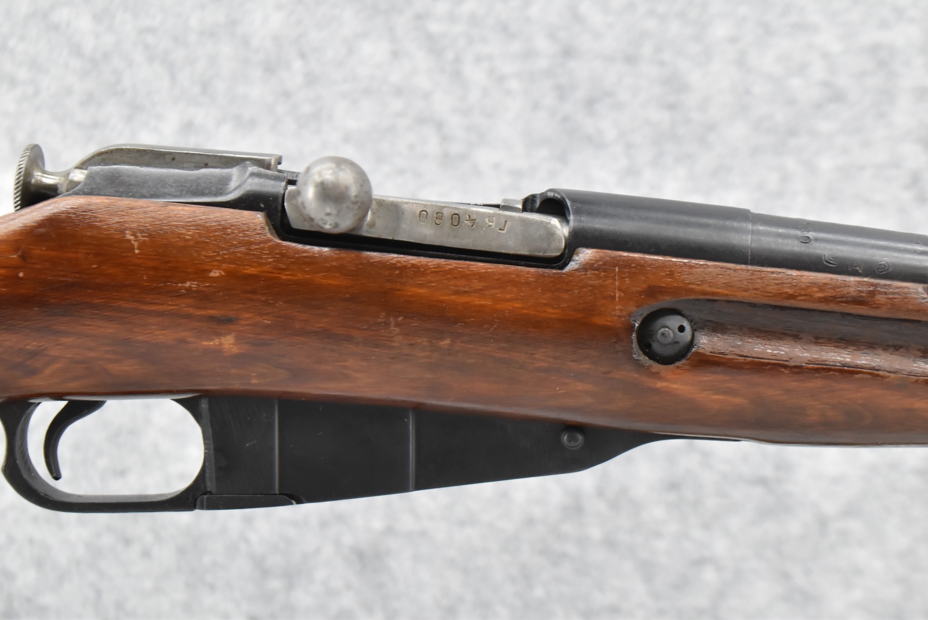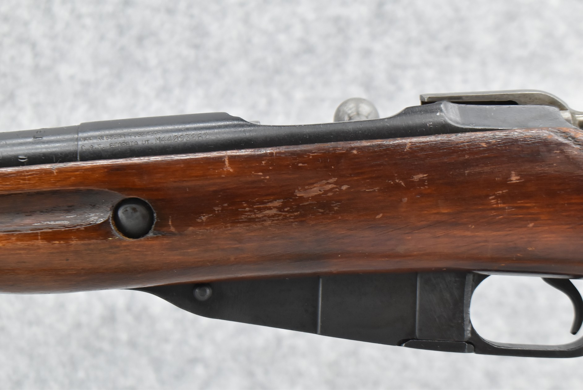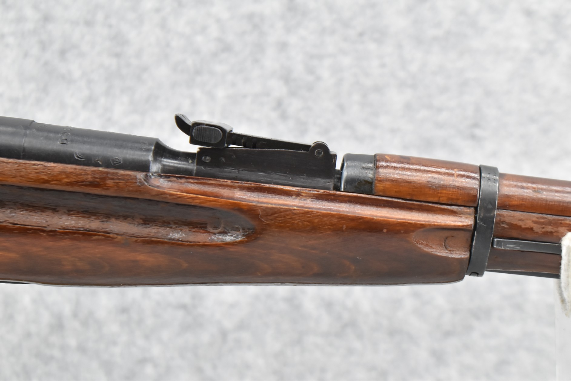 342R. Russian – Mod. 44 Carbine – 7.62x54R Cal. Bolt Action Rifle – w/20” Barrel w/Hooded Front & Adj. Rear Ladder Sights – Blued Finish – w/Straight Grip Full Wood Stock w/Metal Butt Plate – w/Cleaning Rod – w/Sling – Missing Bayonet – Import Marked
