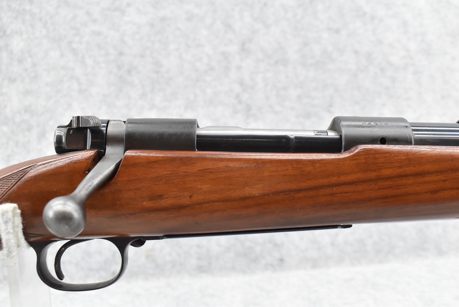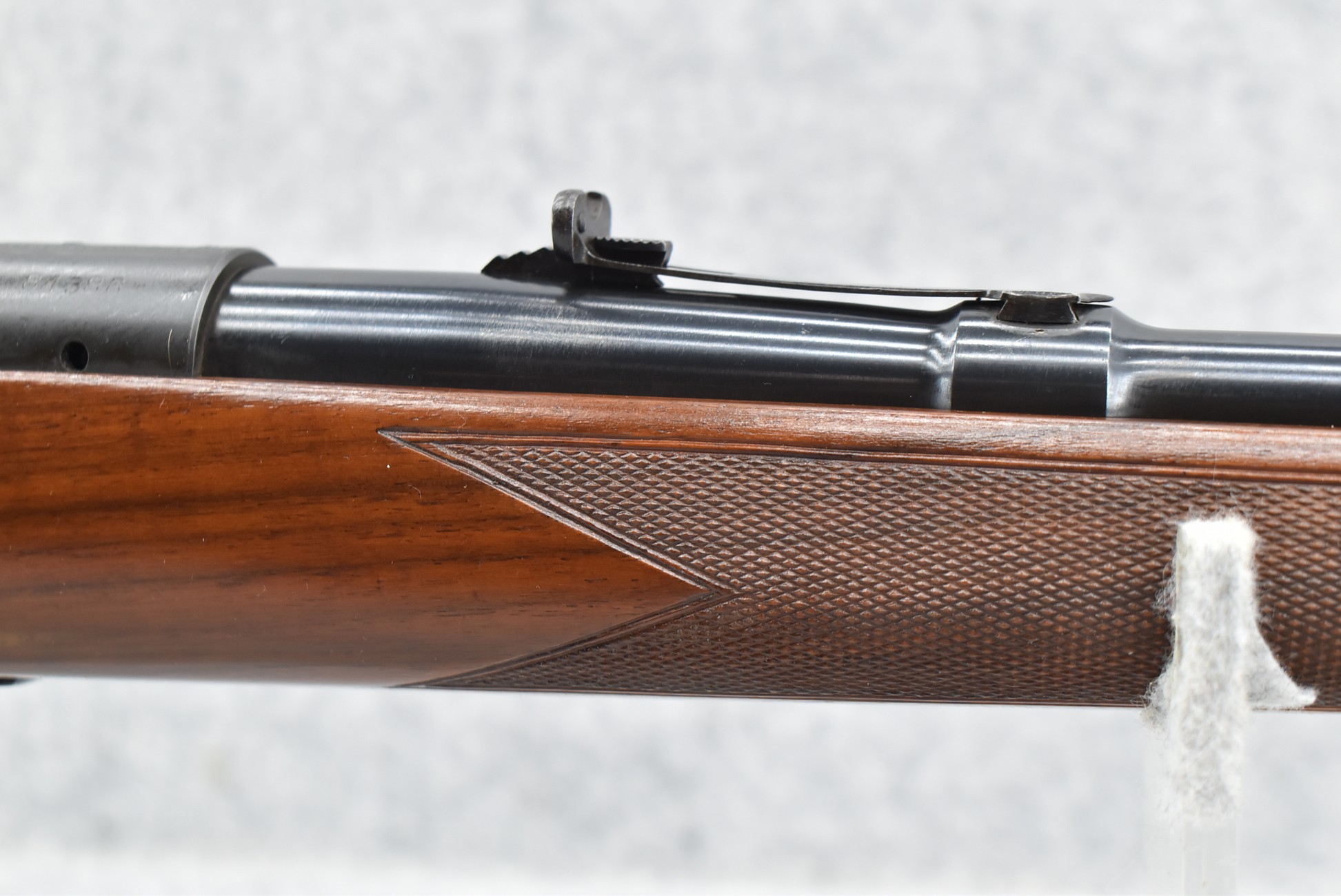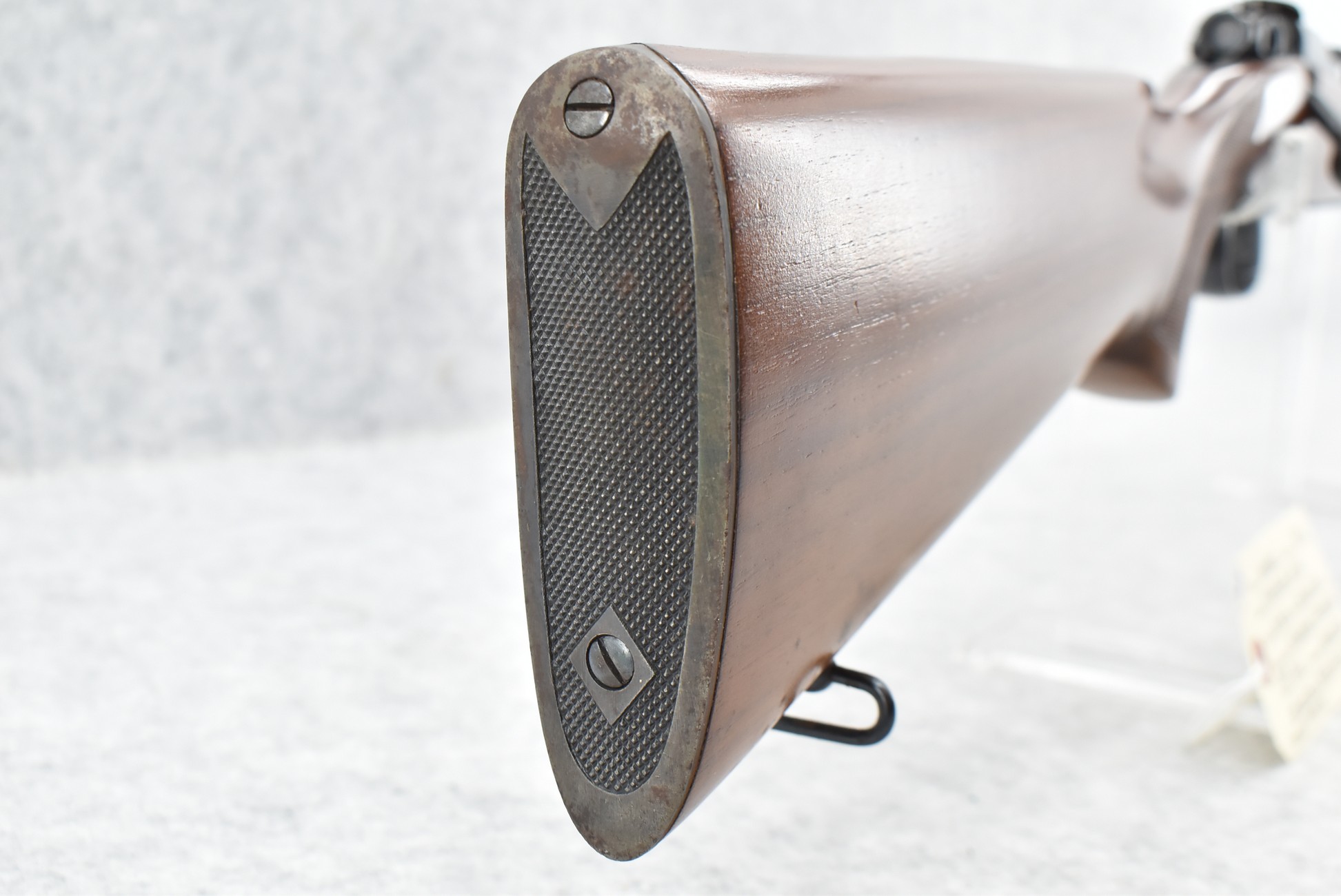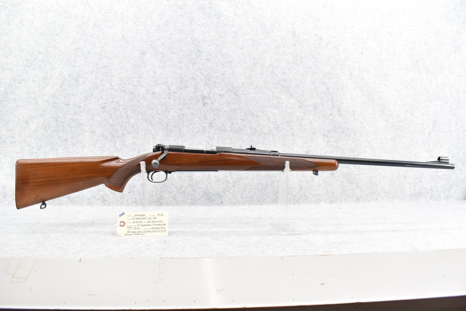 342R. Winchester – Mod. 70 Transitional – 30 Gov’t ’06 Cal. Bolt Action Rifle – w/24” Barrel w/Hooded Front and Buckhorn Rear Sights – Blued Finish – w/Checkered Pistol Grip Wood Stock w/Factory Metal Butt Plate – Matching Numbered Bolt! – Manufactured 1948
