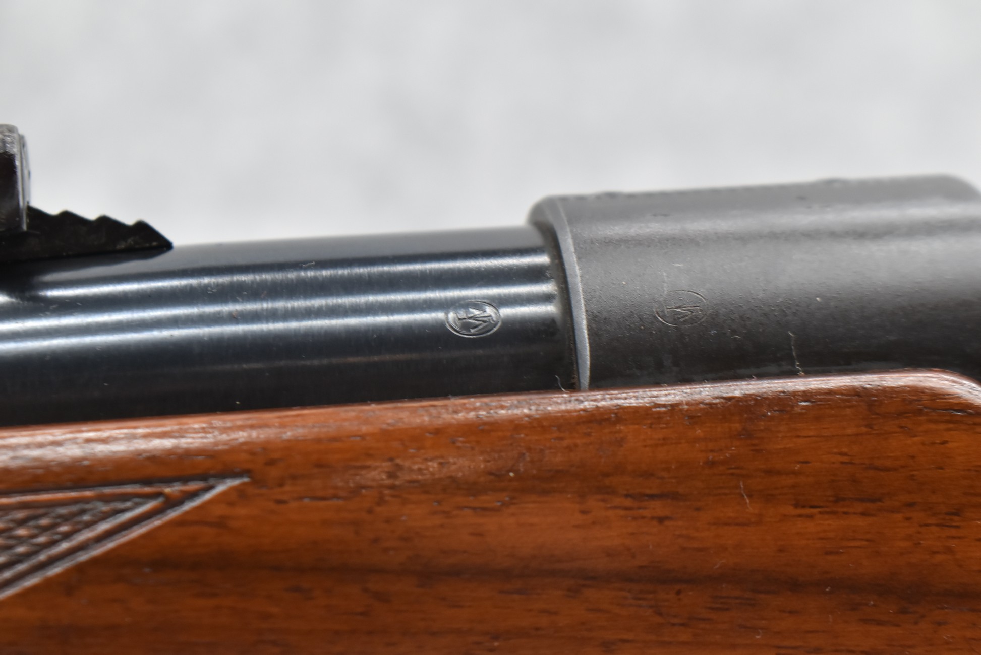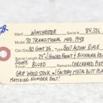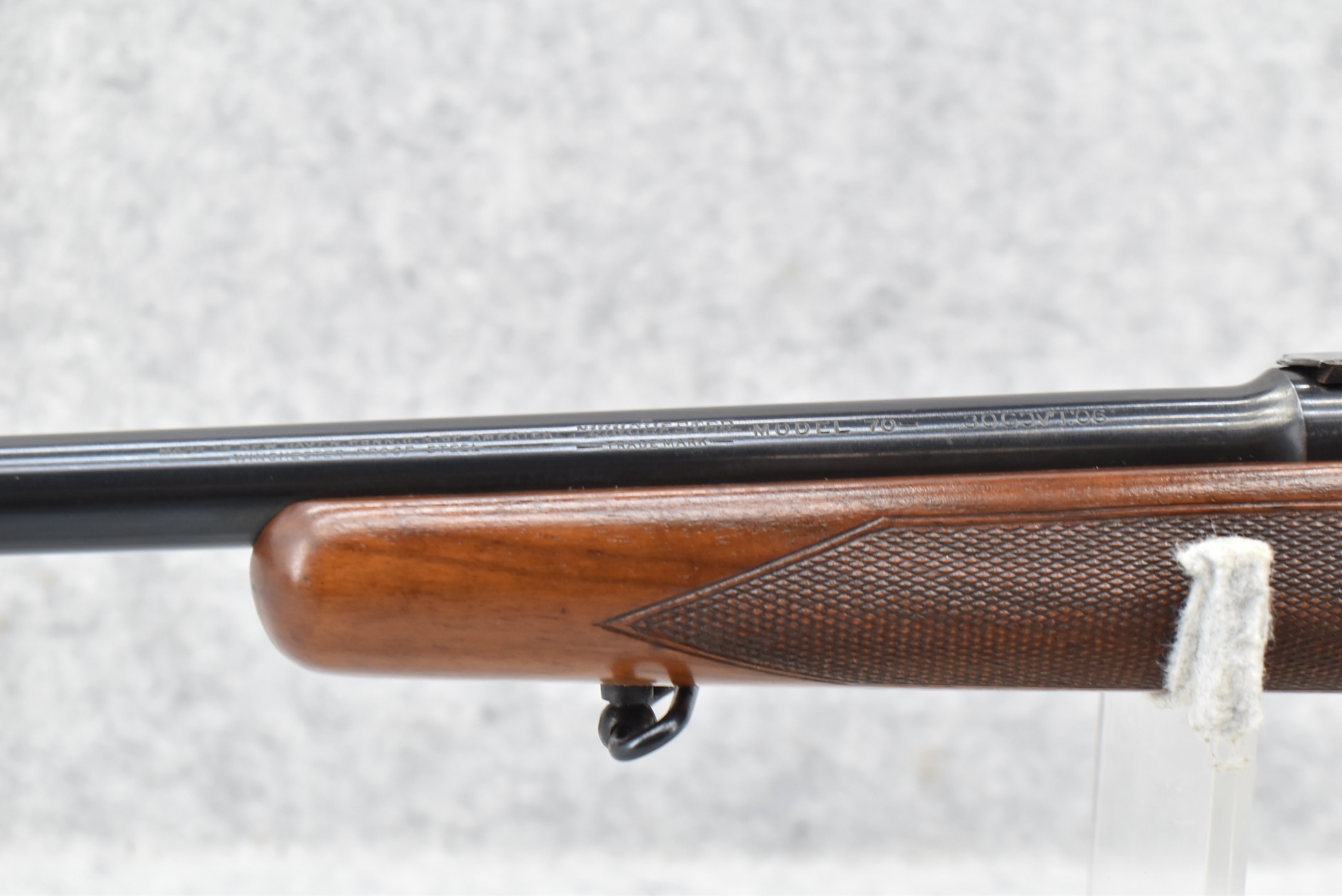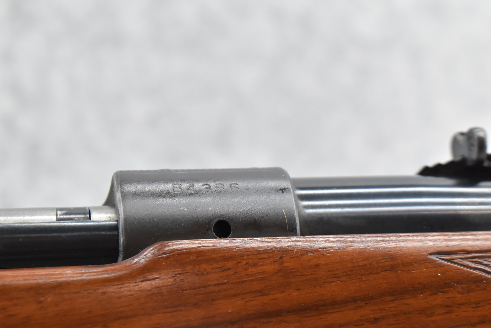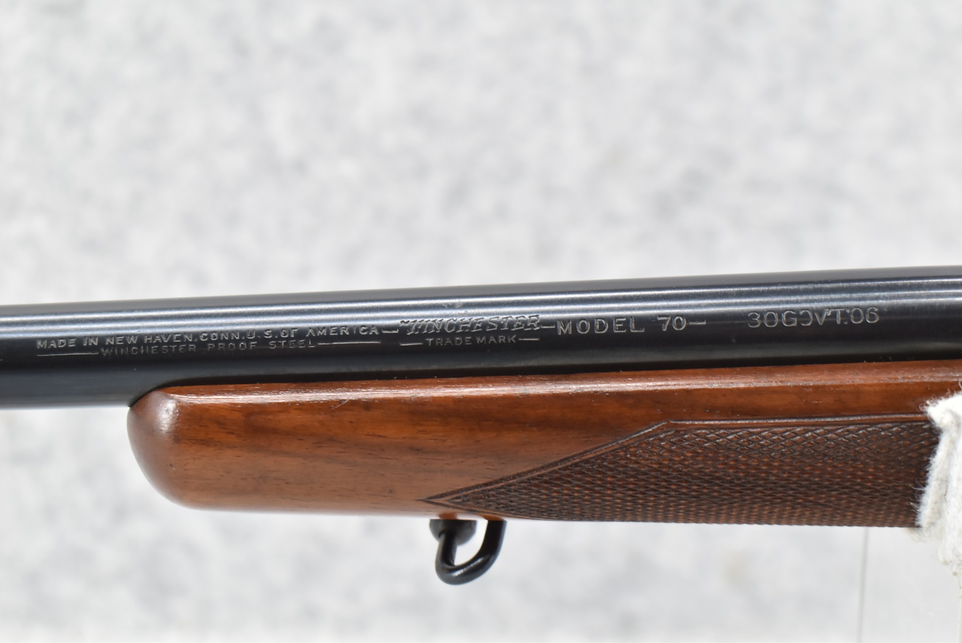 342R. Winchester – Mod. 70 Transitional – 30 Gov’t ’06 Cal. Bolt Action Rifle – w/24” Barrel w/Hooded Front and Buckhorn Rear Sights – Blued Finish – w/Checkered Pistol Grip Wood Stock w/Factory Metal Butt Plate – Matching Numbered Bolt! – Manufactured 1948