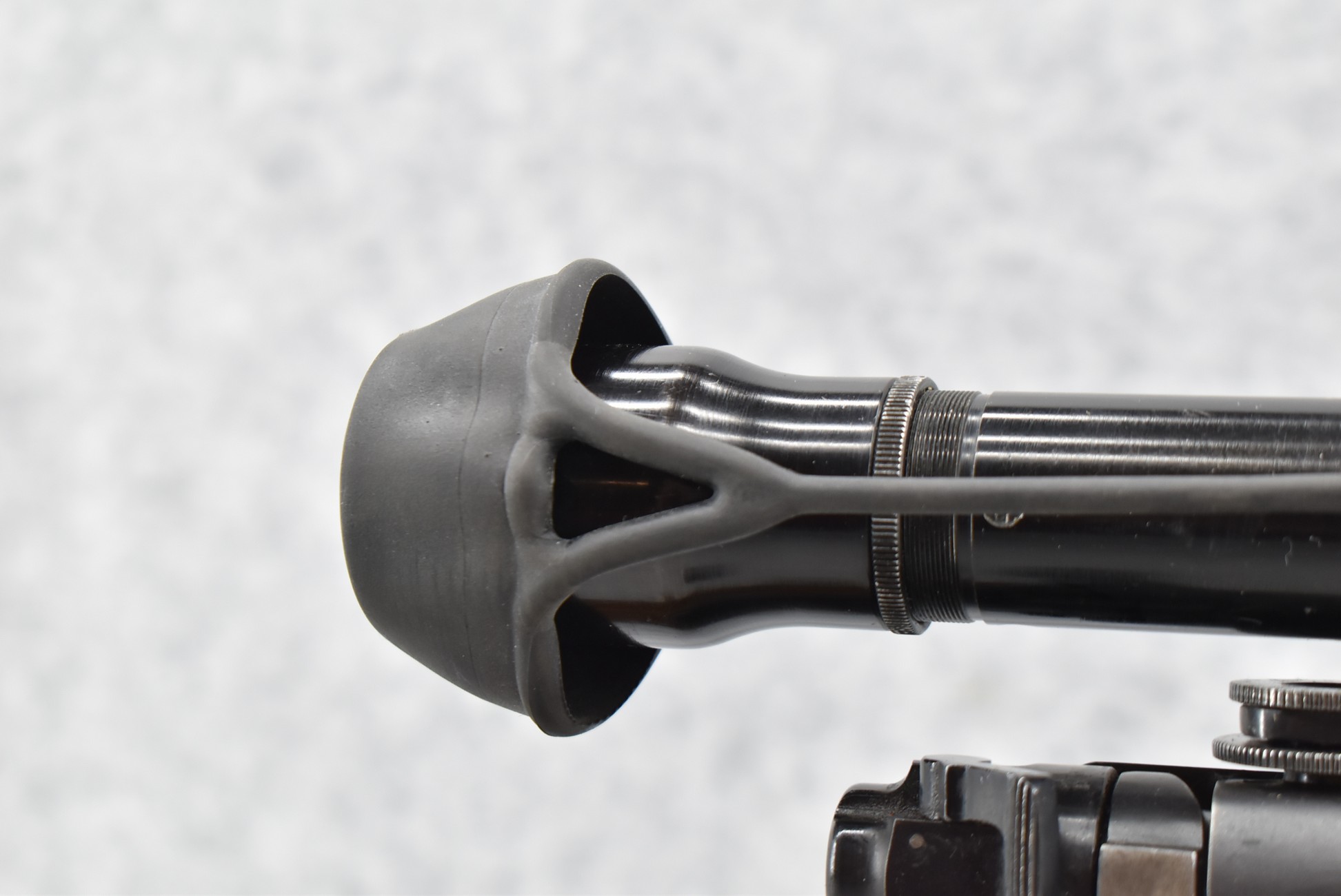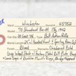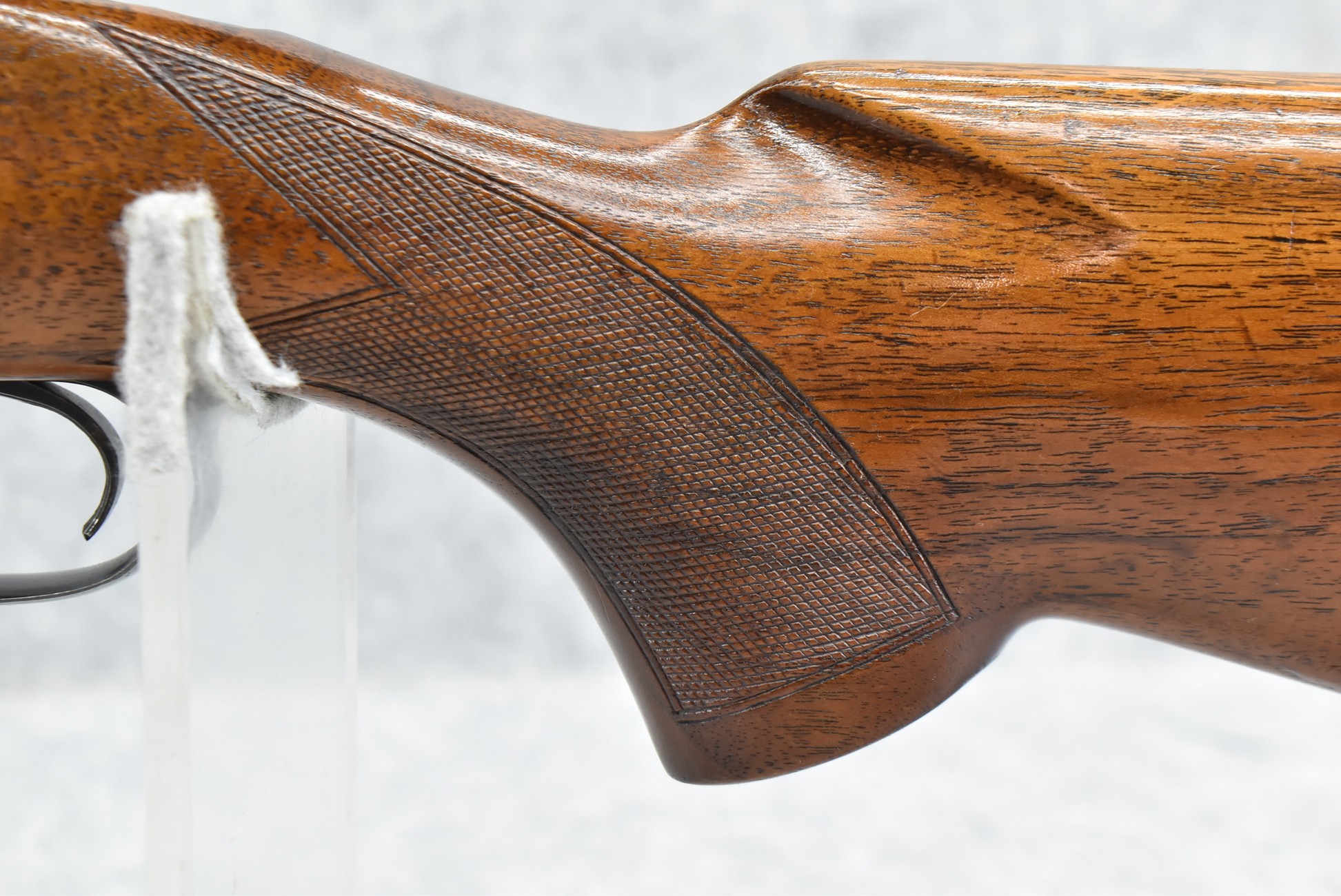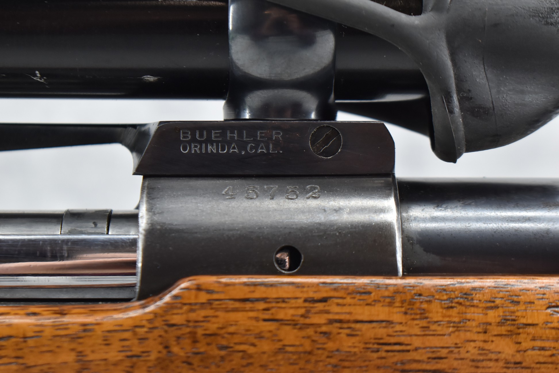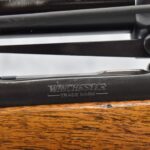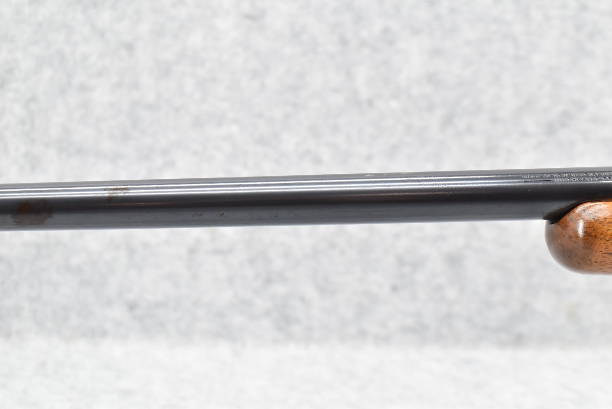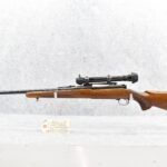 343R. Winchester – Mod. 70 Standard “Pre-64” – 30 Gov’t ’06 Cal. Bolt Action Rifle – w/24” Barrel w/Hooded Front and Sporting Rear Sights – Blued Finish – w/Checkered Pistol Grip Wood Stock w/Factory Metal Butt Plate – w/Bausch and Lomb Scope w/Buehler Mount and Rings – Bridge Tapped – Manufactured 1942