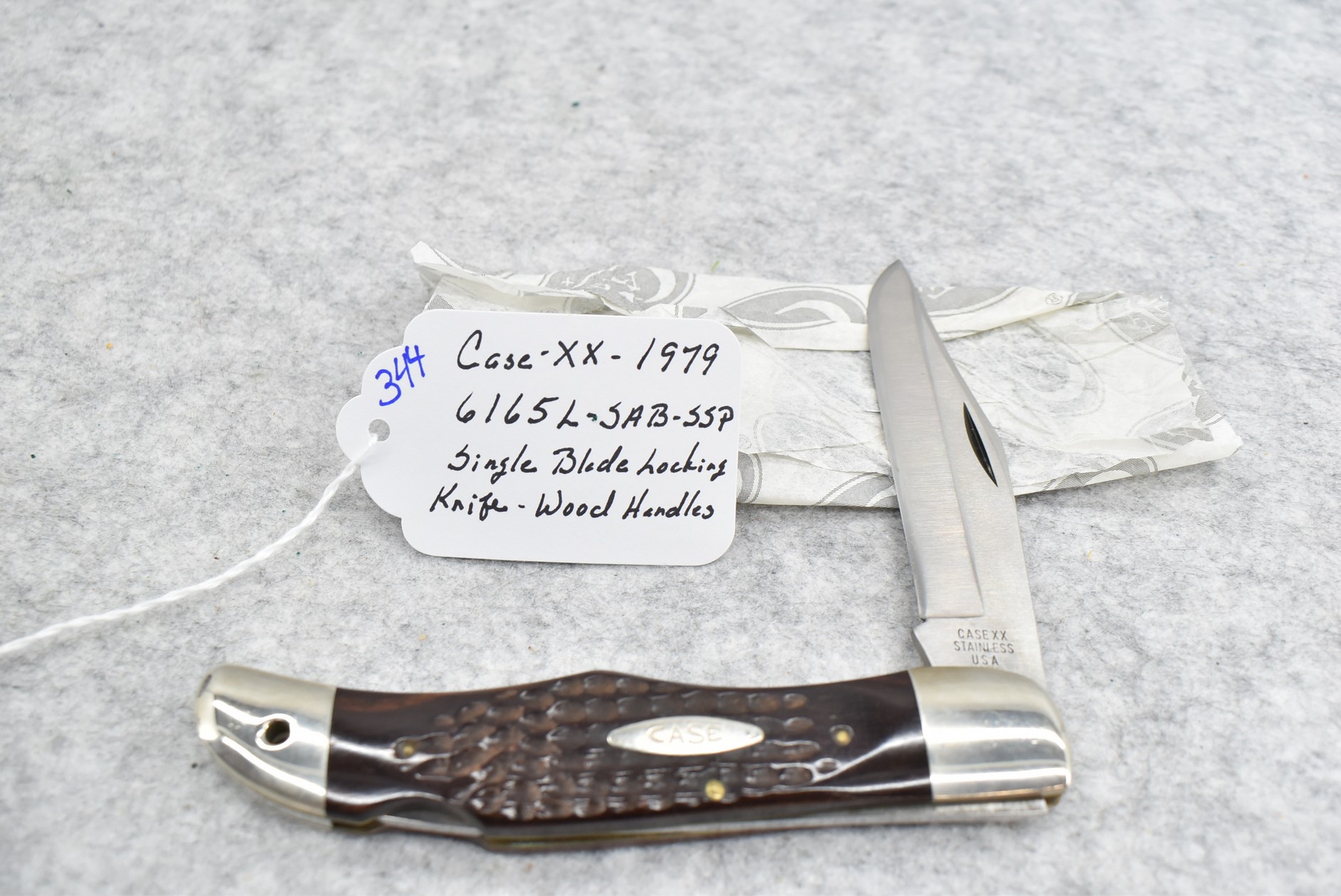344. Case XX – 1979 #6165L-SAB-SSP Single Blade Locking Wood Handle Knife