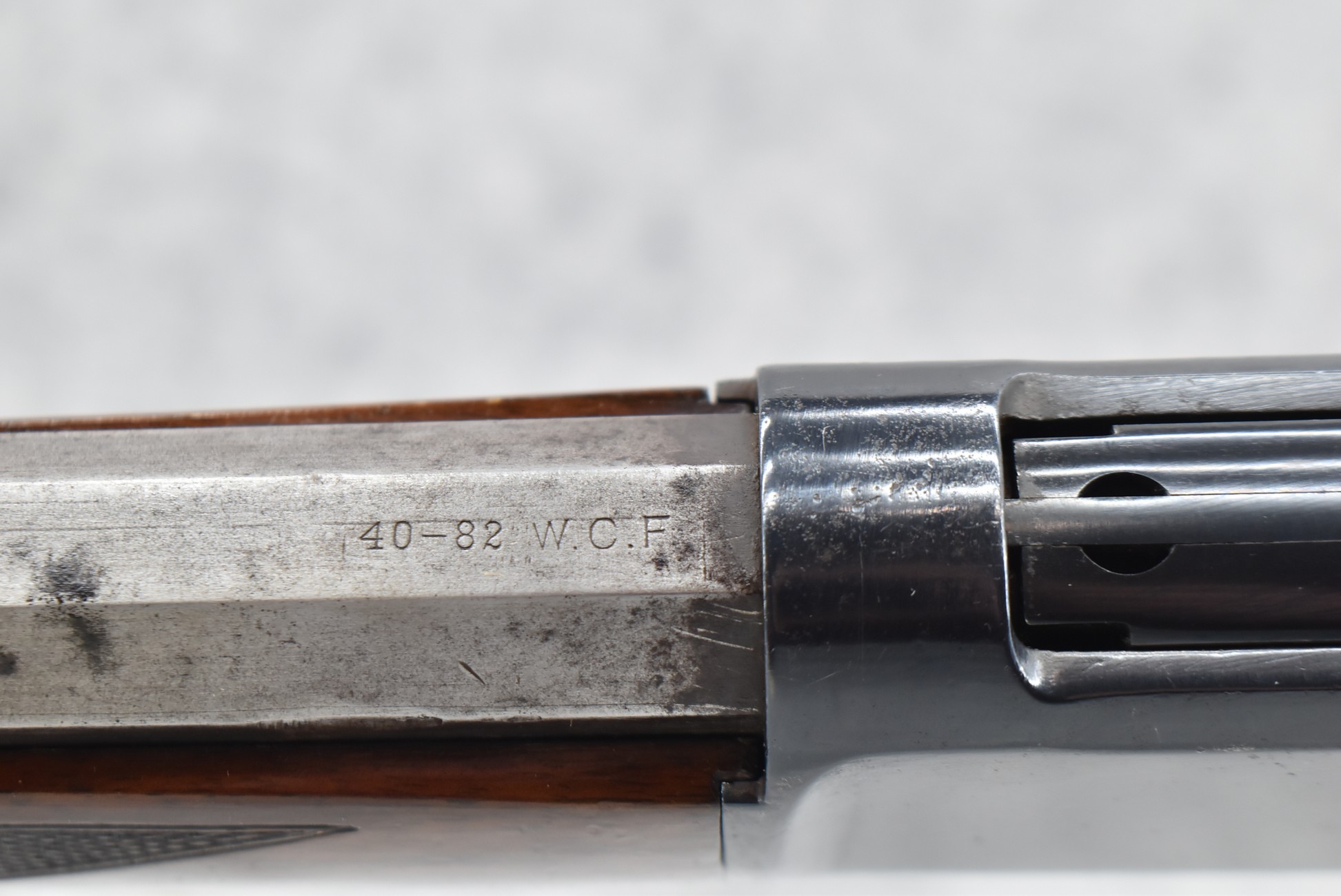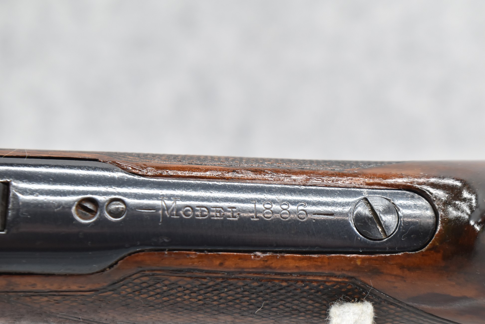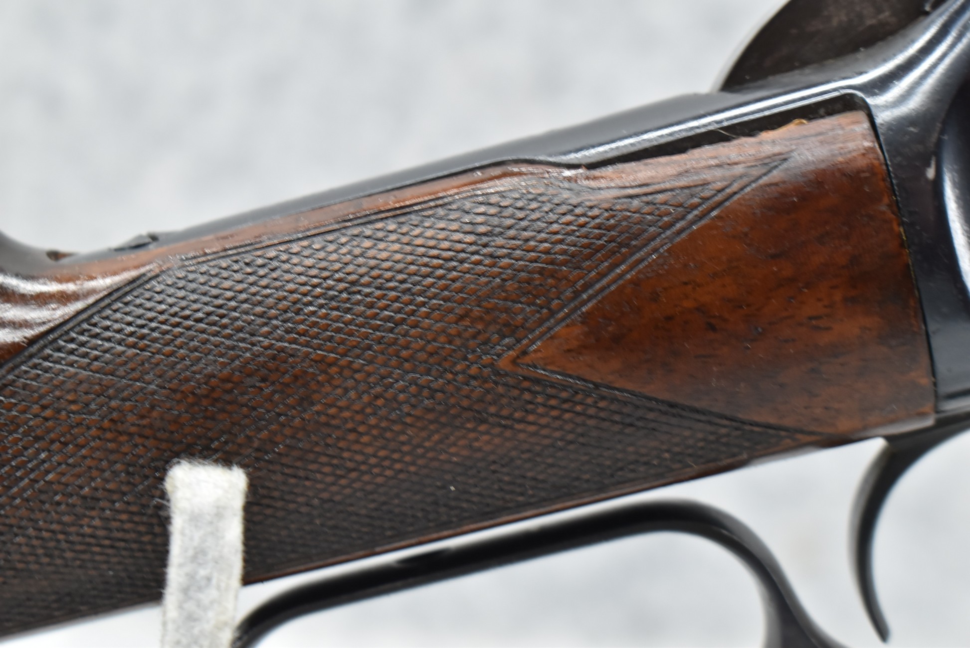 344. Winchester – Mod. 1886 Deluxe – 40-82 WCF Cal. Lever Action Rifle – w/24” Octagon to Round Barrel w/Round Blade Front and Rear Buckhorn Sights – Re-Blued and Grey Finish – w/Deluxe Checkered Straight Grip Wood Stocks w/Crescent Metal Butt Plate – w/Factory Special Order ½ Magazine – Manufactured 1888