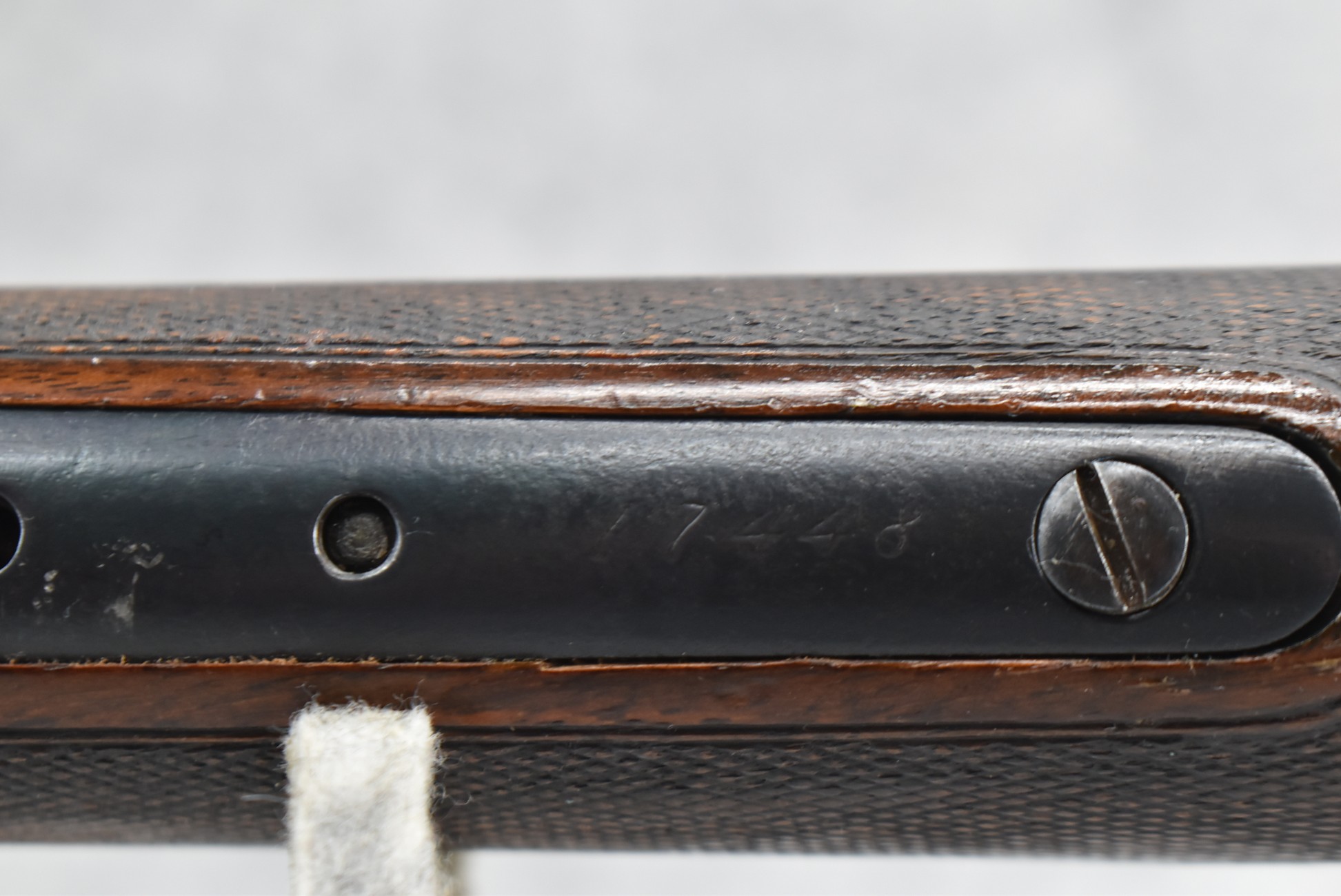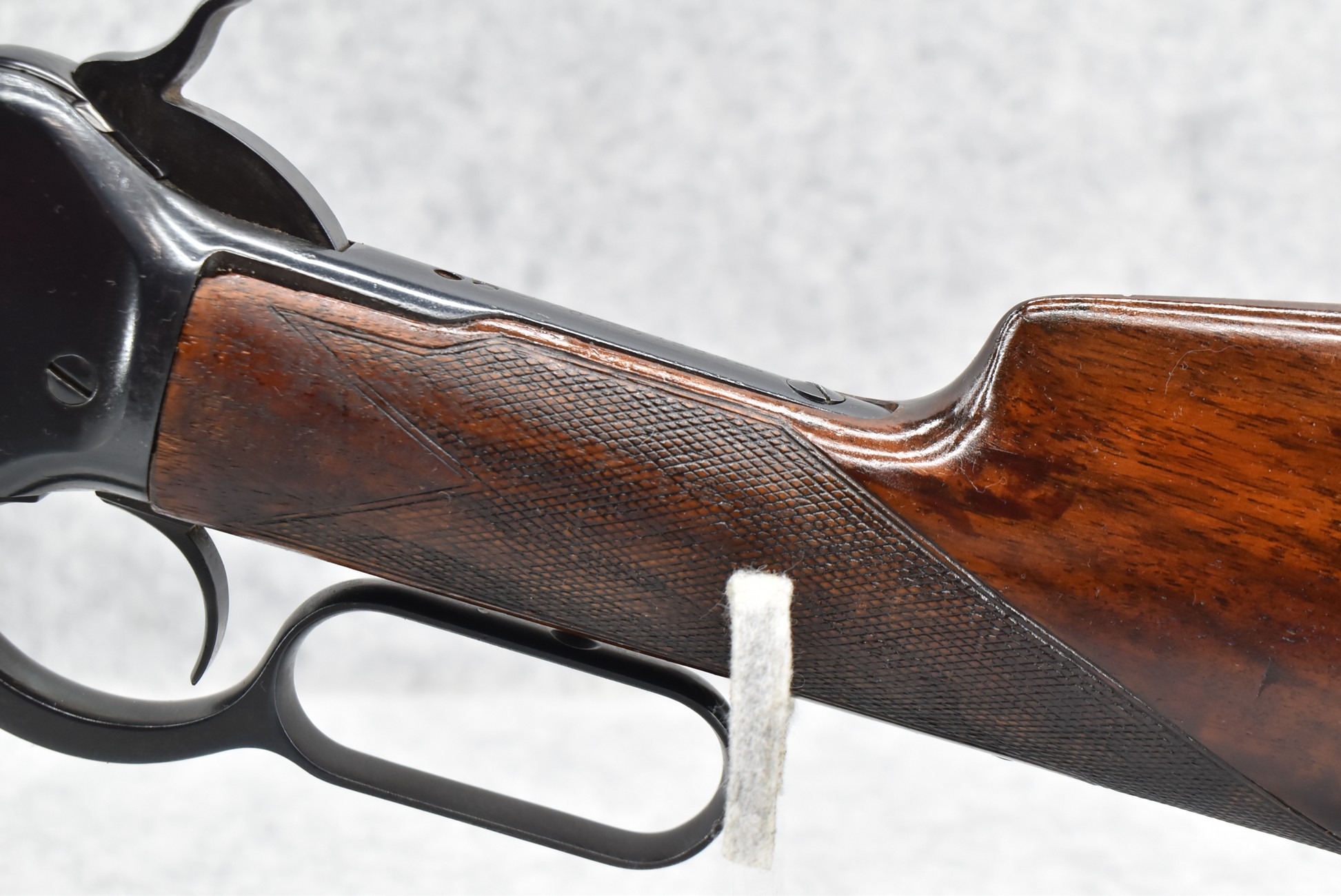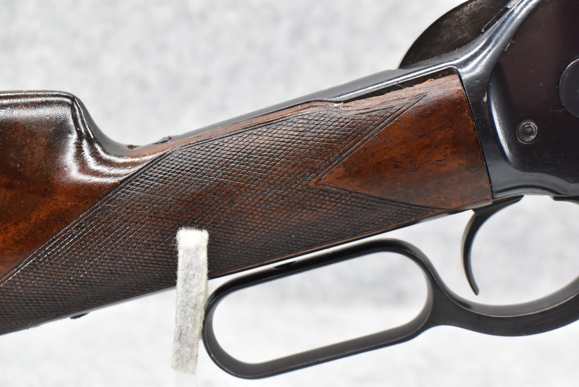 344. Winchester – Mod. 1886 Deluxe – 40-82 WCF Cal. Lever Action Rifle – w/24” Octagon to Round Barrel w/Round Blade Front and Rear Buckhorn Sights – Re-Blued and Grey Finish – w/Deluxe Checkered Straight Grip Wood Stocks w/Crescent Metal Butt Plate – w/Factory Special Order ½ Magazine – Manufactured 1888