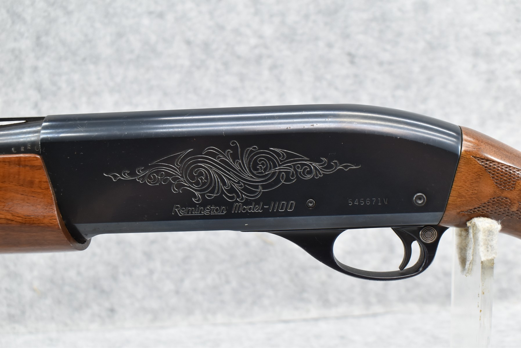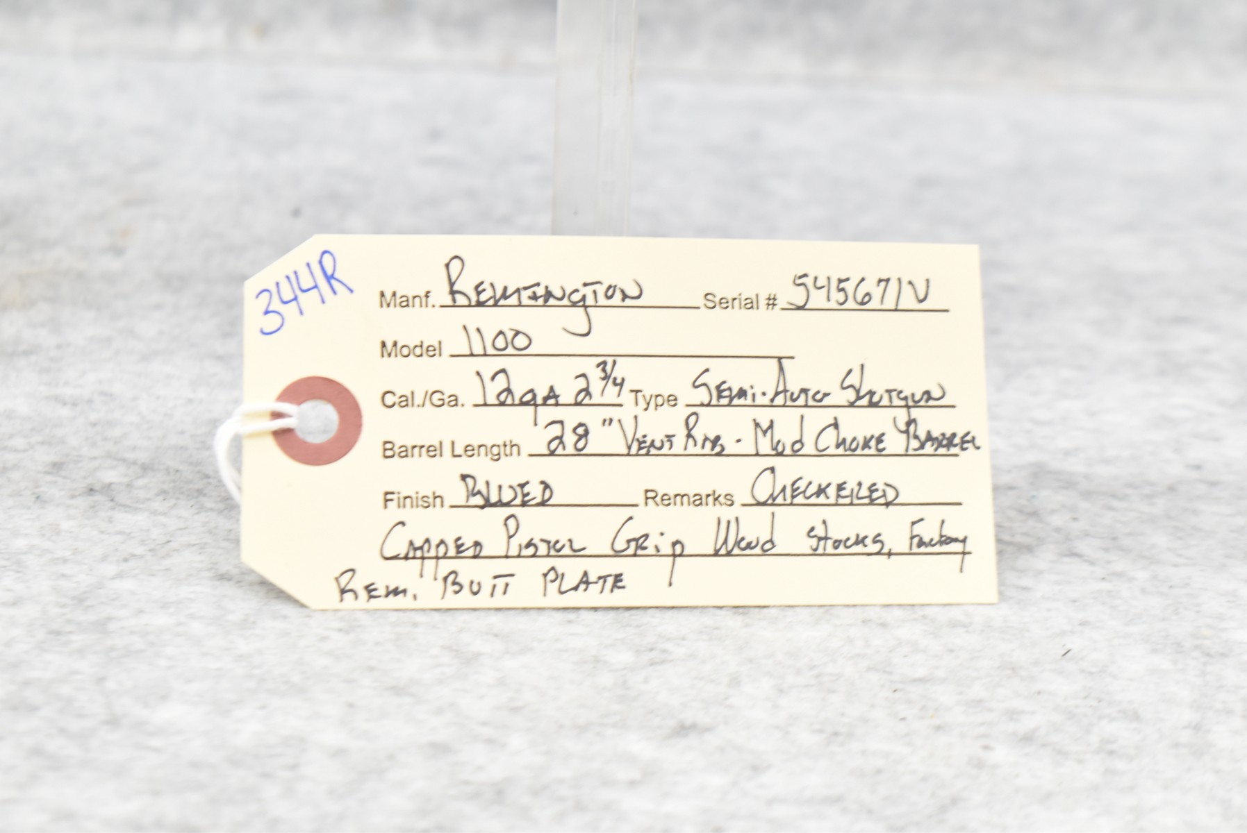 344R. Remington – Mod. 1100 – 12ga. 2 ¾” Semi-Auto Shotgun – w/28” Mod. Choked, Vent-Rib Barrel – Blued Finish – w/Checked Capped Pistol Grip Wood Stocks w/Factory Butt Plate