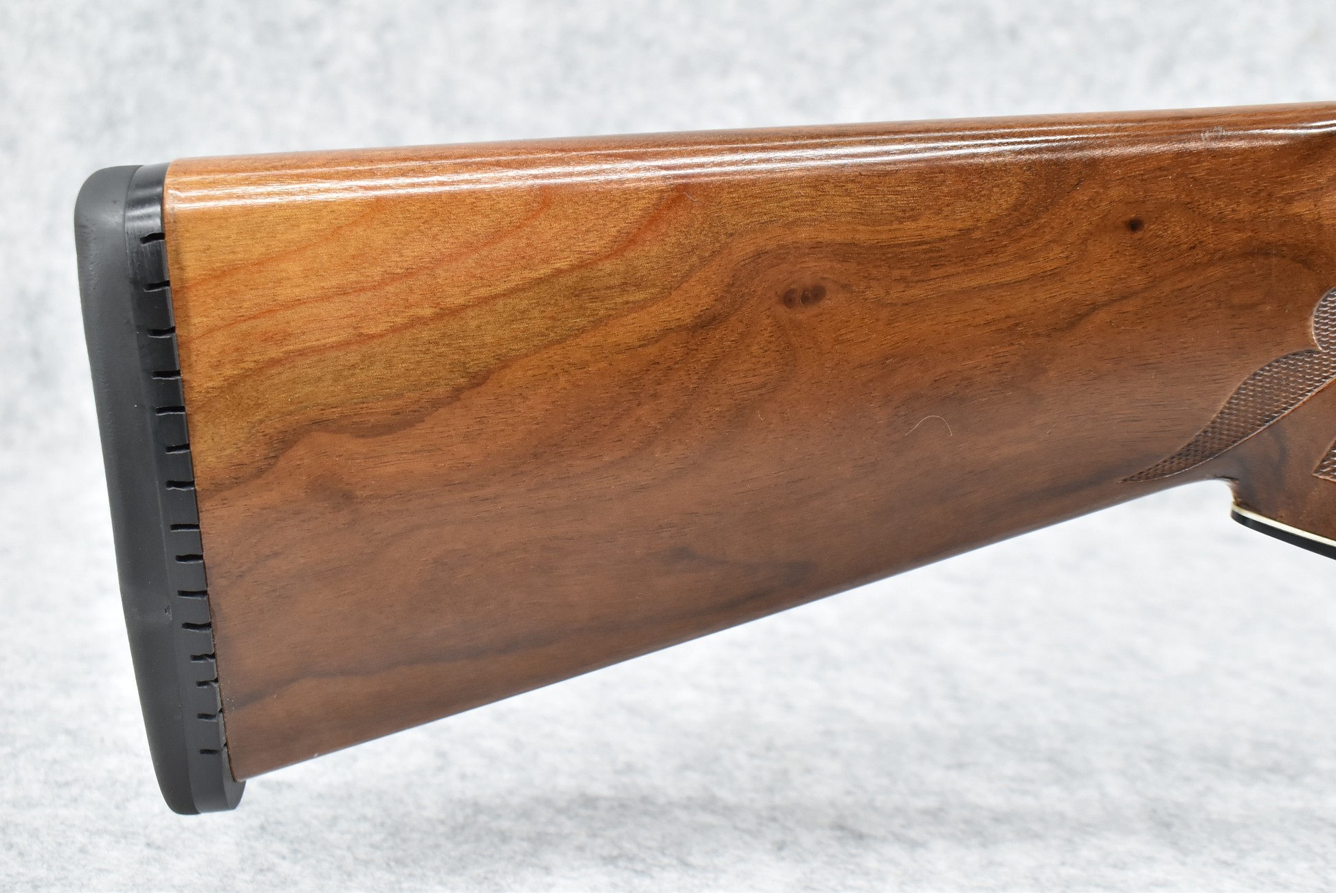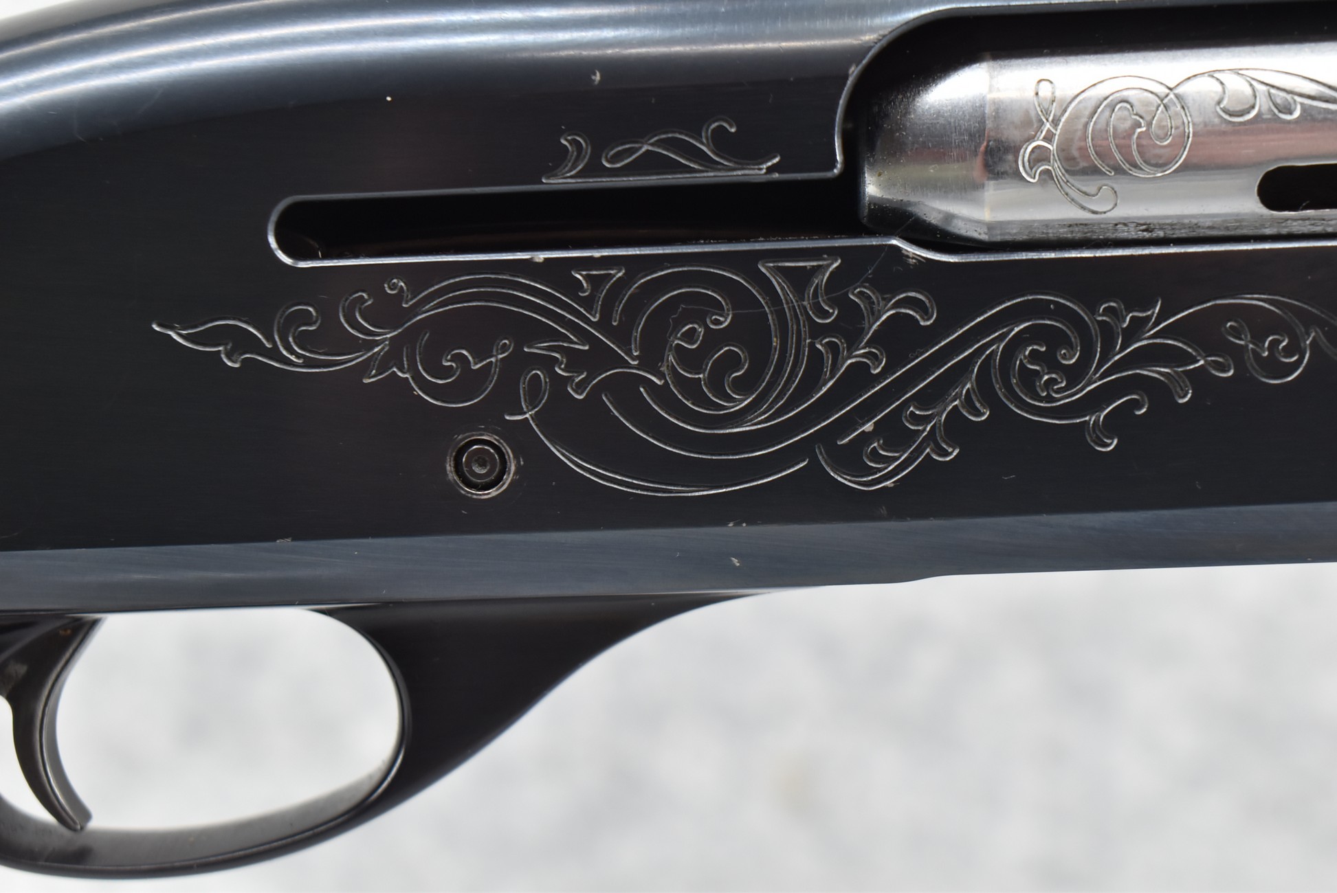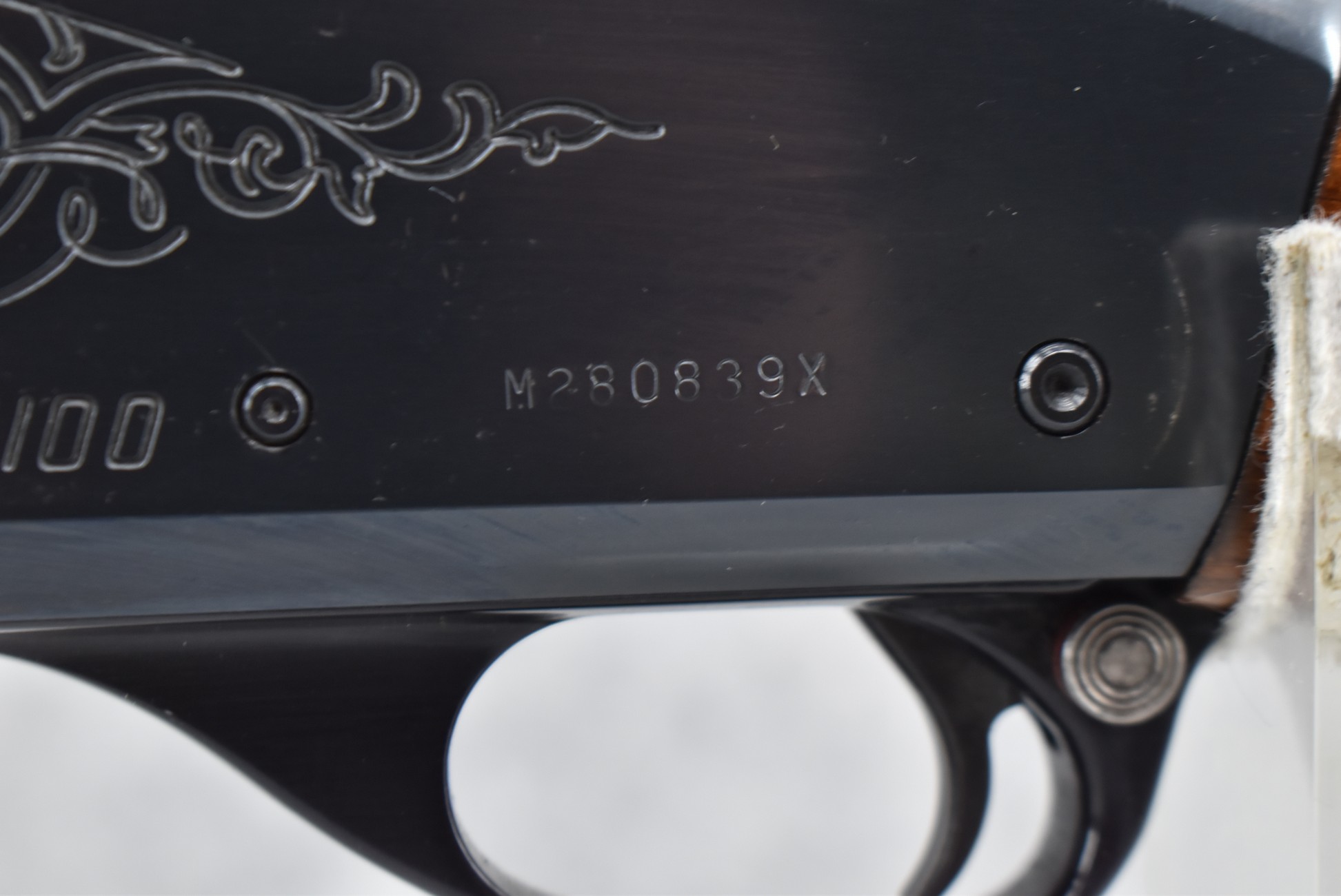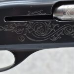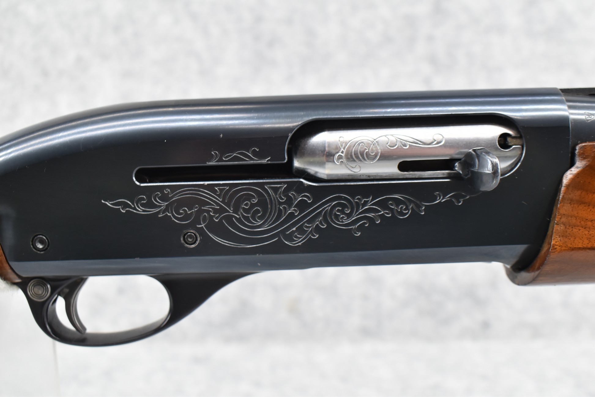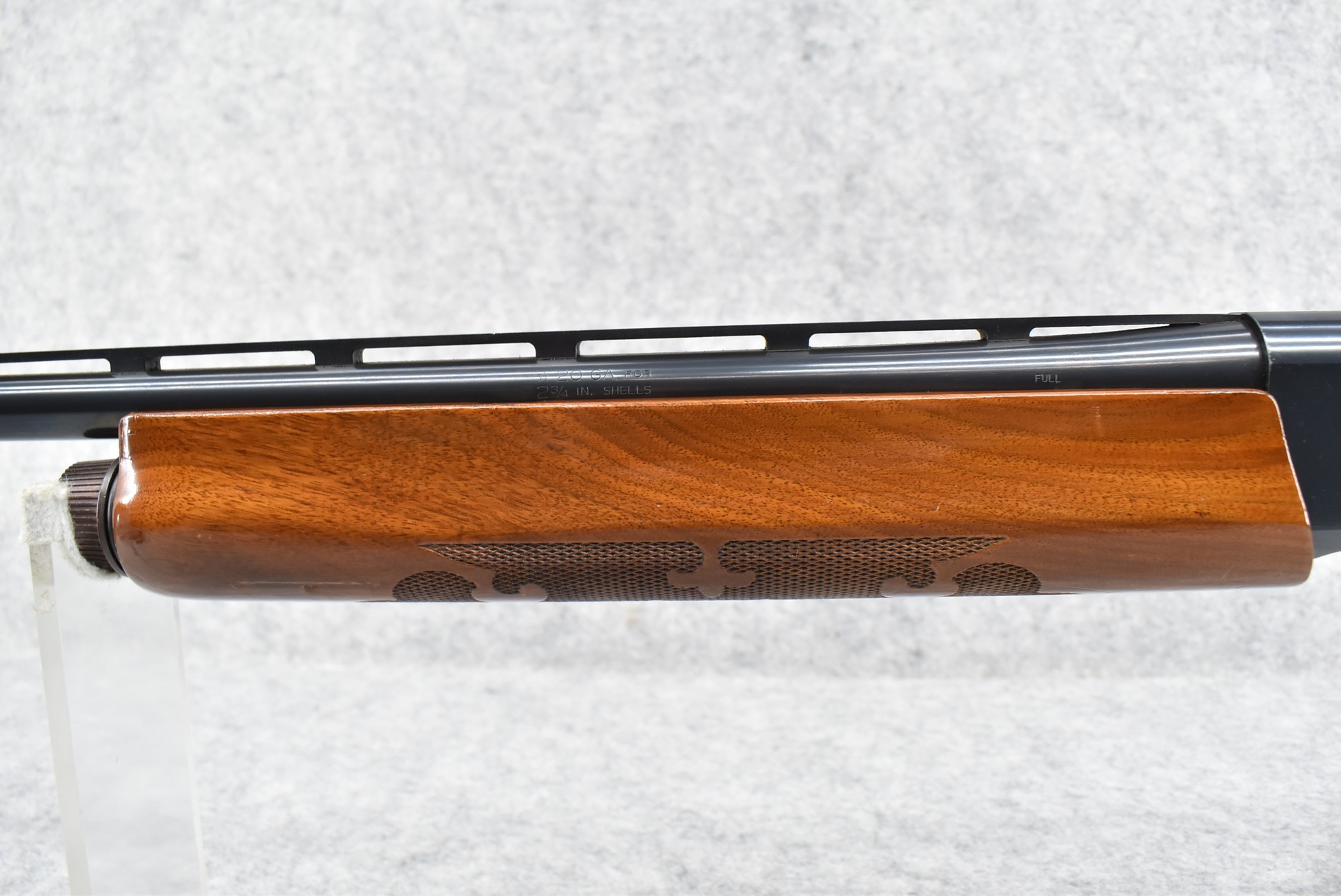 344R. Remington – Mod. 1100 – 20ga. Semi-Auto Shotgun – w/28” Rem. Choked, Vent-Rib Barrel w/Double Bead Sights – Blued Finish – w/Enhanced Receiver on Both Sides – w/Deluxe Checkered Capped Pistol Grip Wood Stocks w/Kick EEZ Butt Pad – Barrel Originally Fixed Full Choke but Now Rem. Choked – w/Factory Manual