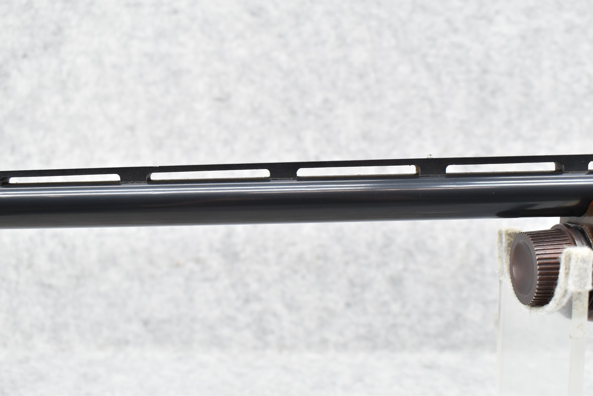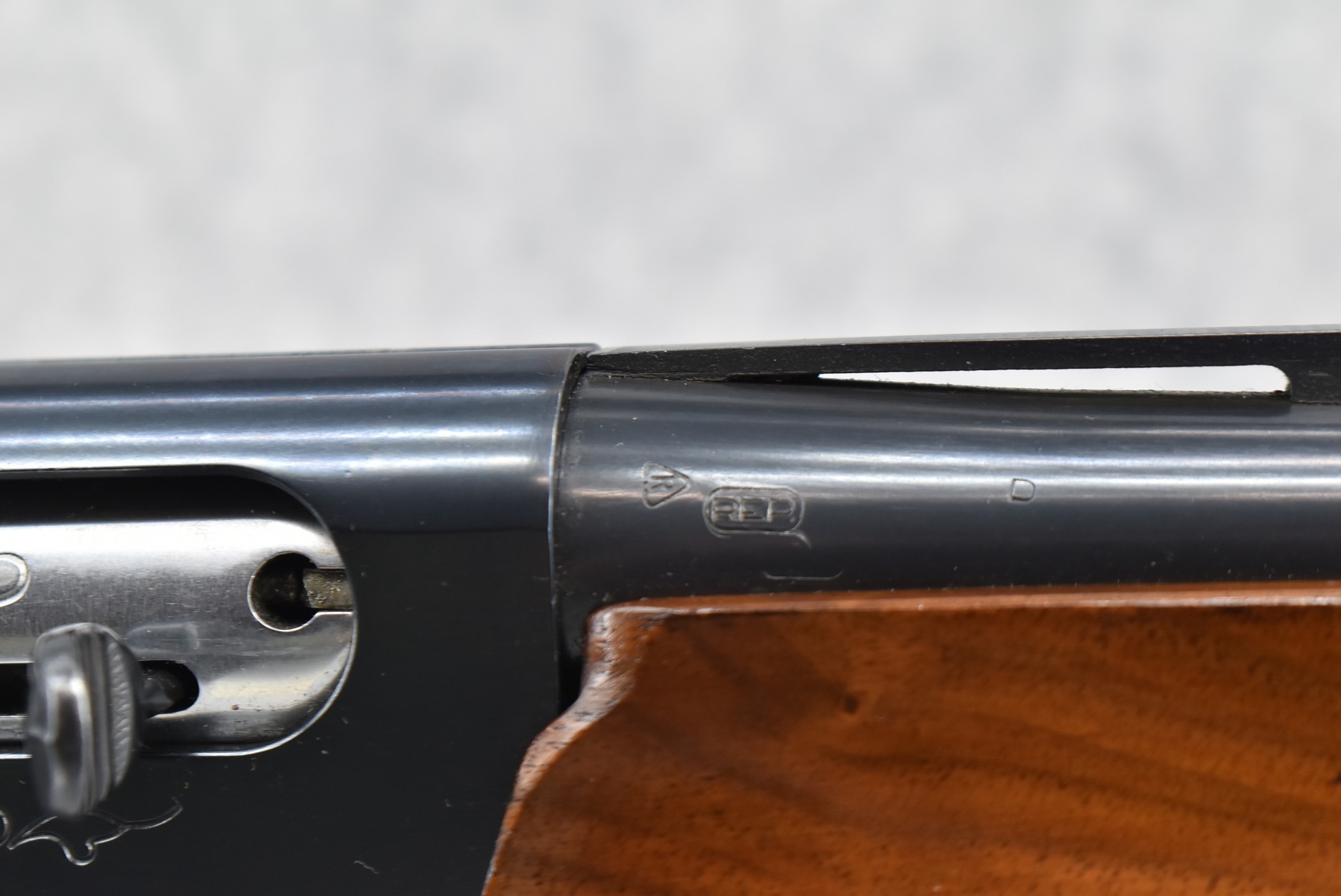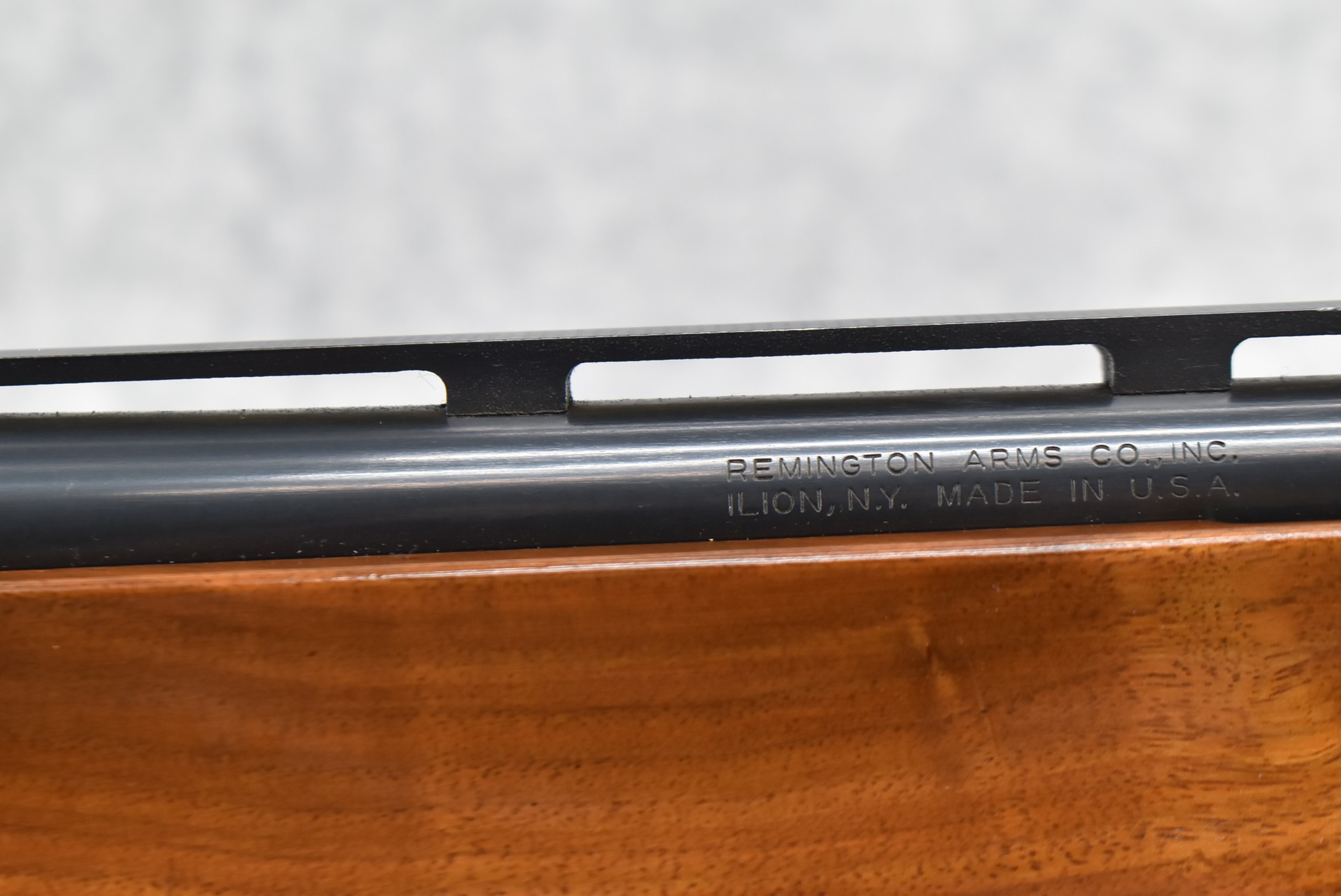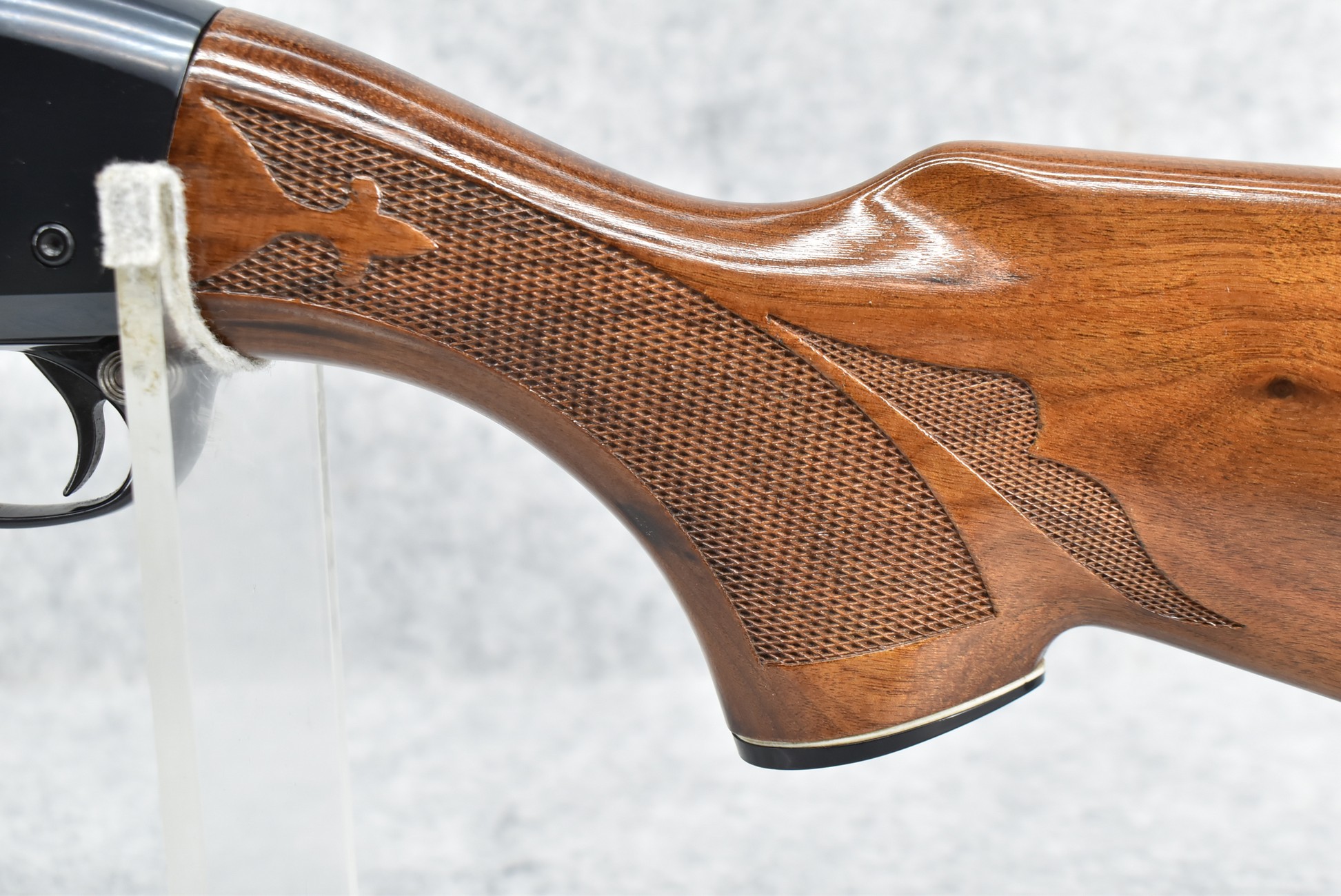 344R. Remington – Mod. 1100 – 20ga. Semi-Auto Shotgun – w/28” Rem. Choked, Vent-Rib Barrel w/Double Bead Sights – Blued Finish – w/Enhanced Receiver on Both Sides – w/Deluxe Checkered Capped Pistol Grip Wood Stocks w/Kick EEZ Butt Pad – Barrel Originally Fixed Full Choke but Now Rem. Choked – w/Factory Manual