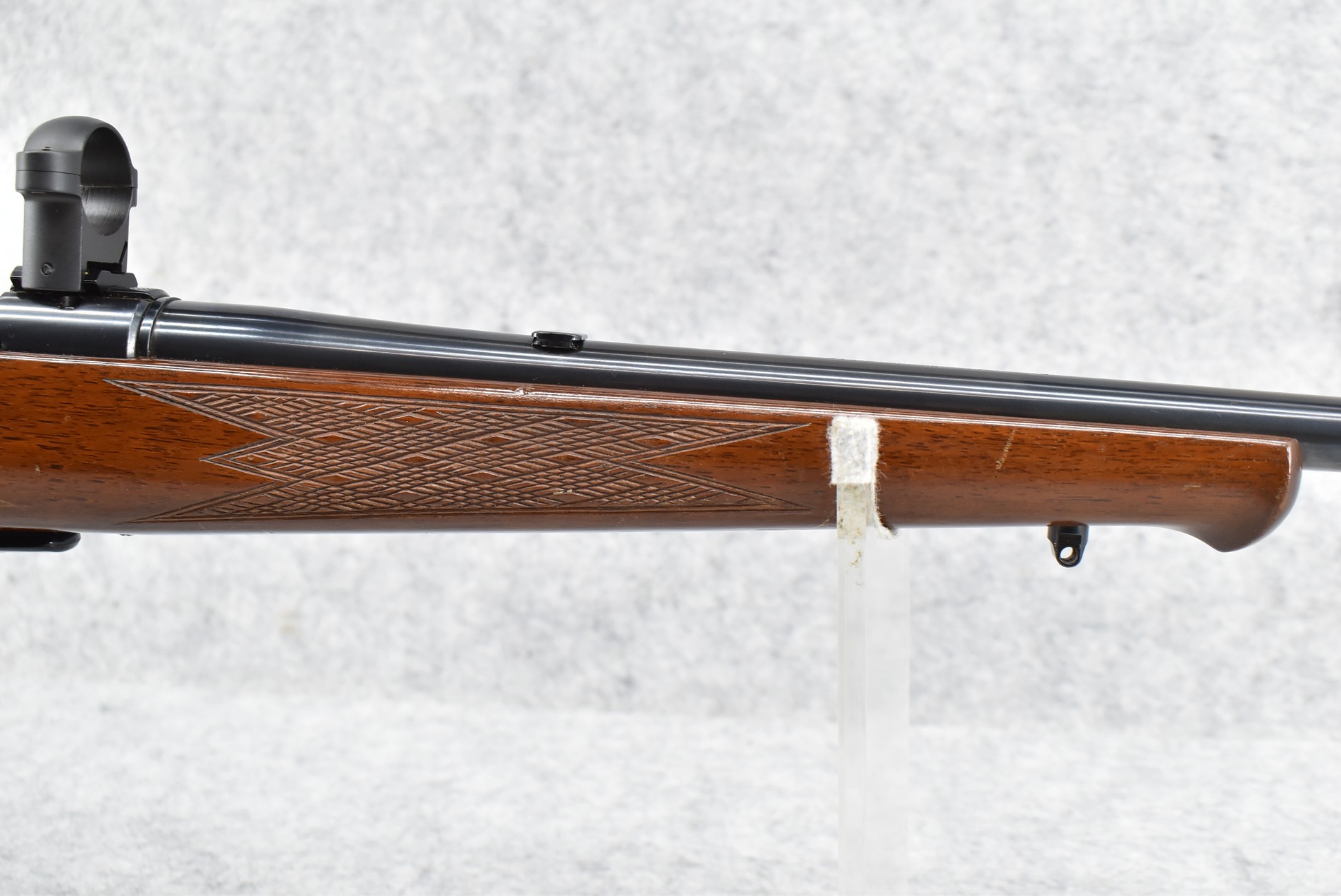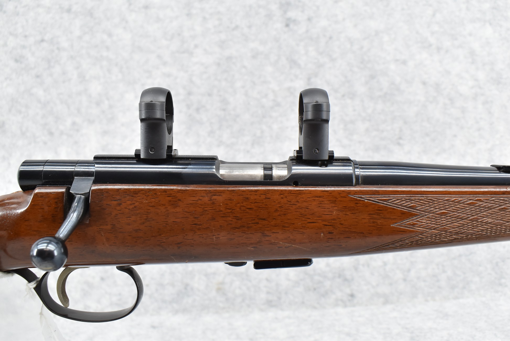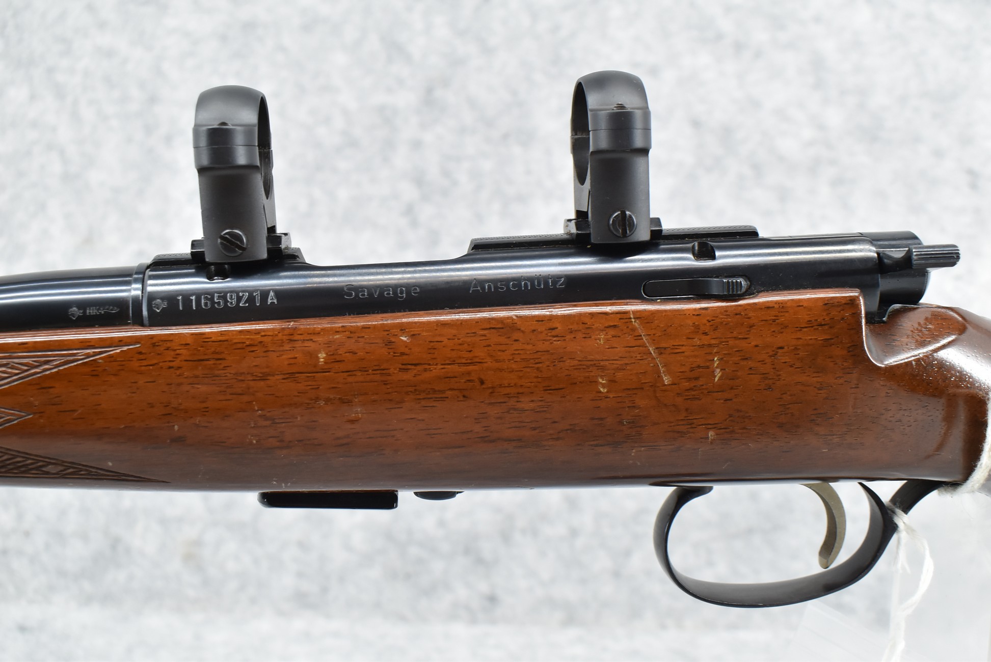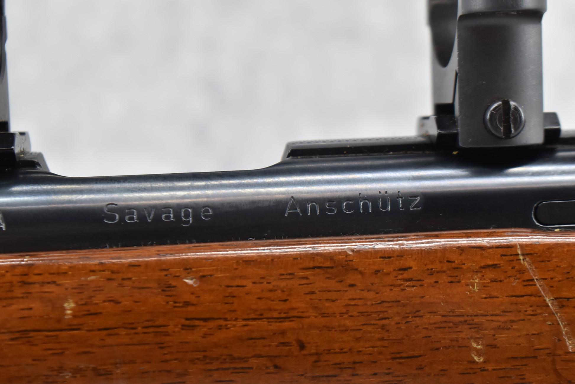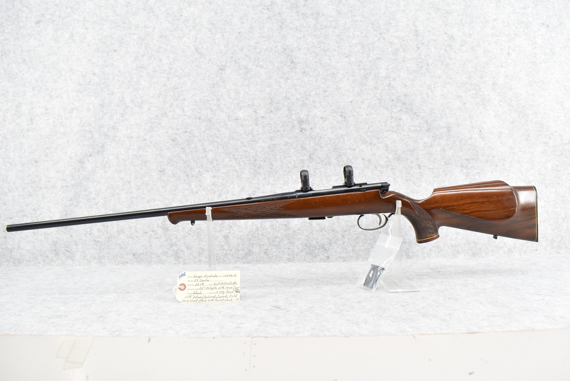 349R. Savage-Anschutz – Mod. 54 Sporter – 22LR Cal. Bolt Action Rifle – w/24” Barrel (No Sights, Rear Dovetail Blank) – Blued Finish – w/Deluxe Checkered Capped Pistol Grip Wood Stock w/Raised Cheek Piece w/Factory Butt Plate – w/2 Factory Detachable Magazines – w/Scope Rings & Mounting Bases – w/Box & Manual