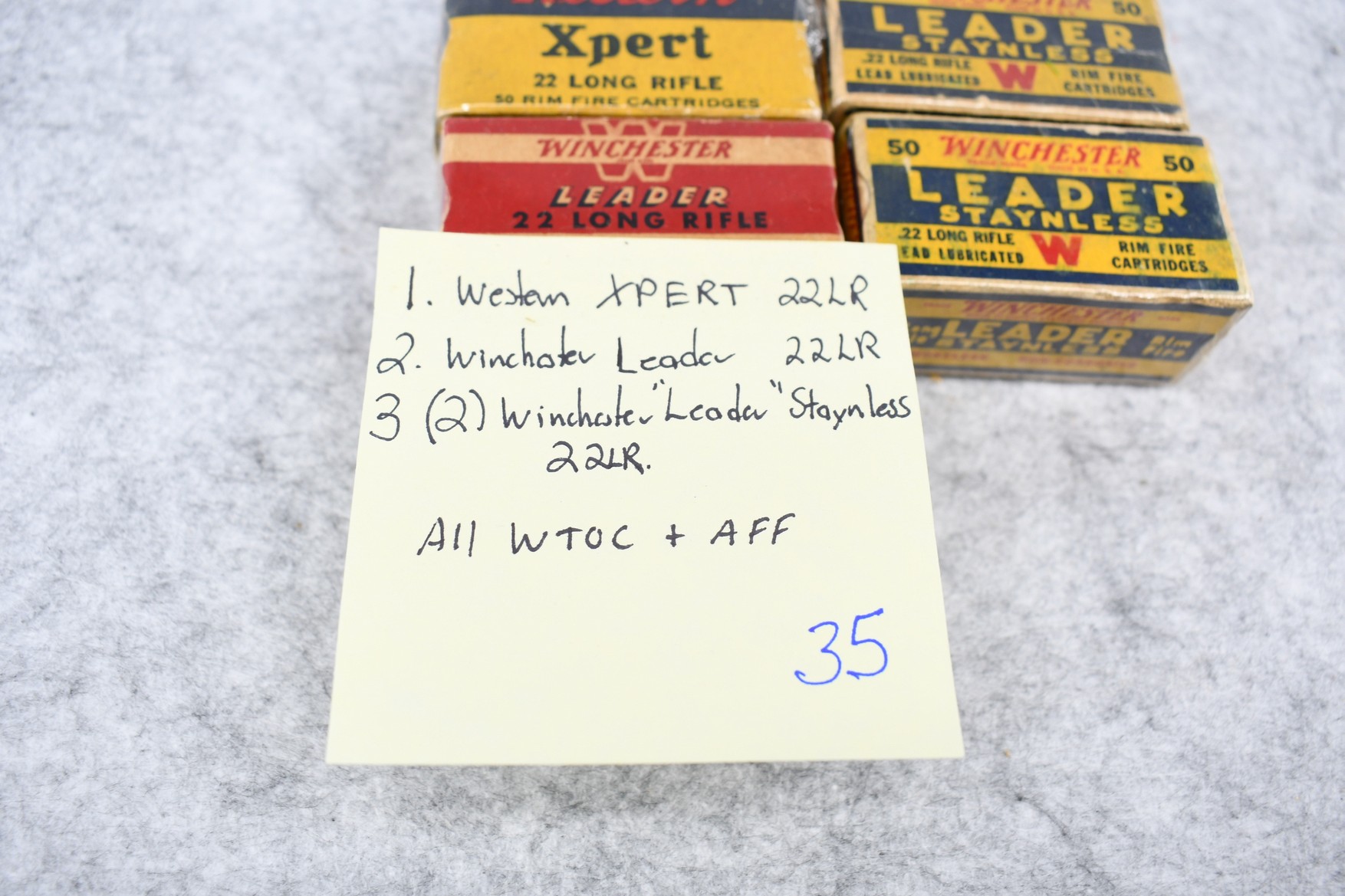 35. Lot of 4 Boxes Including: 1) Western Xpert 22LR. 2) Winchester Leader 22LR. 3) Two Winchester “Leader” Staynless 22LR – All AFF & WTOC