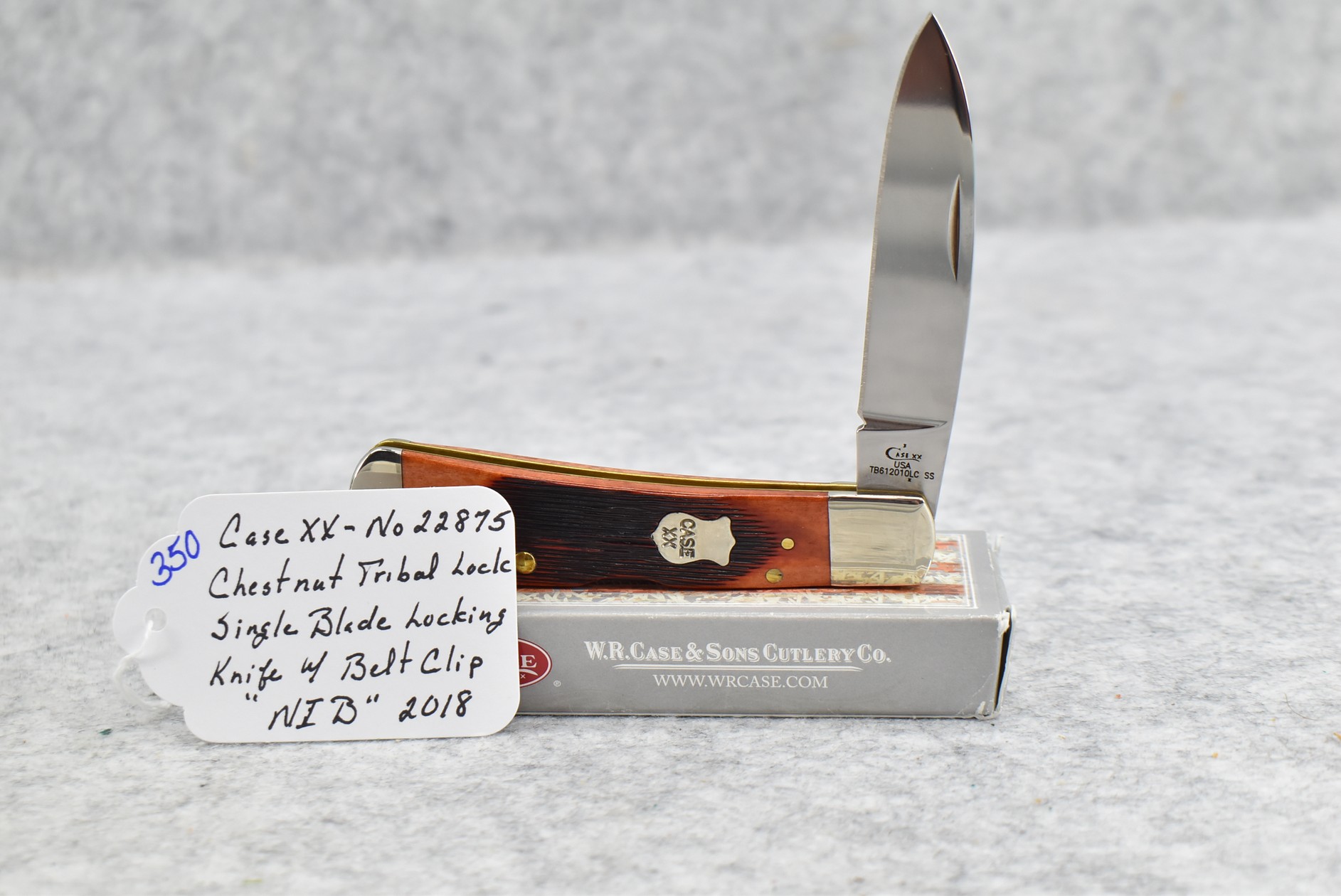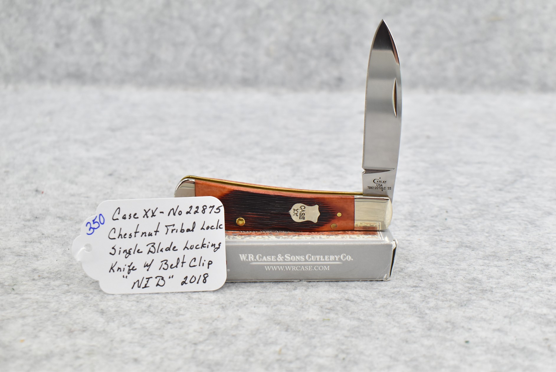 350. Case XX – 2018 #22875 Chestnut Tribal Lock Single Blade Locking Knife w/Belt Clip – NIB