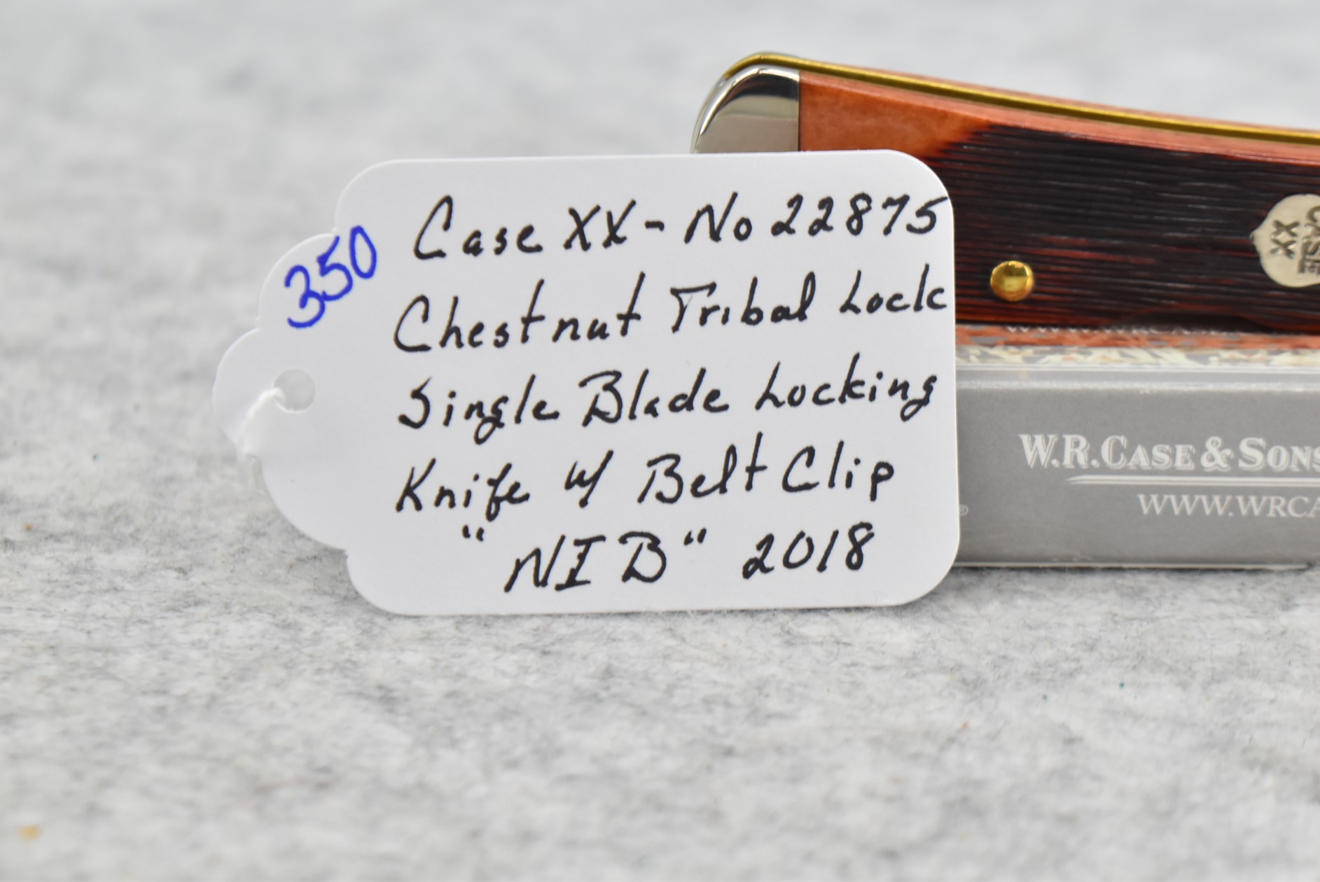 350.     Case XX – 2018 #22875 Chestnut Tribal Lock Single Blade Locking Knife w/Belt Clip – NIB