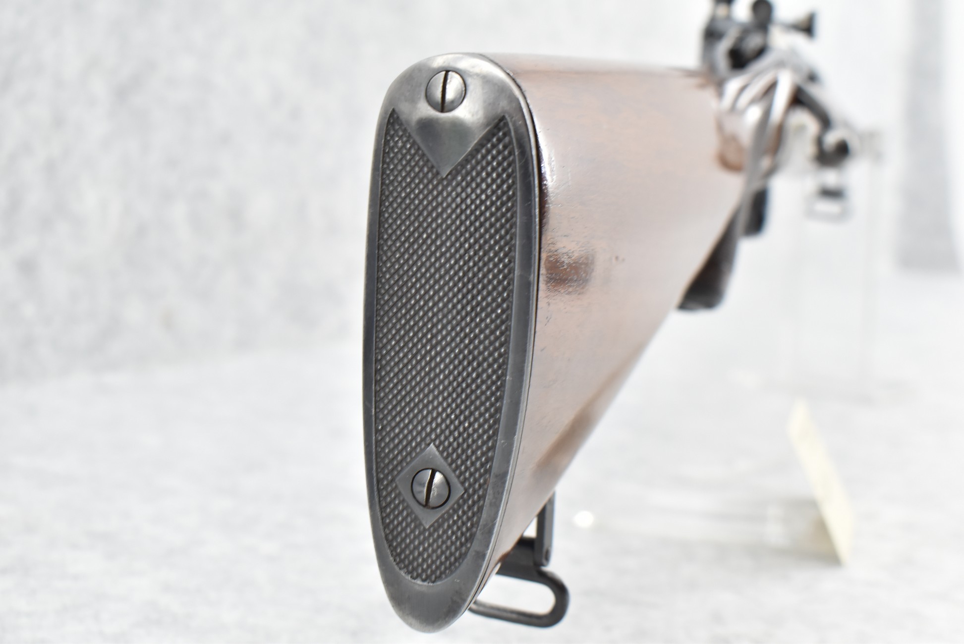 351R. Excellent! Winchester – Mod. 52-B Sporter – 22 Long Rifle Cal. Bolt Action Rifle – w/24” Barrel w/Hooded Front & Lyman Adj. Rear Receiver Peep Sight – Blued Finish – w/Checkered Capped Pistol Grip Wood Stock w/Factory Metal Butt Plate w/Ebony Forearm Tip – w/Factory 5Rd Mag – w/Super Grade Sling Swivels – Mfg. 1941 – Introduced Approx. 1940, Early Gun!