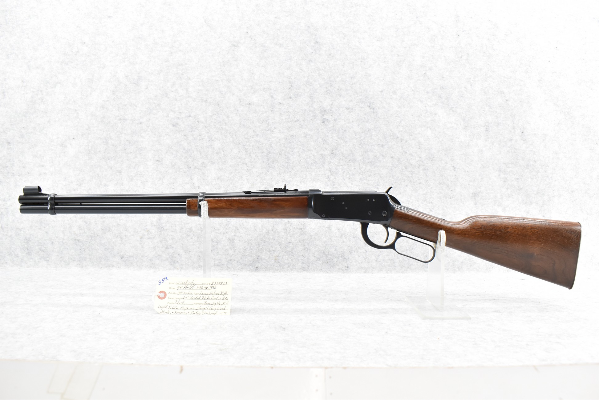 351R. Winchester – Mod. 94 “Pre-64” – 30-30 Win. Cal. Lever Action Rifle – w/20” Barrel w/Hooded Blade Front and Adjustable Rear Sights – Blued Finish – w/Straight Grip Wood Stock and Forearm w/Factory Checkered Metal Butt Plate – w/Full Length Tubular Magazine – Manufactured 1958