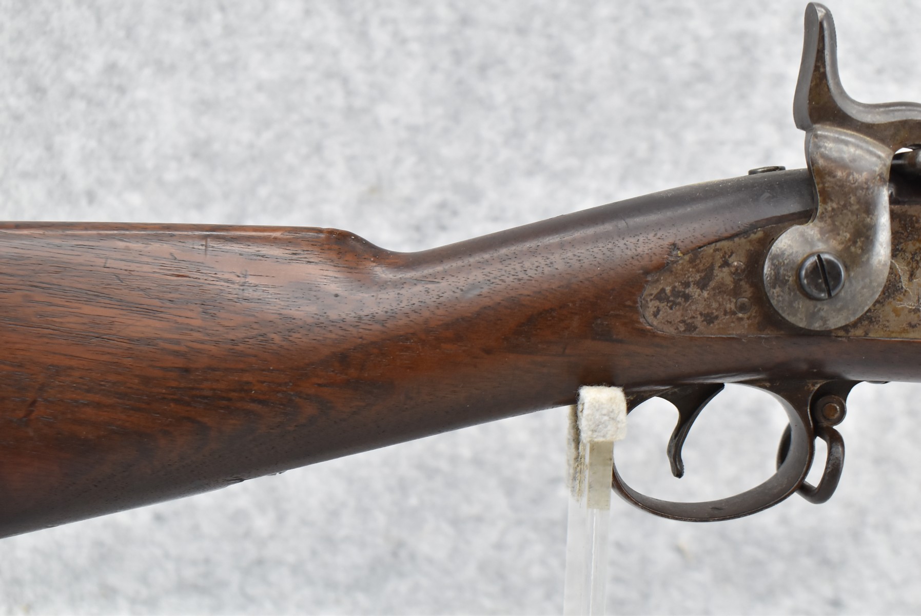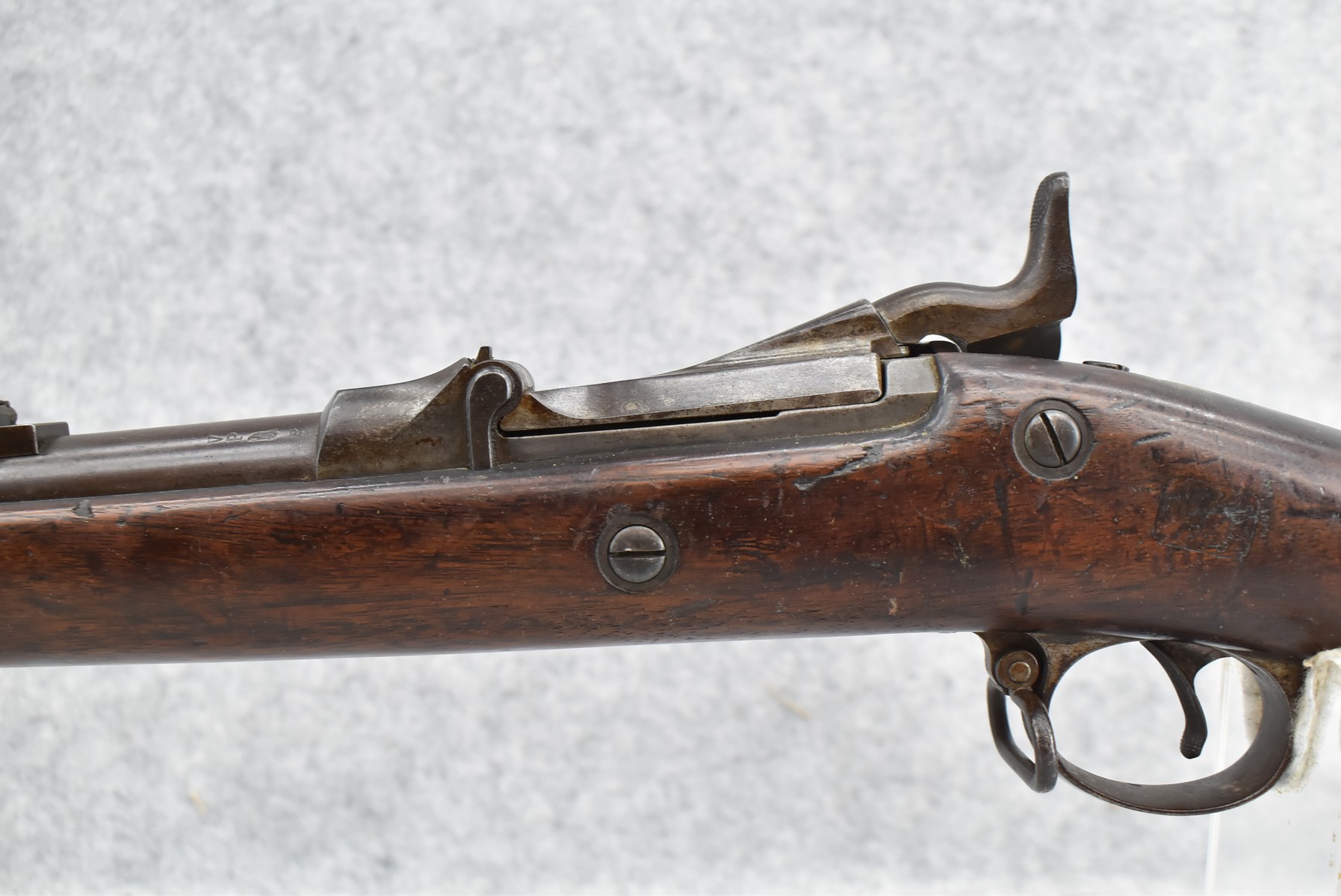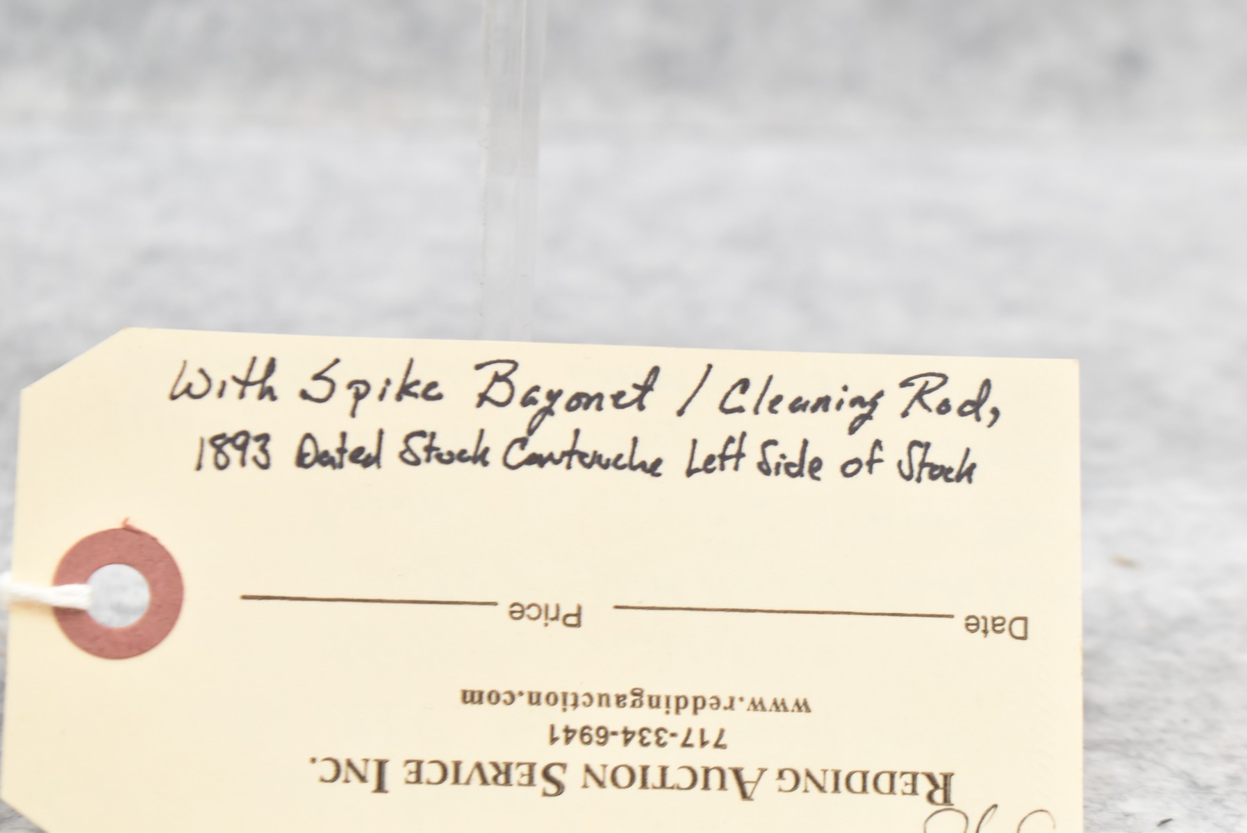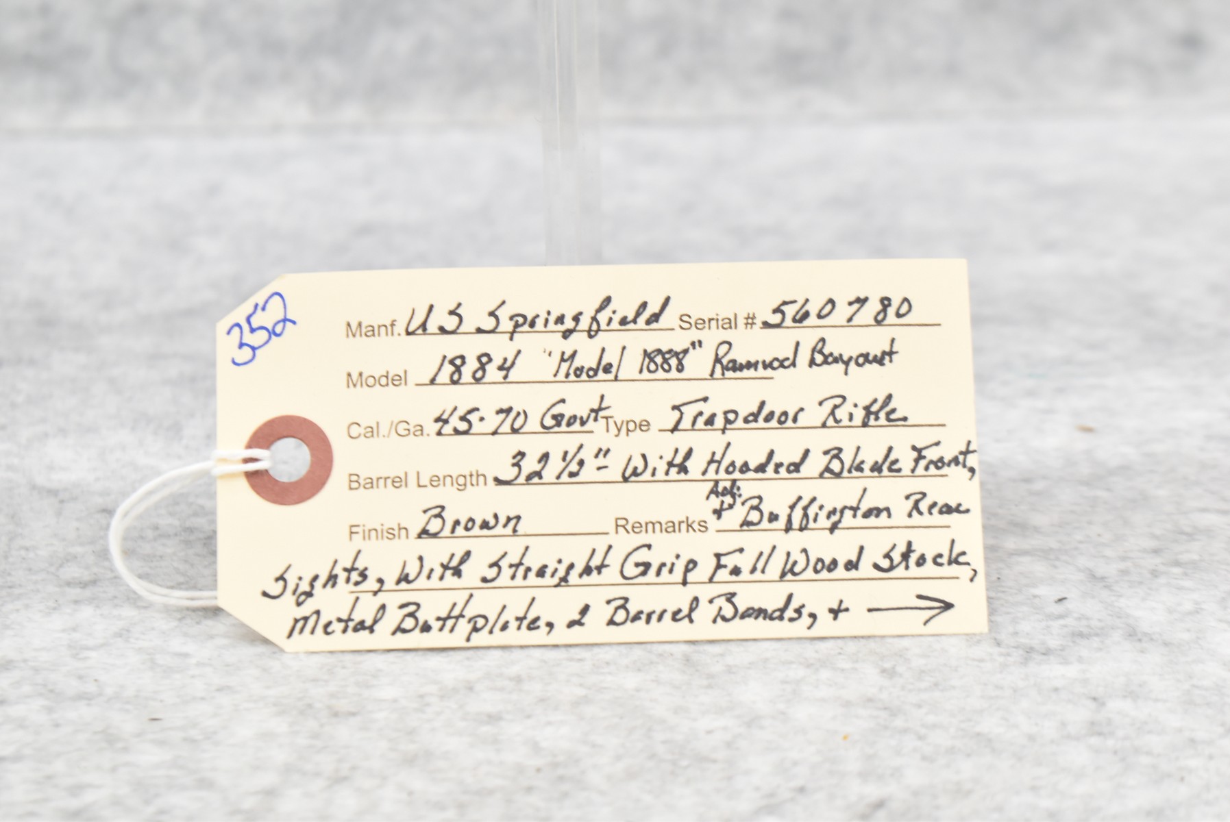 352. U.S. Springfield – Mod. 1884 “Model 1888” Ram Rod Bayonet – 45-70 Gov’t Cal. Trapdoor Rifle – w/32 ½” Barrel w/Hooded Blade Front & Adj. Buffington Rear Sights – Brown Finish – w/Straight Grip Full Wood Stock w/Metal Butt Plate w/1893 Dated Stock Cartouche on Left Side of Stock – w/Spike Bayonet/Cleaning Rod