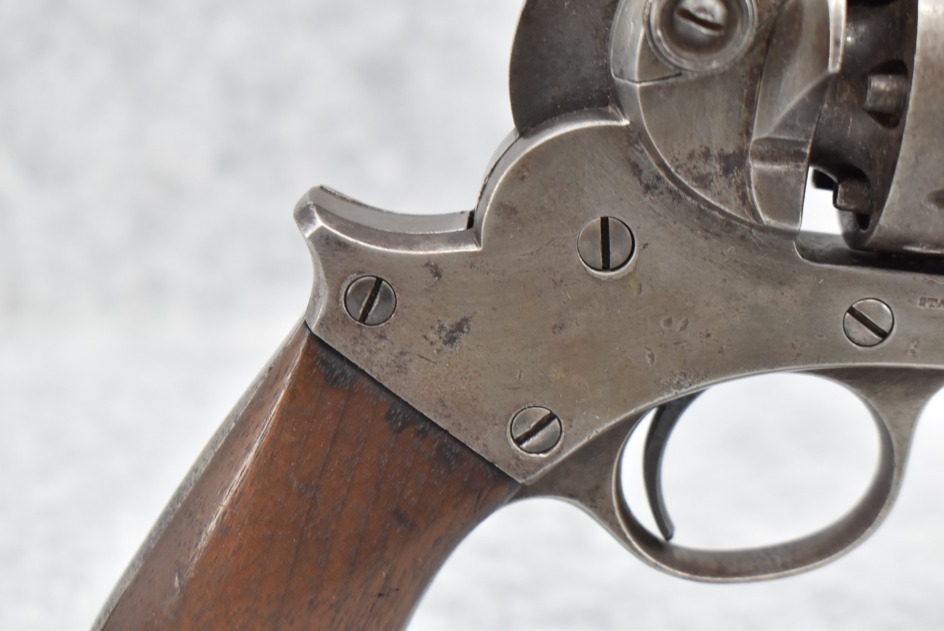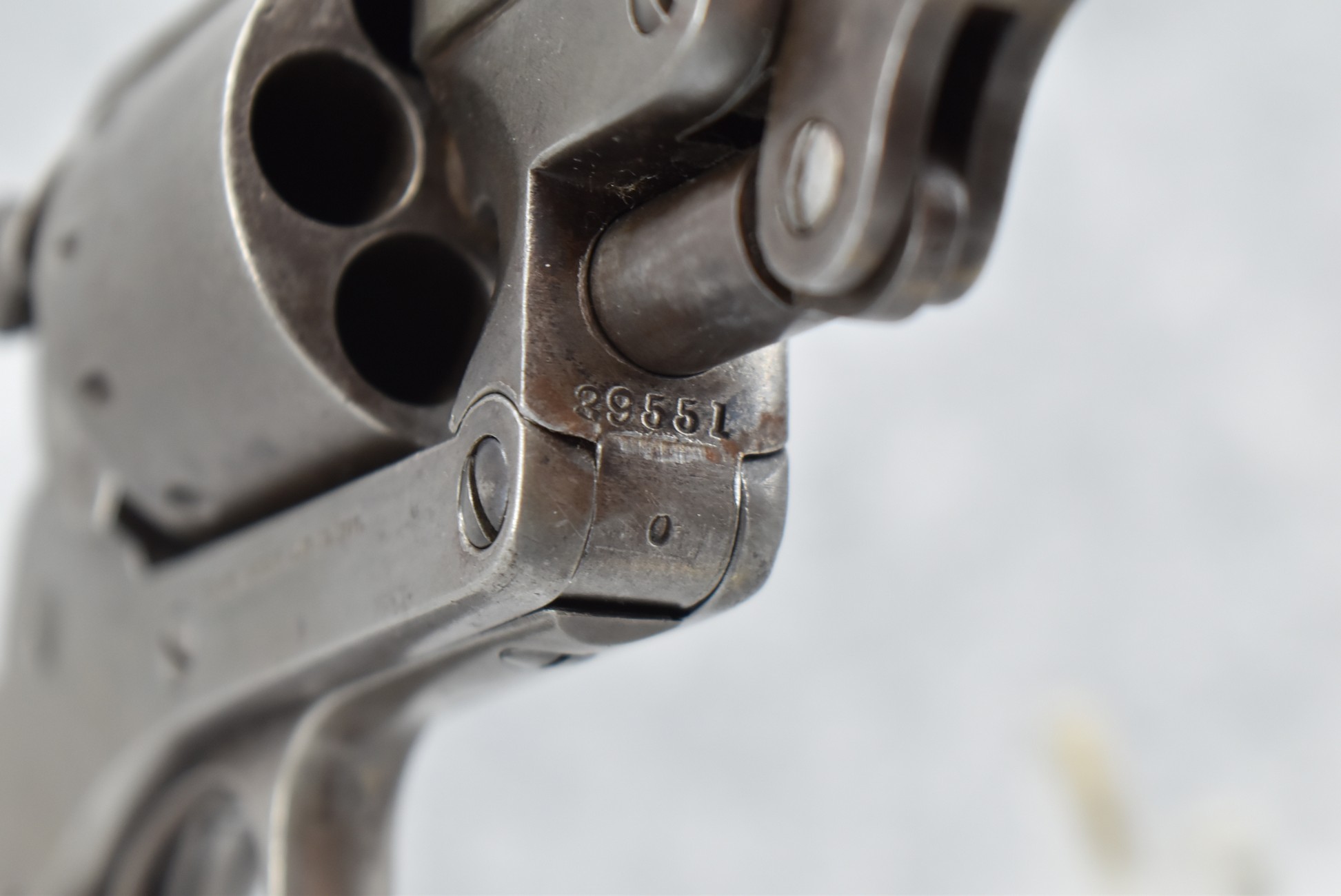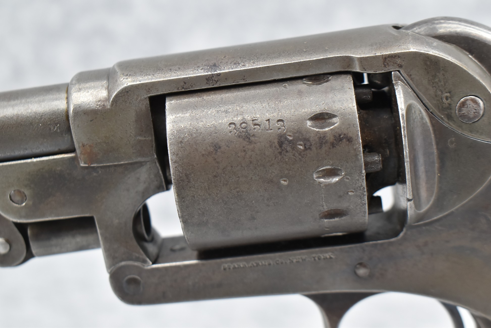 353. Starr Arms Co. – Mod. 1863 Army – 44 Cal. Percussion Single Action Revolver – w/8” Round Barrel w/Blade Front & Hammer Notch Rear Sights – Gray Finish – w/Factory 1pc. Wood Grips w/Faint Cartouche on Left Grip – Gun Appears All Matching Numbers (39551) Except the Cylinder Which is #39513