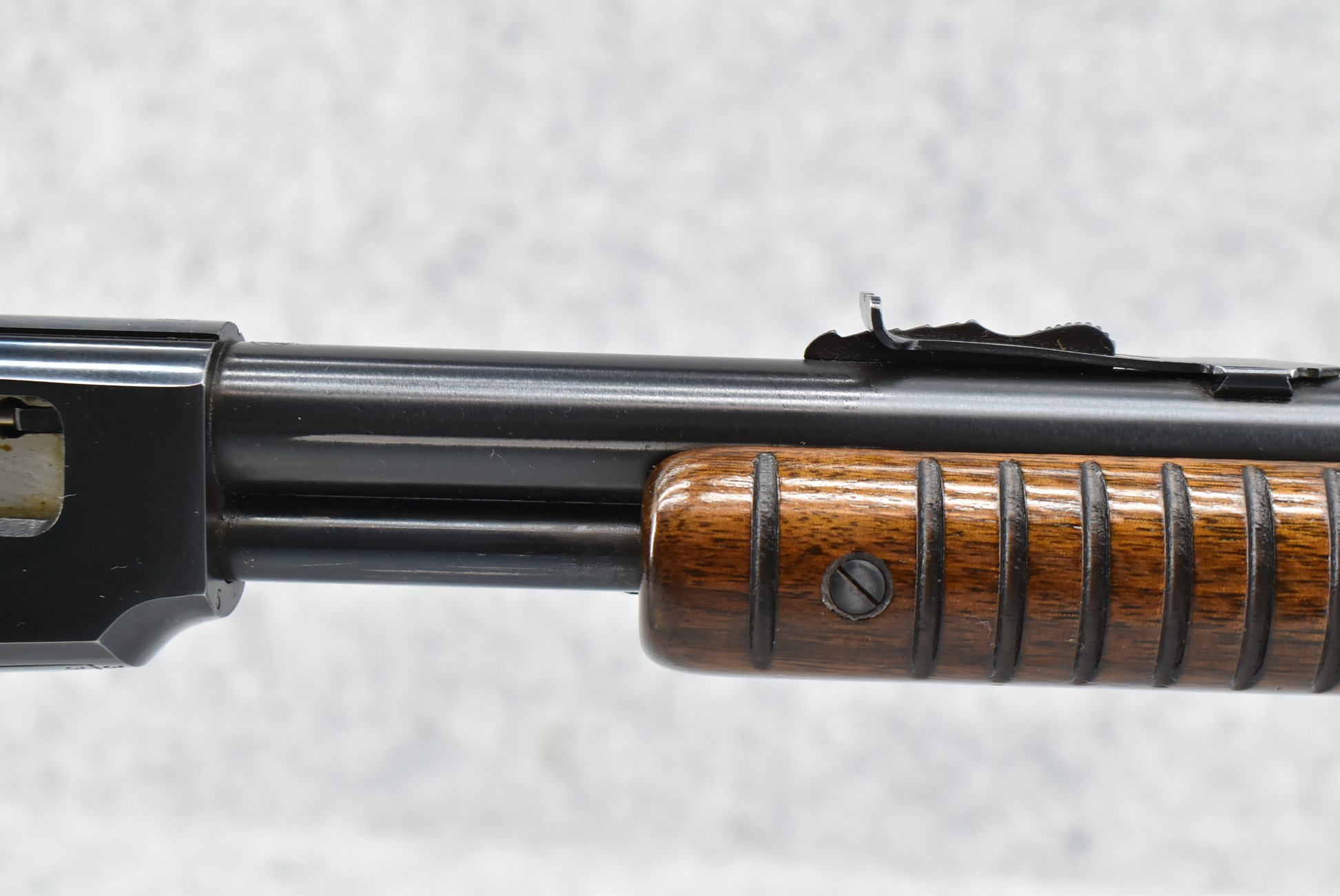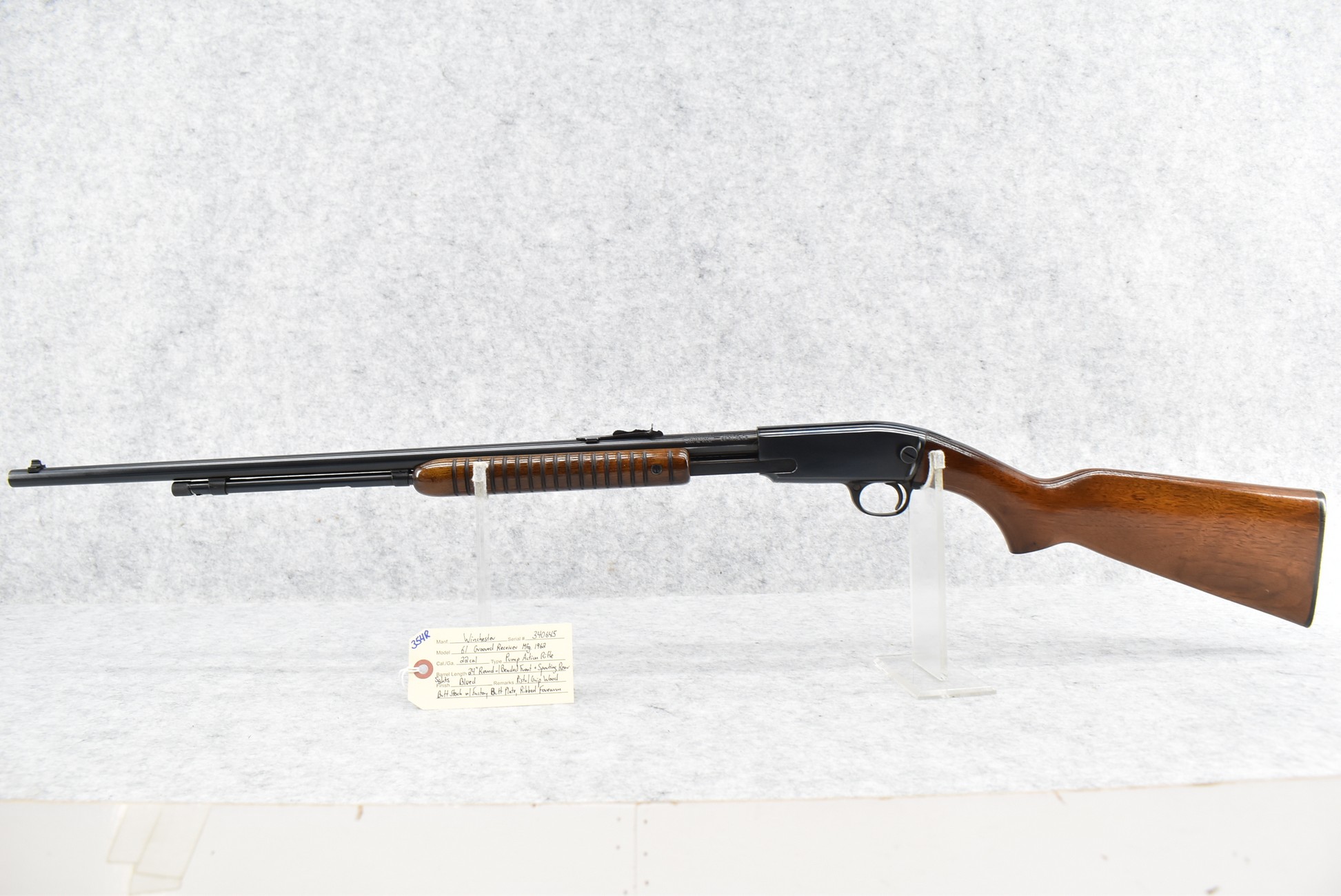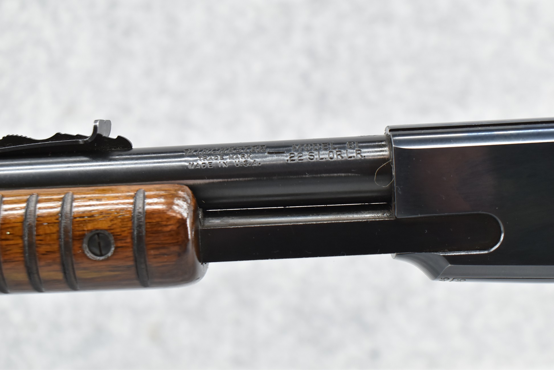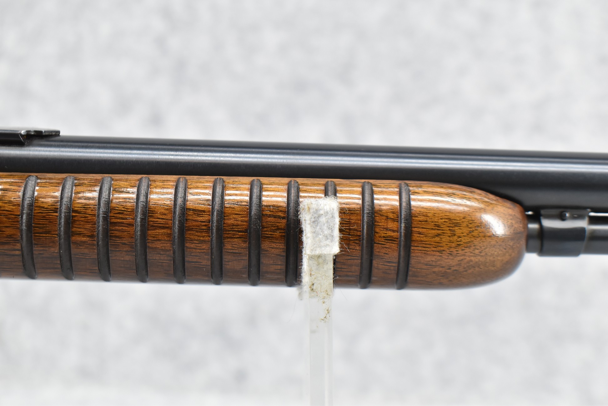 354R. Winchester – Mod. 61 Grooved Receiver – 22 Cal. Pump Action Rifle – w/24” Round Barrel w/Beaded Front & Sporting Rear Sights – Blued Finish – w/Pistol Grip Wood Butt Stock w/Factory Butt Plate & Ribbed Forearm – Mfg. 1962