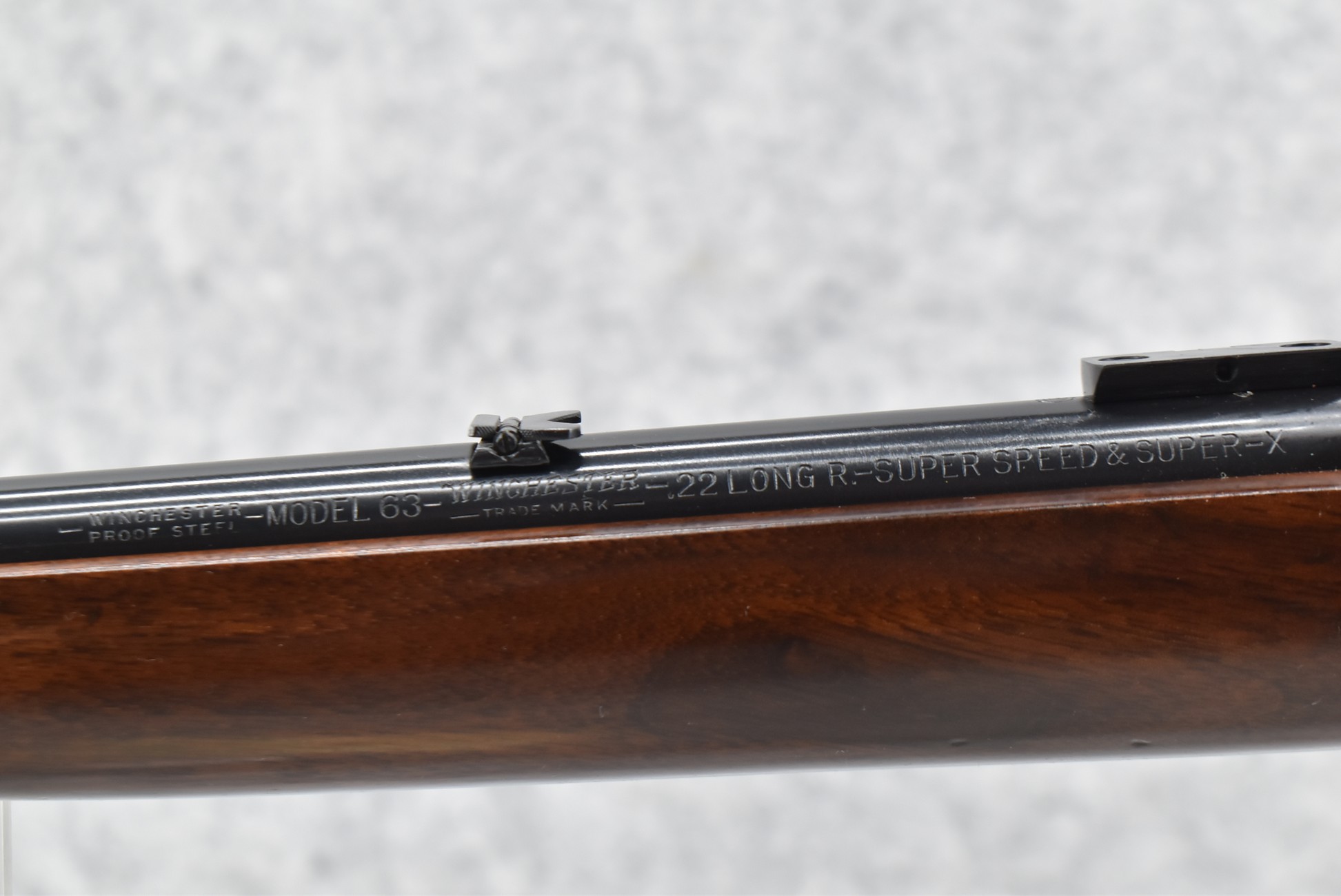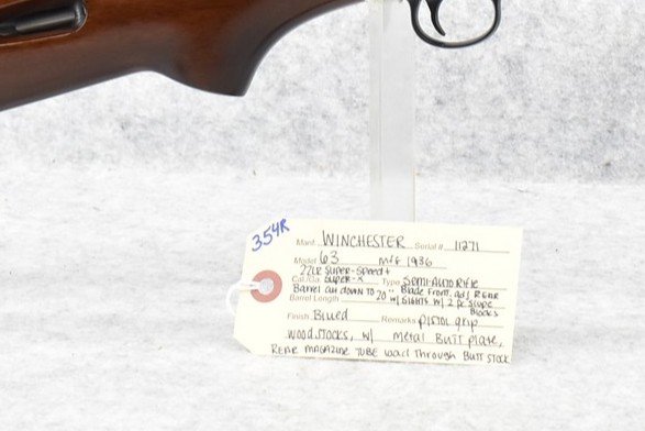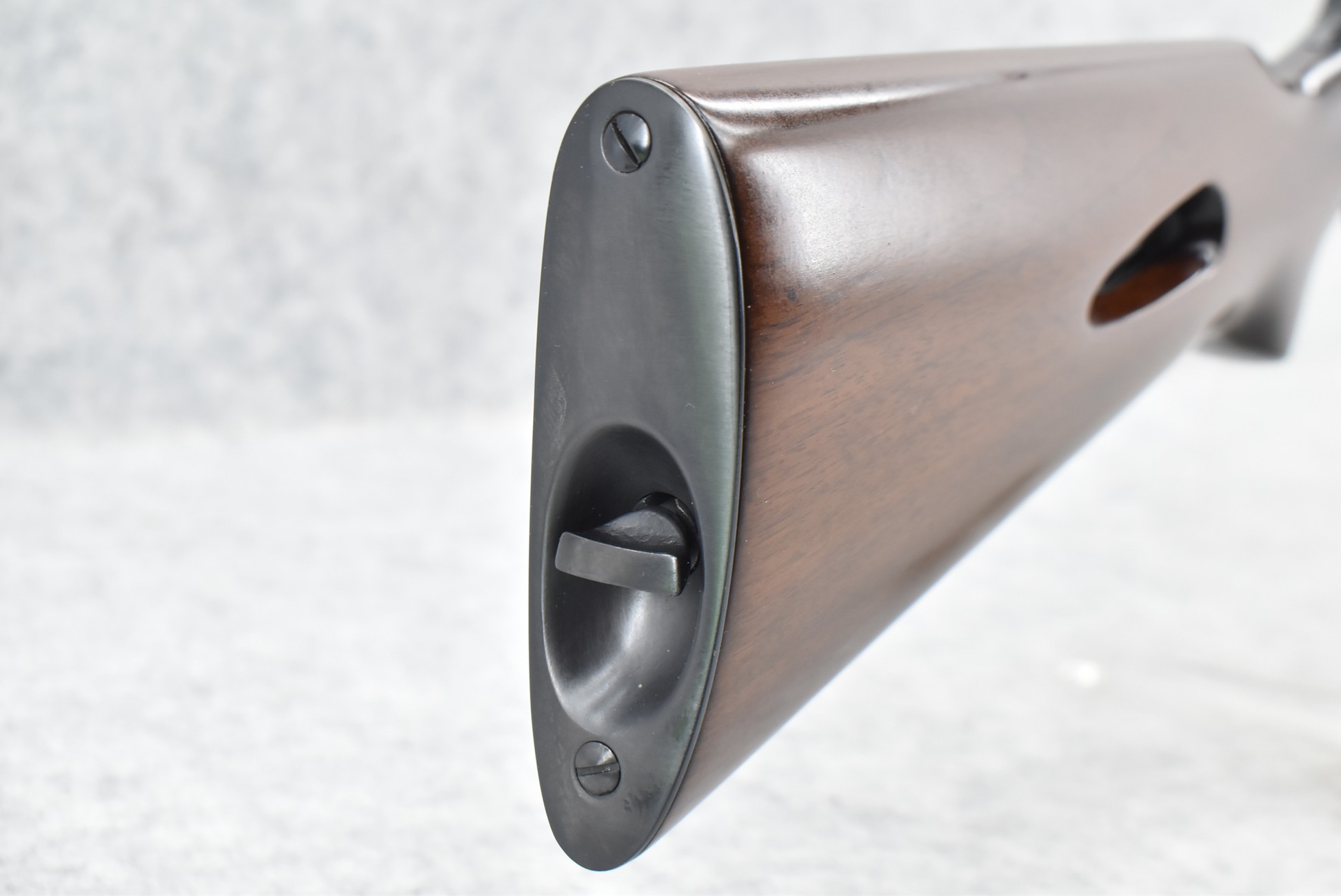 354R. Winchester – Mod. 63 – 22LR Super Speed/Super X Cal. Semi-Auto Rifle – Barrel Cut Down to 20” (Carbine Configuaration) w/Blade Front and Adjustable Rear Sights – Blued Finish – w/Pistol Grip Wood Stocks w/Metal Butt Plate – w/Rear Magazine Tube Loaded Through Butt Stock – 2-Piece Scope Blocks – Manufactured 1936