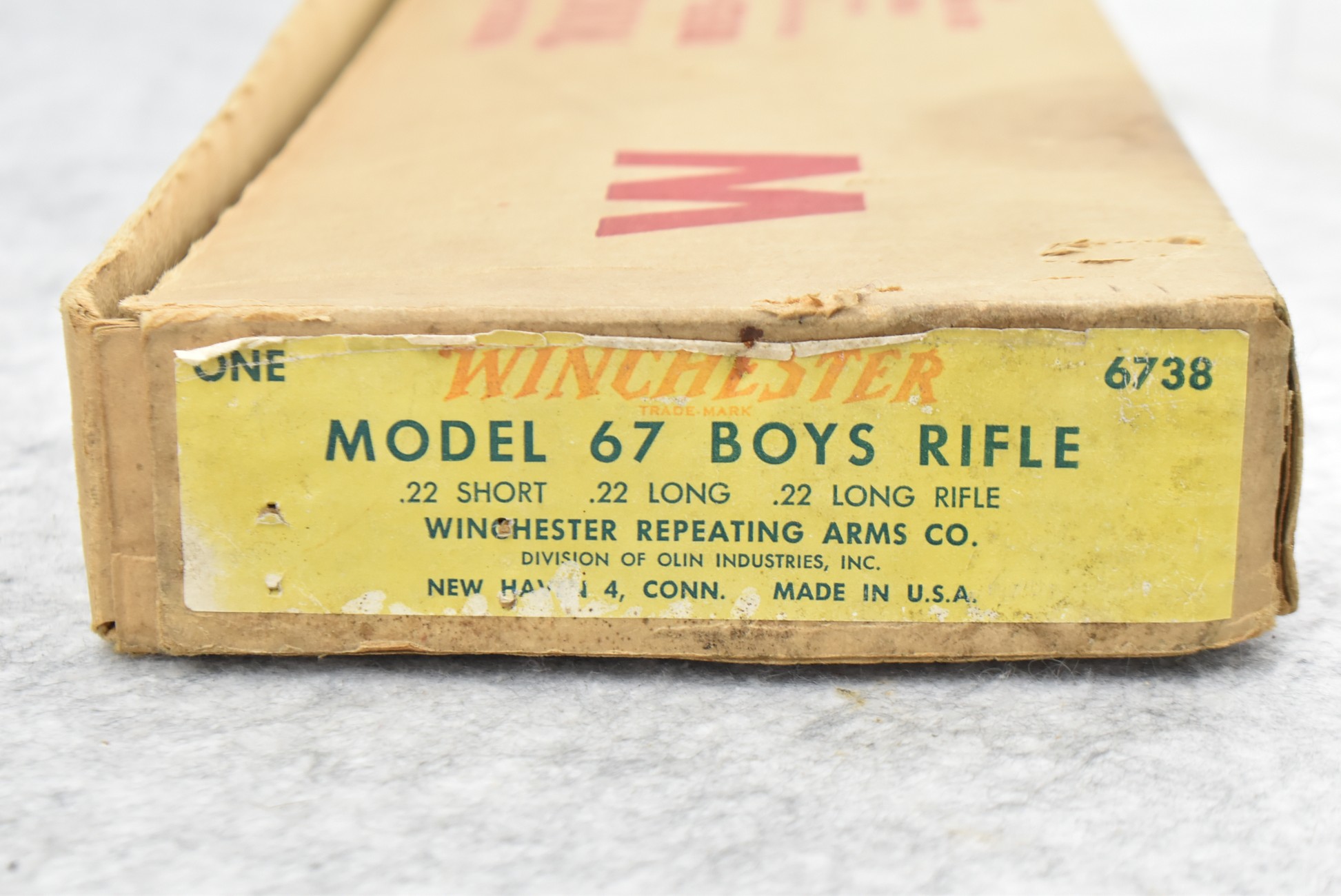 355R. Winchester – Mod. 67A Boys Rifle – 22 Cal. Single Shot Bolt Action Rifle – w/20” Barrel w/Blade Front and Adjustable Rear Sights – Blued Finish – w/Pistol Grip Wood Stock w/Factory Butt Plate – Appears Unfired w/Factory Box, Manual, Warranty Card, and Brown Paper