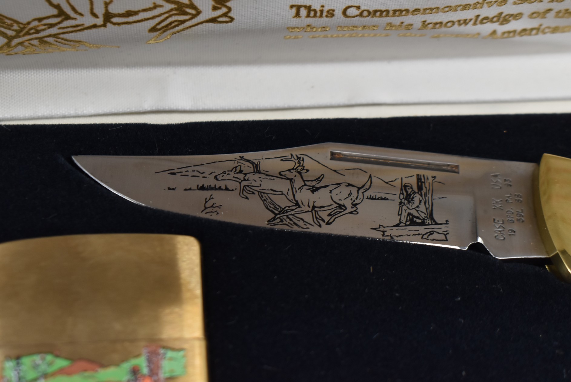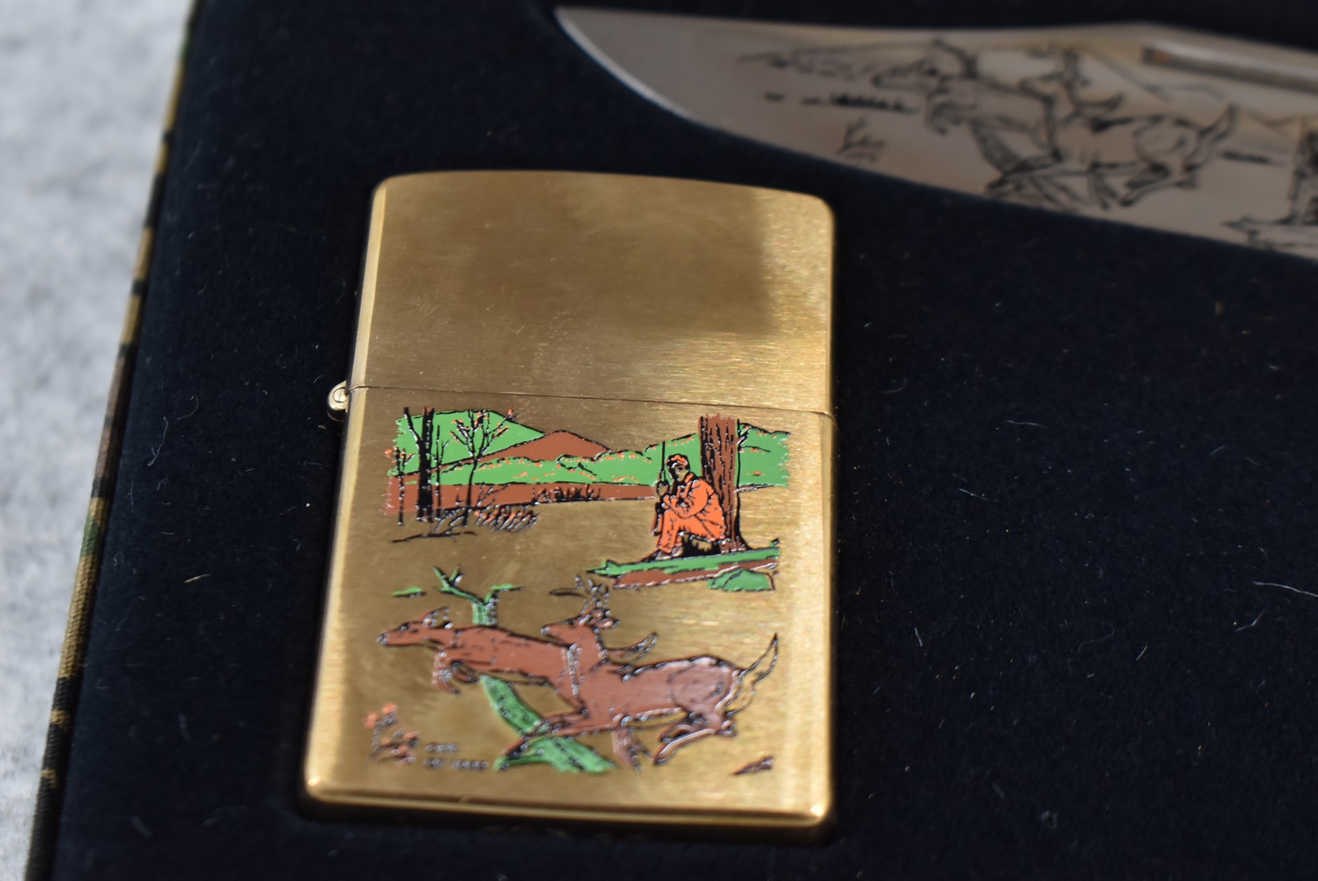 359. Case/Zippo – K-37 Deer Hunter Commemorative 1 of 1000, #073 – 1993 Case 59-L Knife & Zippo Lighter Set – w/Box & Sleeve