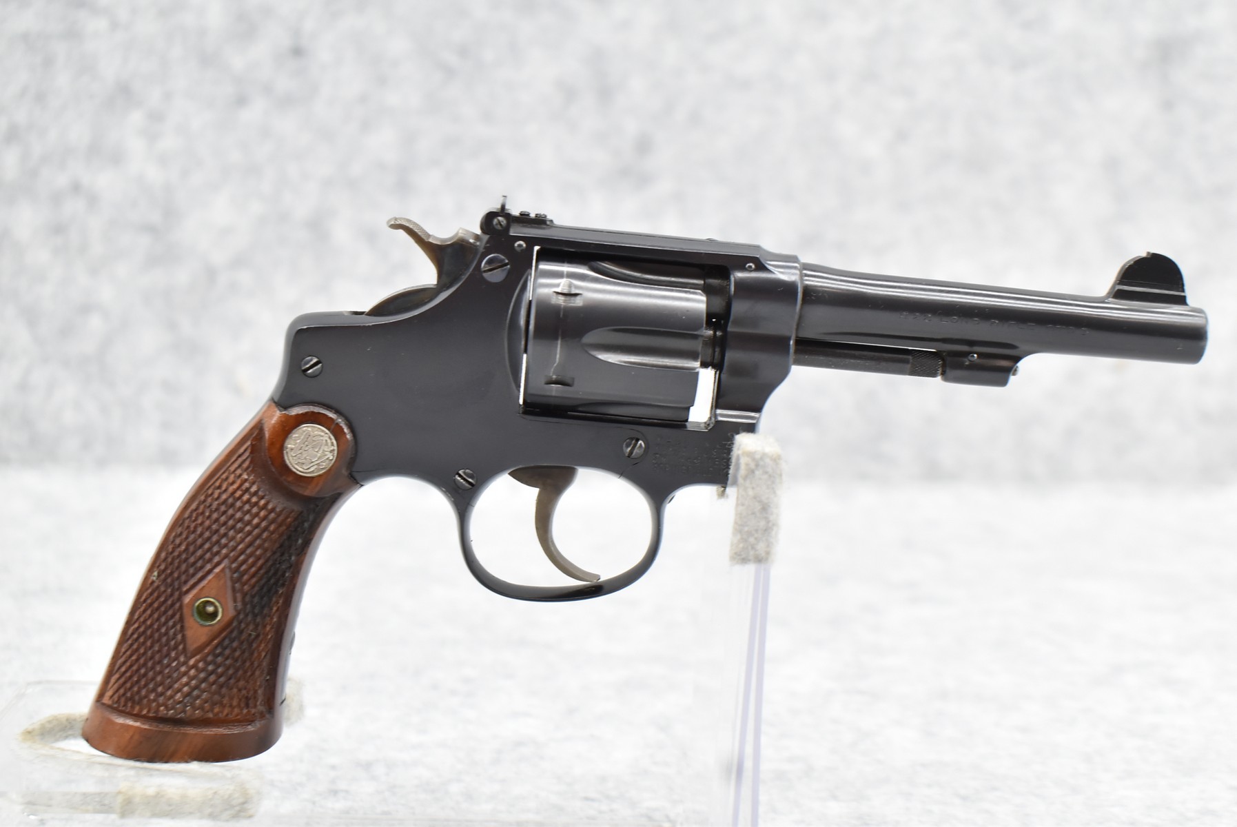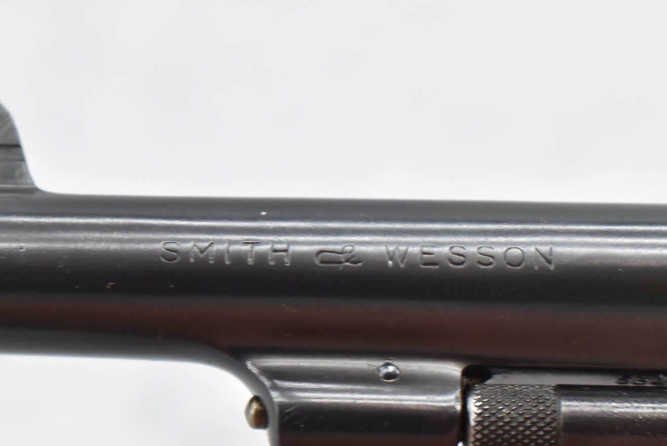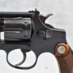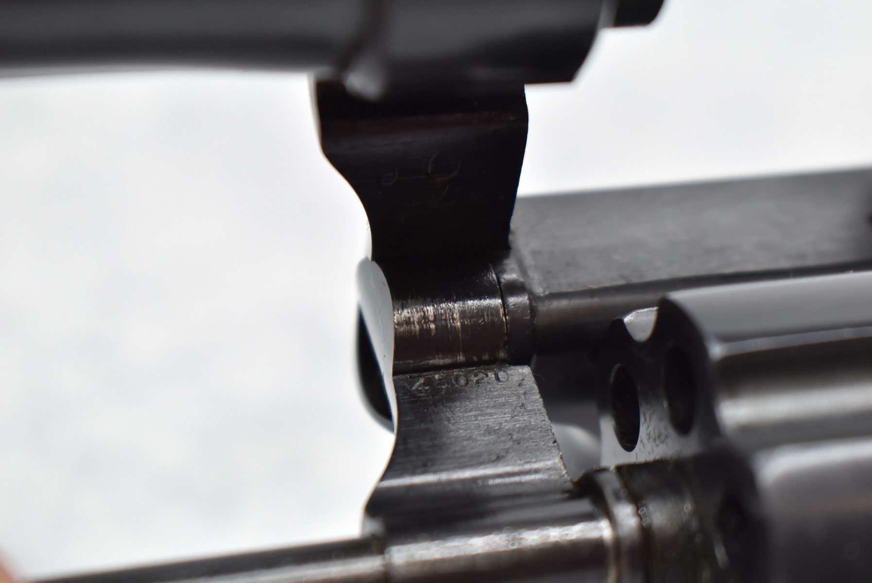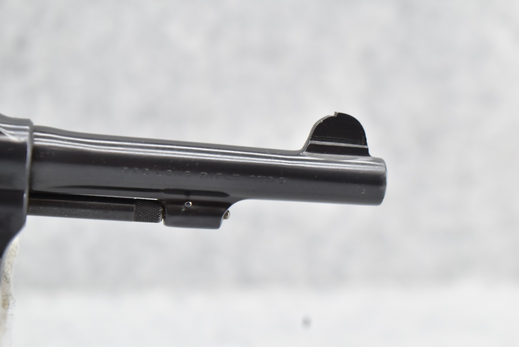 35R. Smith & Wesson – Mod. 22/32 Kit Gun (Pre-War) (5-Screw) – 22 Long Rifle Cal. Double Action Revolver – w/4” Round Barrel w/Blade Front & Adj. Rear Sights – Blued Finish – w/Factory Diamond Checkered Wood Grips w/S&W Medallion – Cylinder, Underside of Barrel & Forestrap Numbers All Match – Grip Number to the Gun – Mfg. Circa 1935-1941