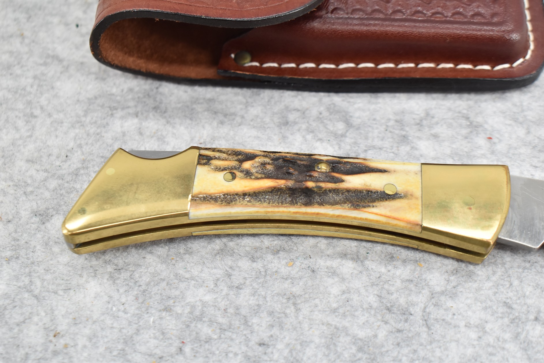 361. Case XX – 1989 #5159 LSS Stag Handled Lock Blade Bone Handles Knife w/Brass Frame – NIB